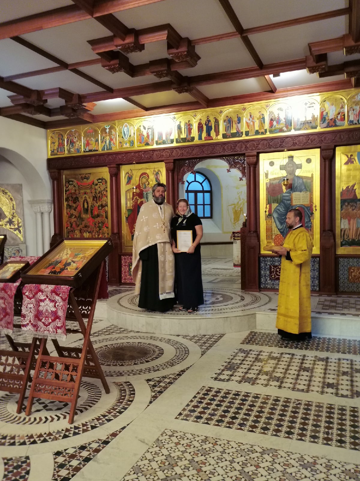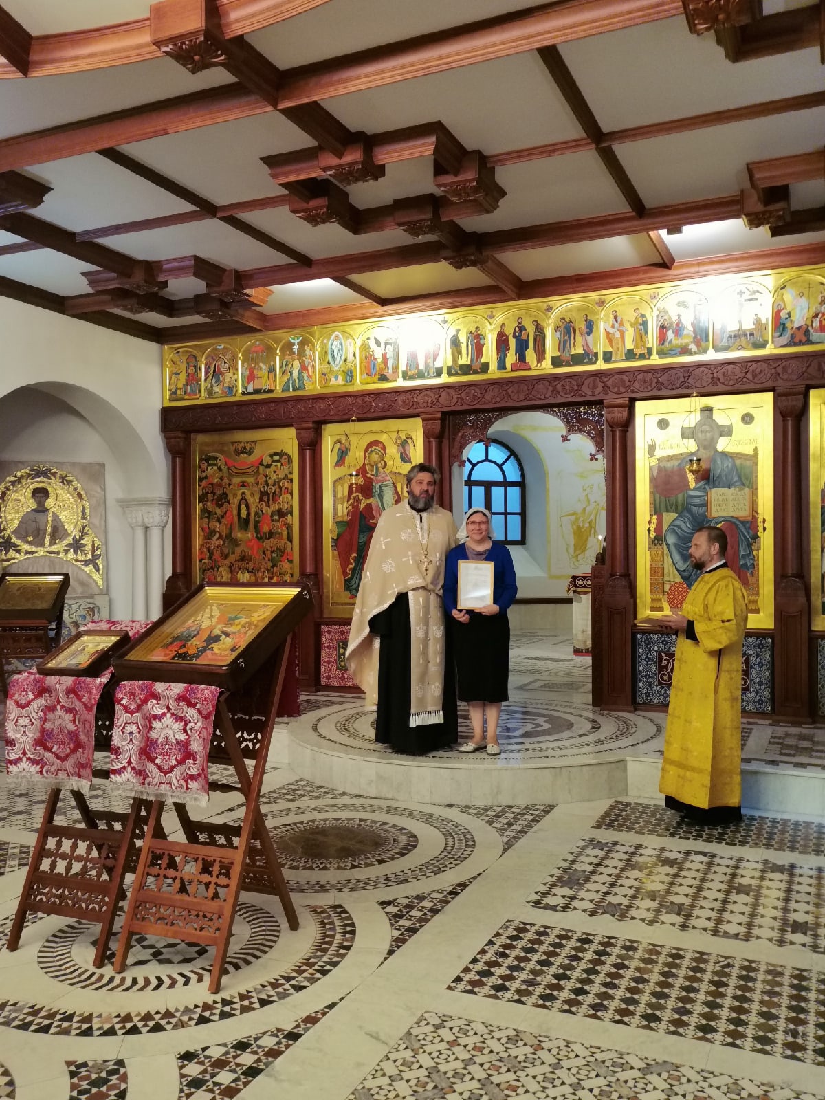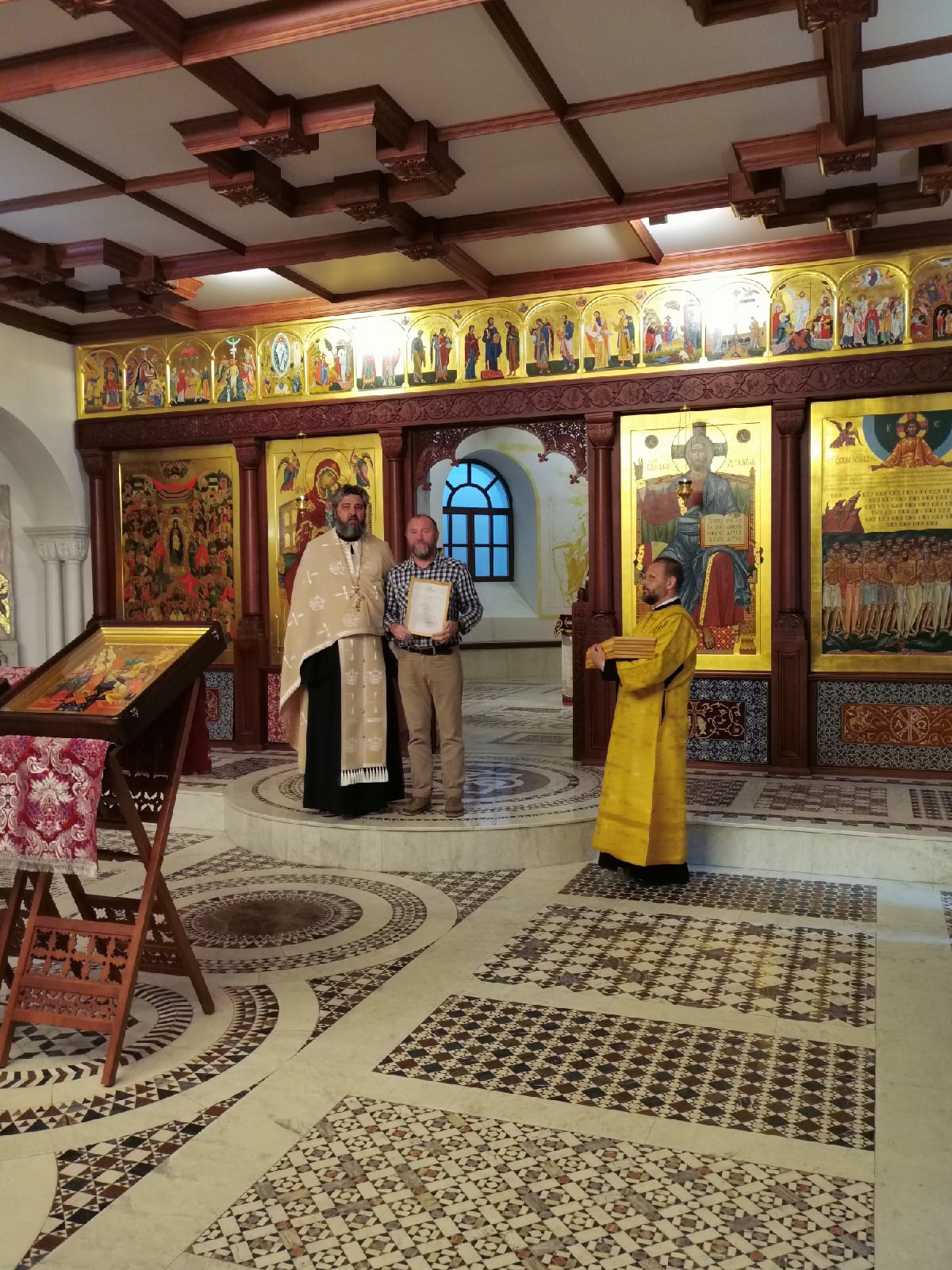В праздничный день во время Всенощного бдения отец Валерий вручил звонарям благодарственные грамоты за усердное несение послушания.