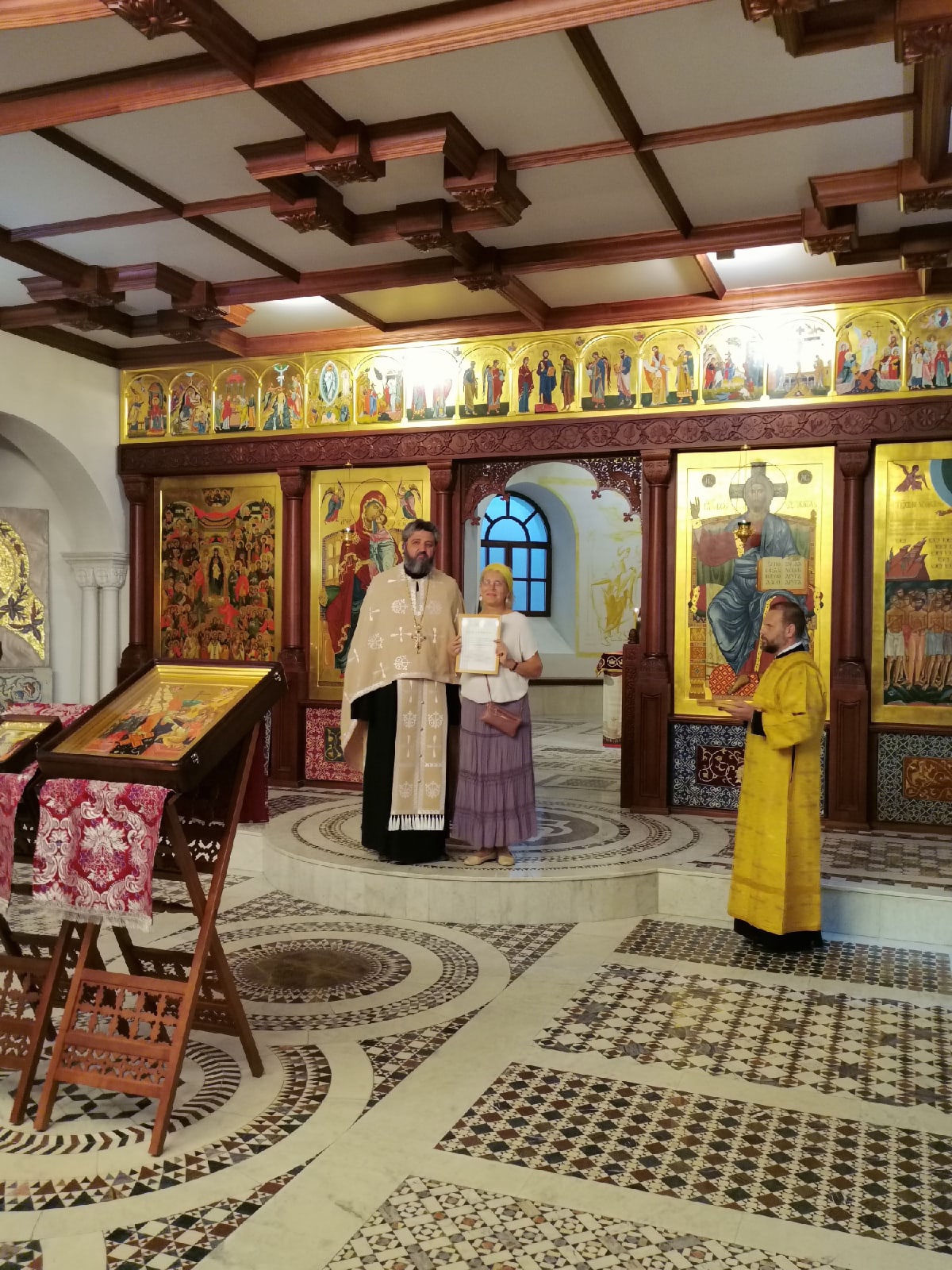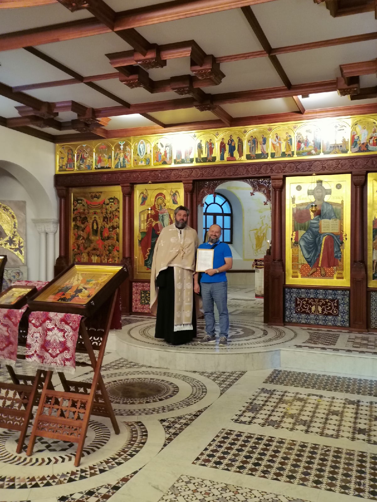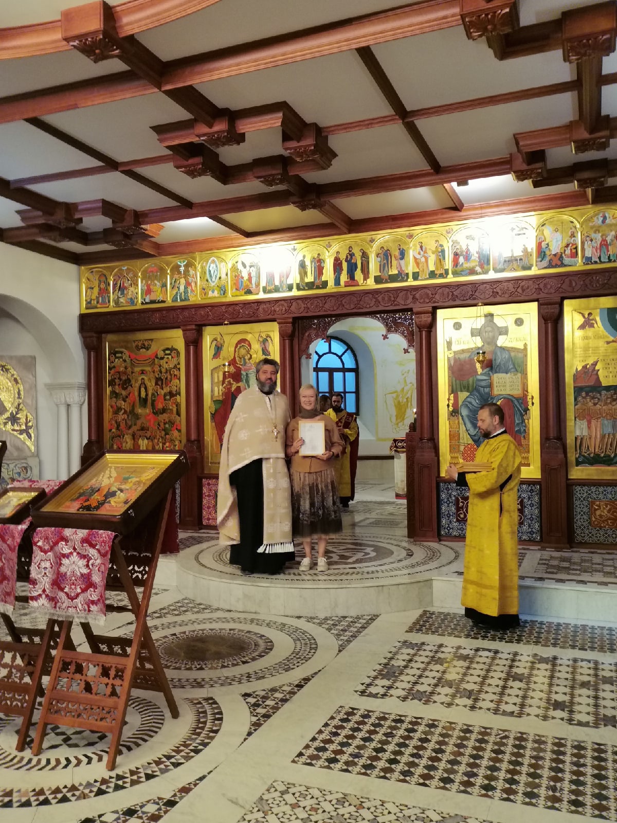В праздничный день во время Всенощного бдения отец Валерий вручил звонарям благодарственные грамоты за усердное несение послушания.