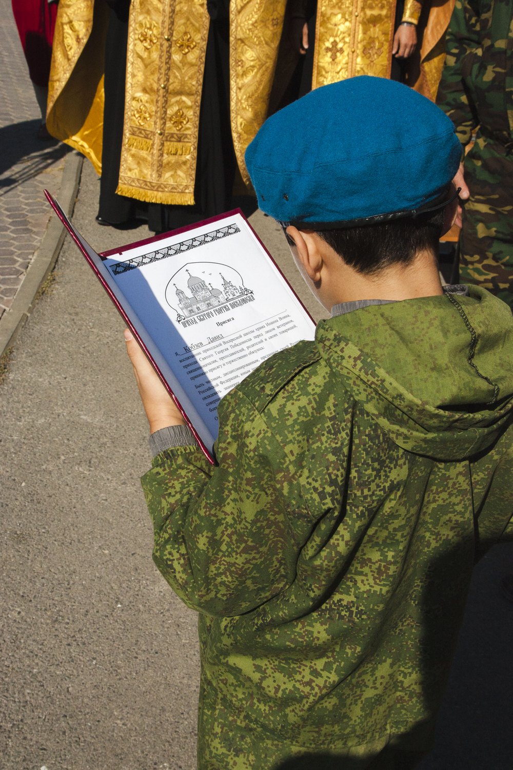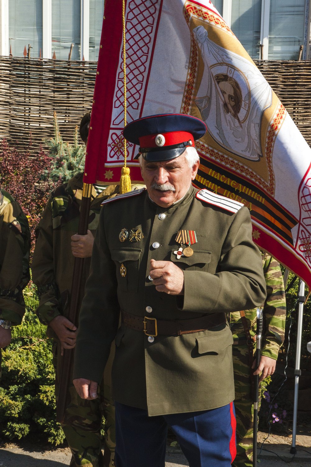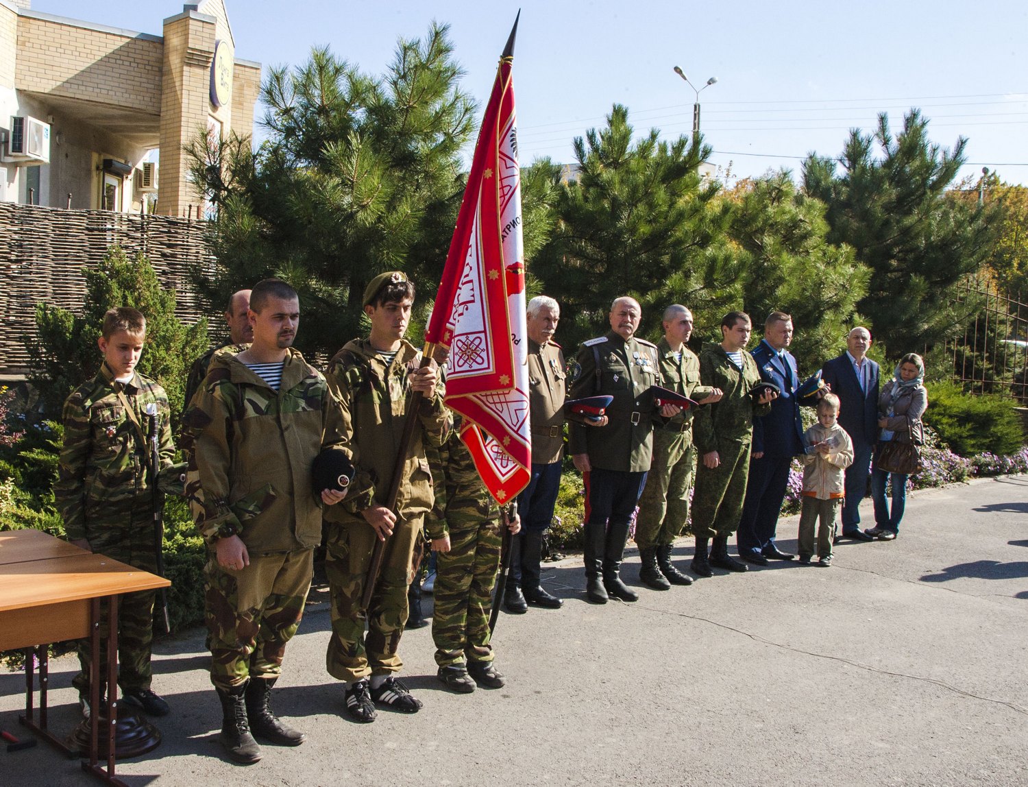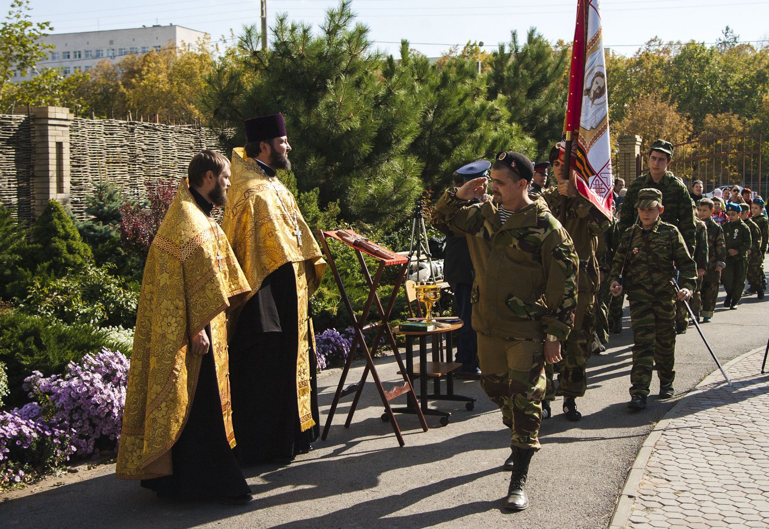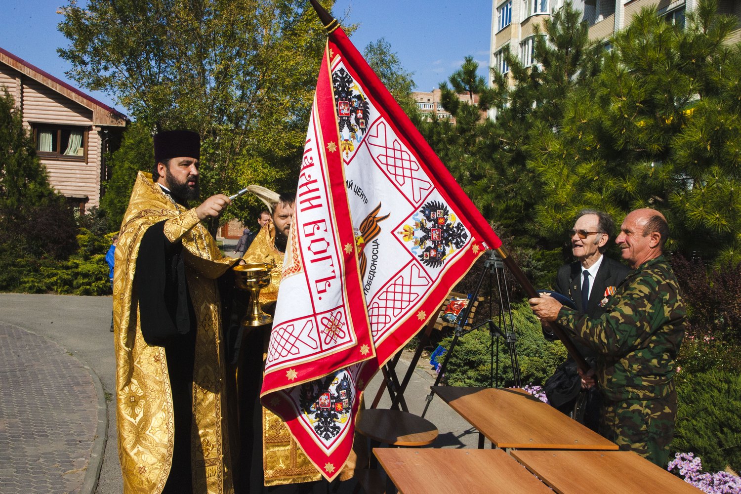5 октября 2014 года на территории прихода Святого Георгия Победоносца (храма Иоанна Воина) состоялось торжественное мероприятие, посвященное началу занятий в приходской воскресной школе по программе Начальной Военной Подготовки. В этот же день состоялось освящение знамени Ростовского Духовно-Патриотического Центра Святого Георгия Победоносца, которое было изготовлено и подарено фирмой ООО «Символ» города Кропоткина. У освещенного знамени семеро воспитанников приняли присягу. Чин освящения знамени совершил настоятель прихода Святого Георгия Победоносца протоиерей Валерий Волощук. Поздравить воспитанников, их родителей и преподавателей пришёл ветеран Великой Отечественной Войны Малюк Александр Григорьевич, почетными гостями мероприятия были казаки станицы Гниловской Всевеликого Войска Донского во главе с атаманом казачьим полковником Олейниковым Валерием Ивановичем. По окончании торжественной части в воскресной школе воспитанники приступили к занятиям по военно-патриотической программе «Уроки Мужества».