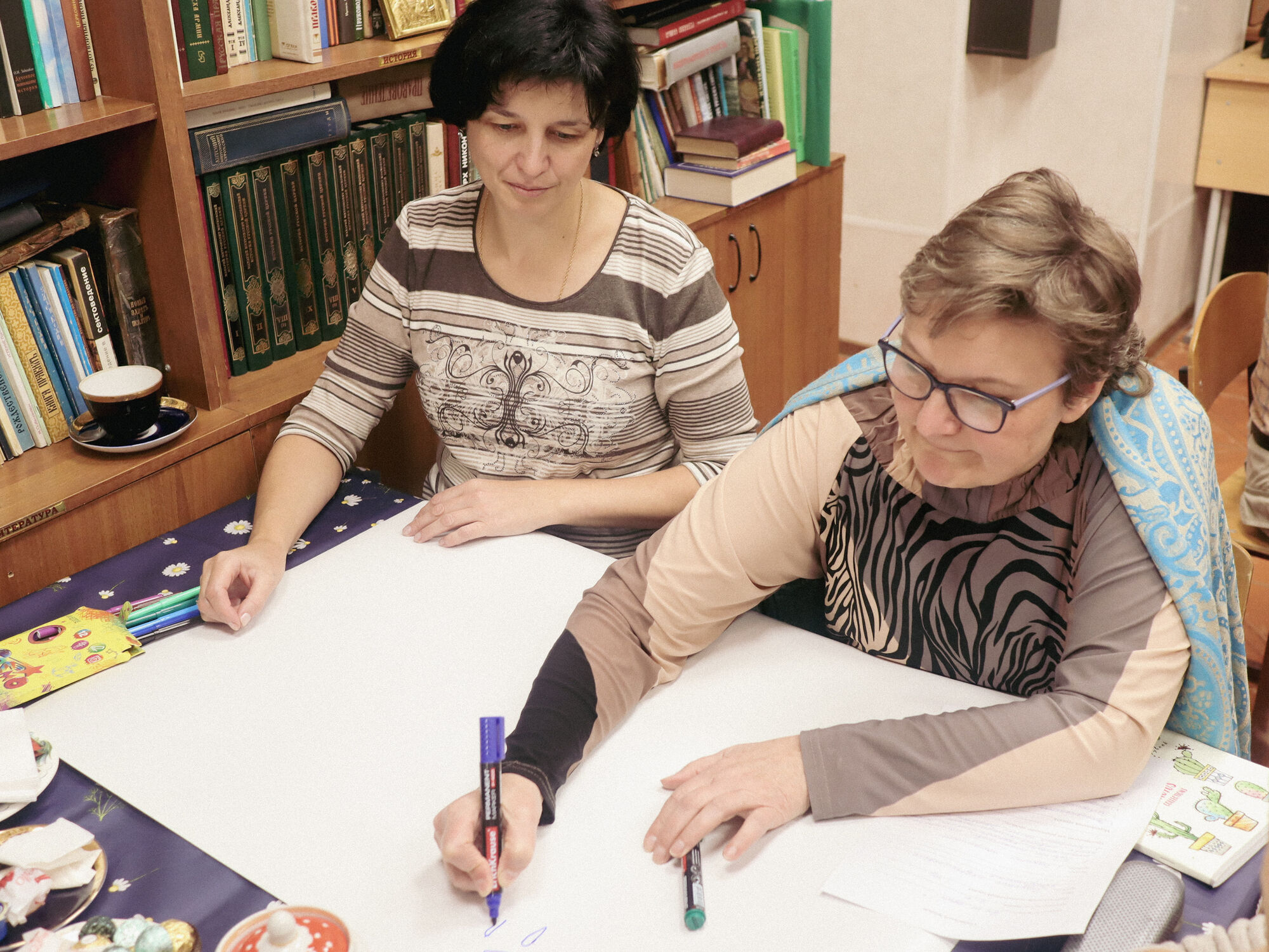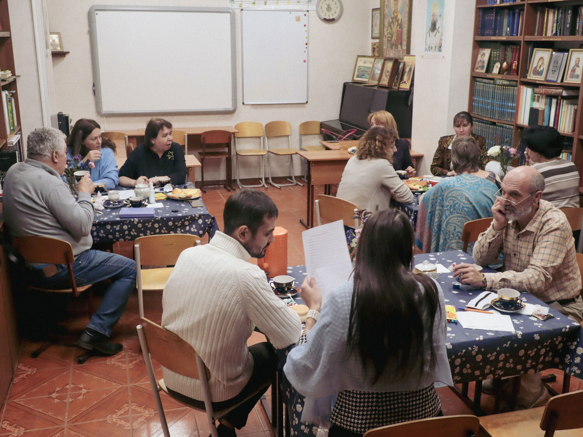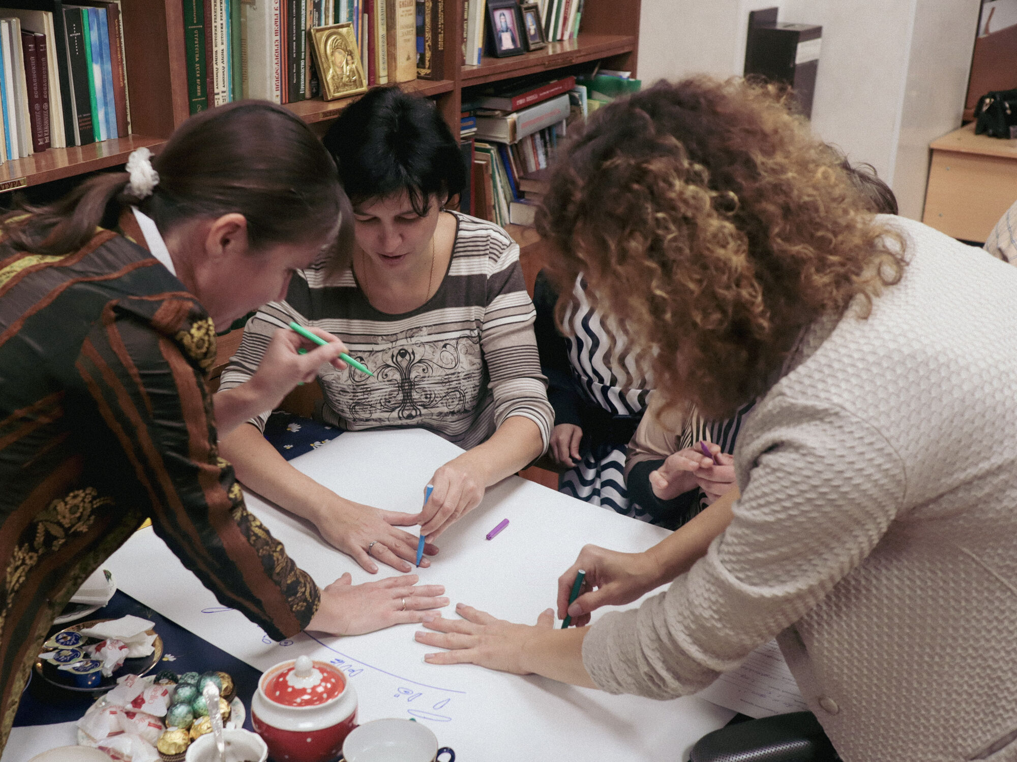 День учителя педагоги нашей Воскресной школы отметили совместной творческой работой. Почувствовать плечо коллеги и руку друга, воодушевиться и повысить свое мастерство наши учителя смогли в рамках тренинга «Педагогическая Мастерская», который для них провела кандидат педагогических наук, преподаватель ЮФУ Олеся Анатольевна Шестопалова.