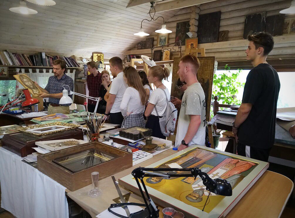 В рамках недели академической мобильности в ДГТУ наш приход посетили студенты первого курса бакалавриата программы «Теология». Иконописец нашей мастерской Дмитрий Александрович рассказал про творческие направления деятельности нашего прихода, провел экскурсию в храме 40-ка Севастийских мучеников, показал иконостас и многие иконы, написанные в нашей мастерской. Студенты-теологи также увидели работы мастериц-золотошвеек и познакомились с этапами написания иконы.