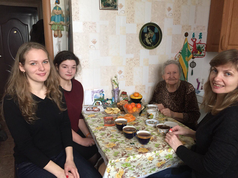 5 января 2018 года молодёжное движение и сестричество нашего прихода посетили нашего подопечного ветерана Чикурову Нину Федоровну и поздравили ее с Новым годом и наступающим Рождеством Христовым. Время за чаепитием было проведено в приятной беседе и тёплых воспоминаниях.
