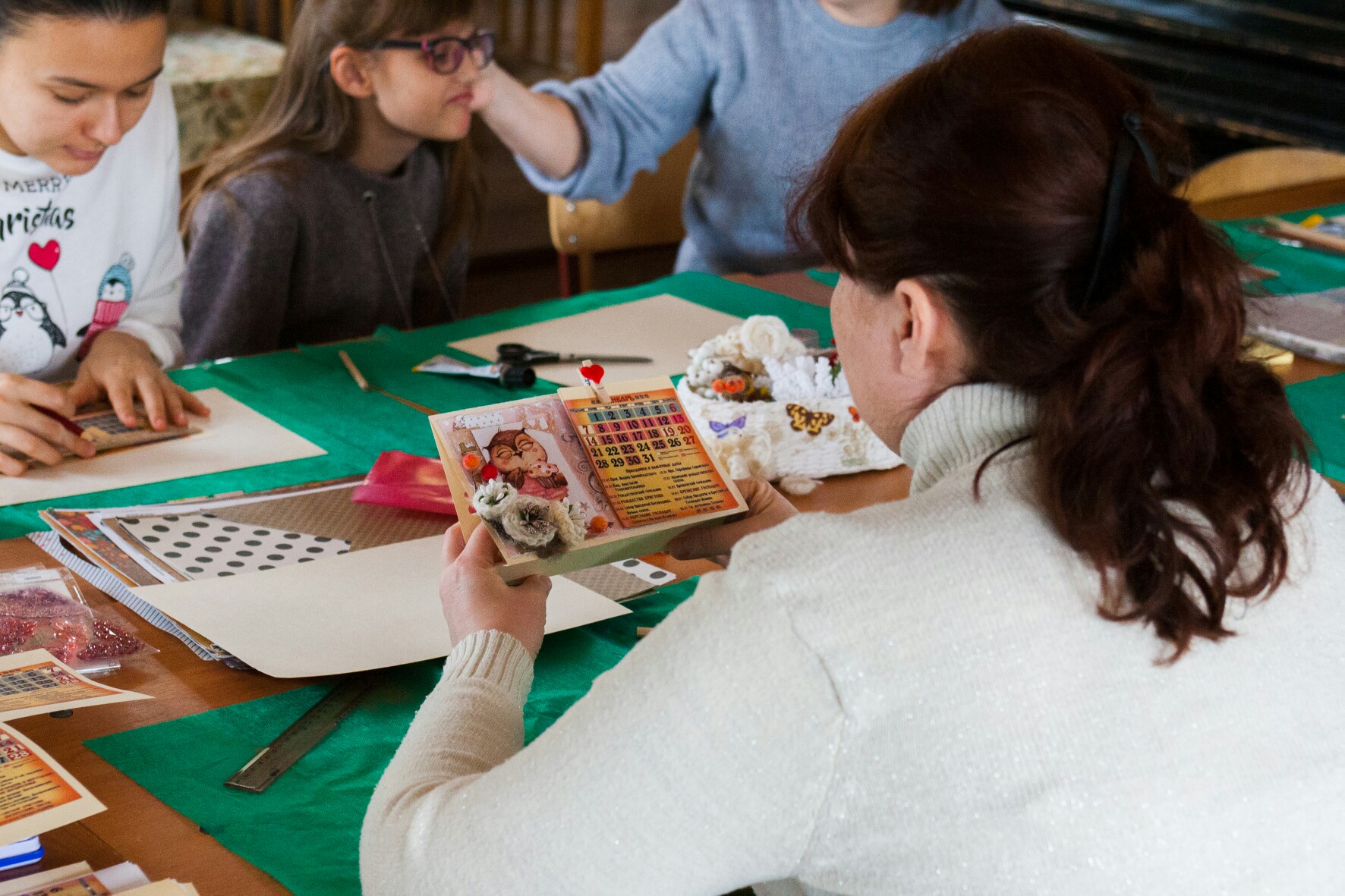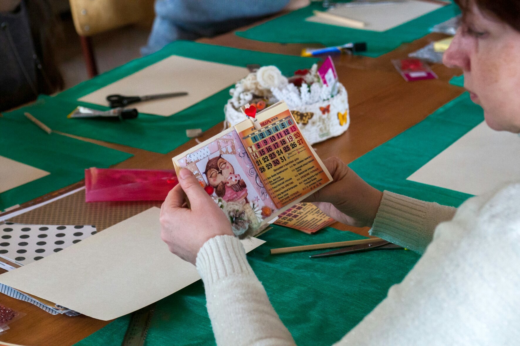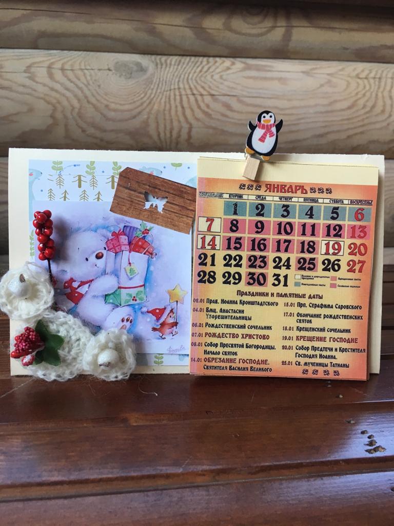 5 января 2019 года на нашем приходе прошёл мастер класс по созданию настольного откидного календаря. В календаре отмечены все православные праздники и посты, есть место для важных заметок. Украсили его забавными картинками, авторскими цветами ручной работы, ягодками и тесемочками. Все работы получились интересными и неповторимыми! Ждем вас на наших творческих встречах!