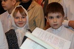 Несмотря на то, что для учащихся воскресной школы это был первый опыт такой службы, и алтарники, и хор справились, служба получилась красивой и торжественной; 150 детей причастились Святых Таин.