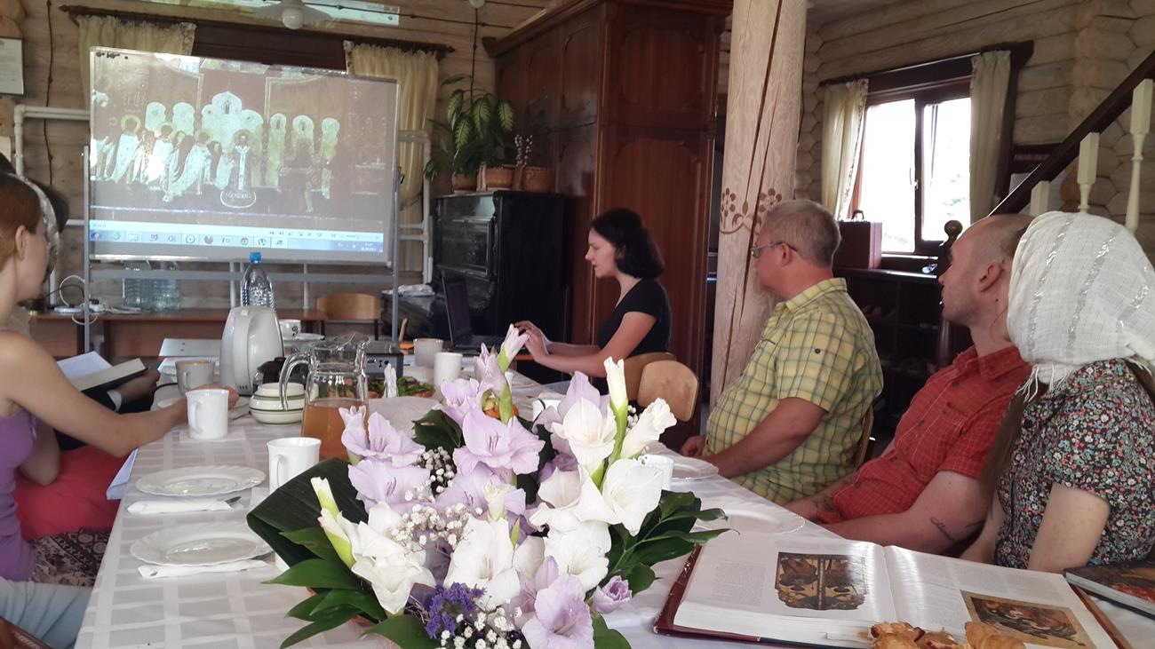 В ходе работы освещались различные аспекты древней и современной иконописи. С докладом на тему развития иконописи 16-17 веков выступила студентка 4 курса факультета церковных художеств ПСТГУ Екатерина Смирнова.