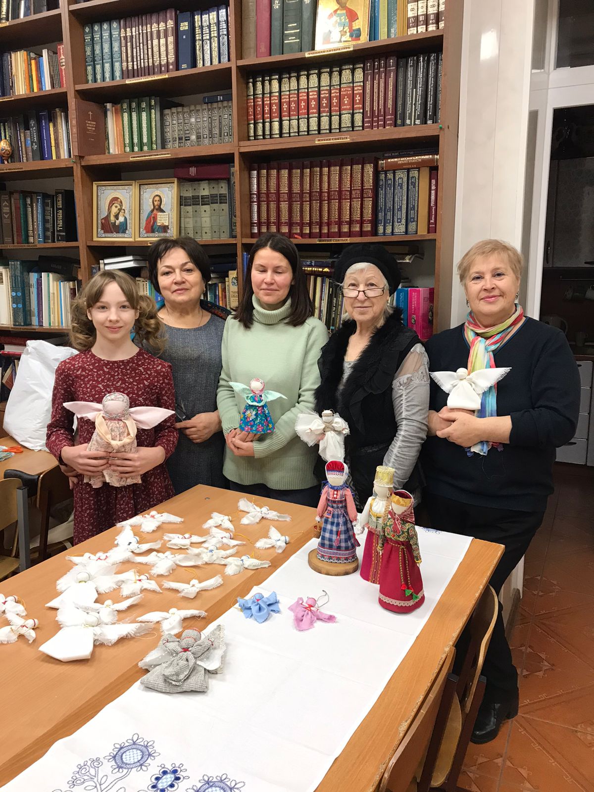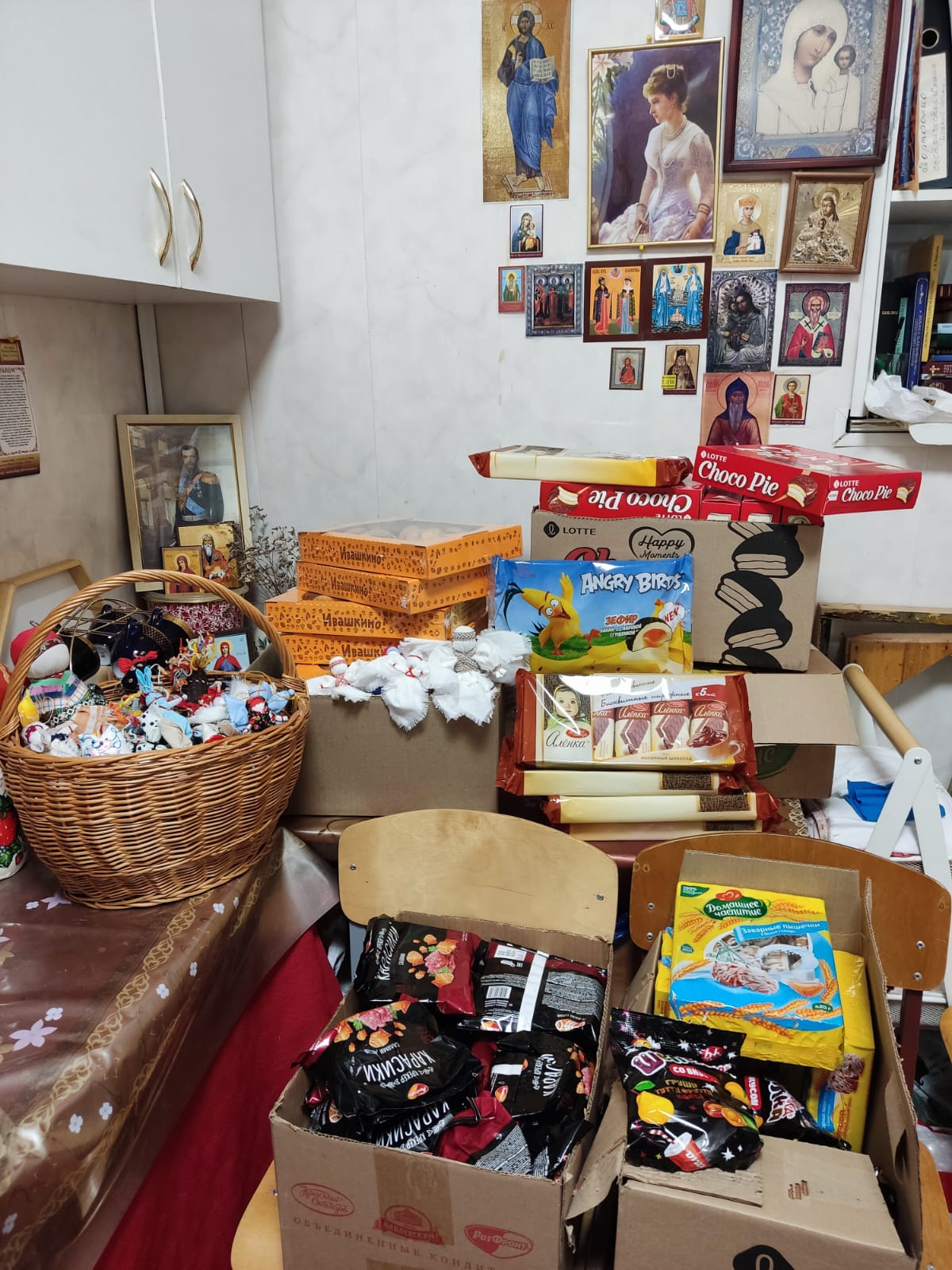 От нашего прихода были собраны подарки детям. Мастерицы центра «Народная кукла» сделали своими руками ангелочков, зайчиков и кукол. Флористы передали детям теплые носки, сестры милосердия собрали детям сладости, мандарины, игрушки.
