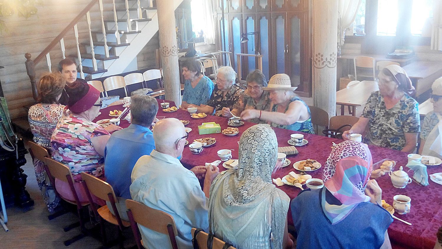 6 июля 2016 года наш приход посетили члены Всероссийского Общества слепых во главе с председателем Заграничной Мариной Николаевной. В дружеской атмосфере за чаем иерей Роман Зимин и руководитель школы церковных звонарей прихода св. Георгия Победоносца Ольга Павловна Шевчук рассказали гостям о нашем приходе. Отец Роман ответил на волнующие вопросы, касающиеся веры.