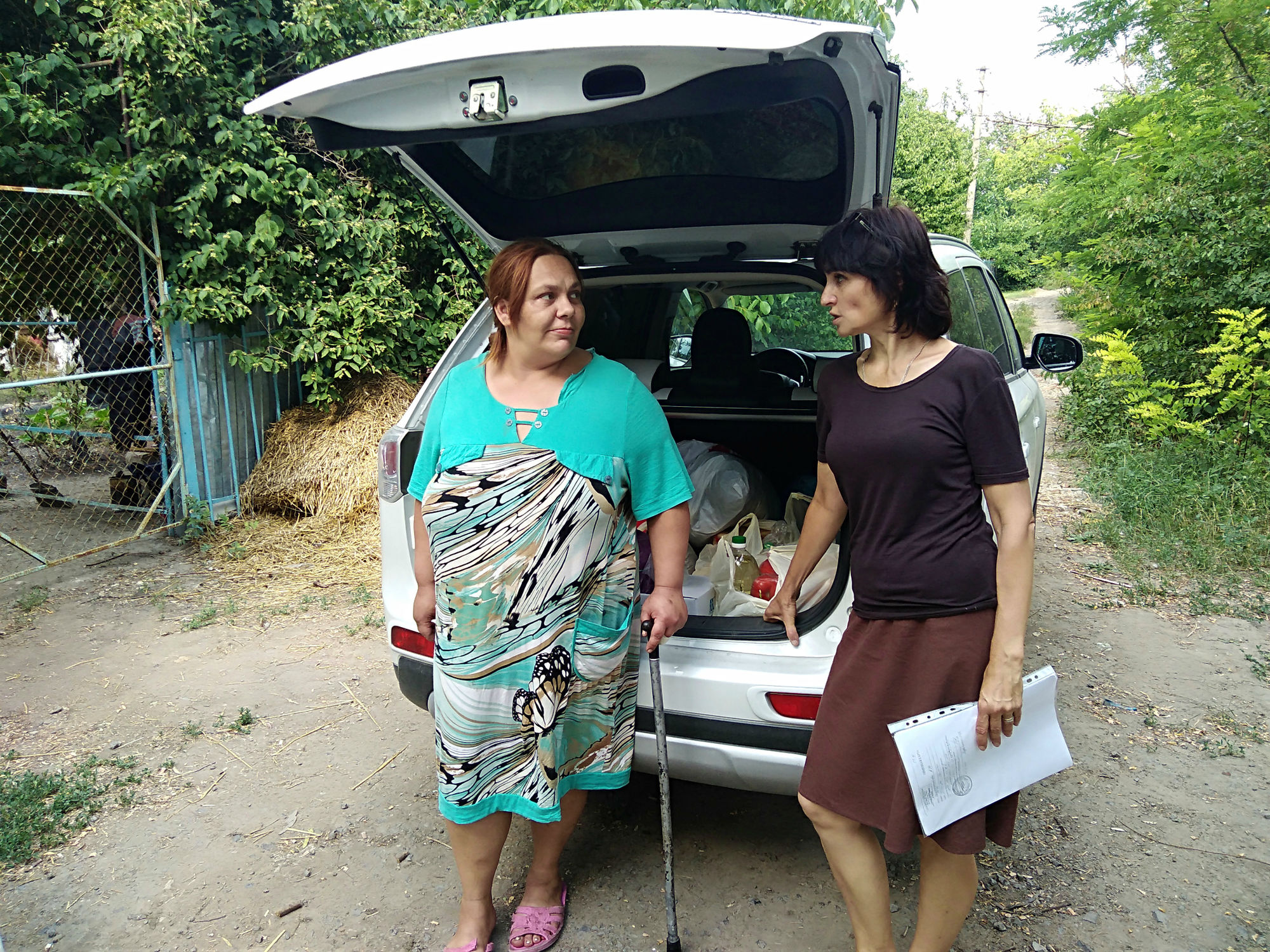 Регулярно наше сестричество посещает своих инвалидов. Каждому мы стараемся оказать посильную помощь в уборке квартиры, приготовлении еды, купании, приобретении лекарств и памперсов. В настоящее время Анжелика живет с детьми в садах под Самбеком. Регулярно организуется машина с продуктами и по-возможности с вещами. Собраны документы для того чтобы обратиться в Фонд для оказании помощи в приобретении дорогостоящих лекарств как для самой Анжелики, так и для ее ребенка, который в настоящее время находится в больнице.