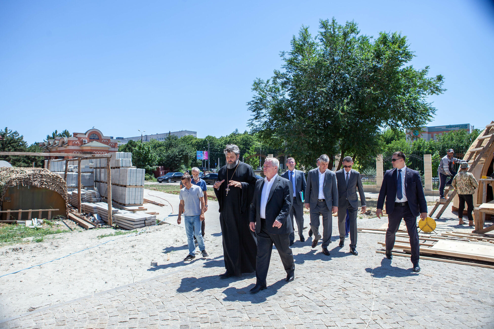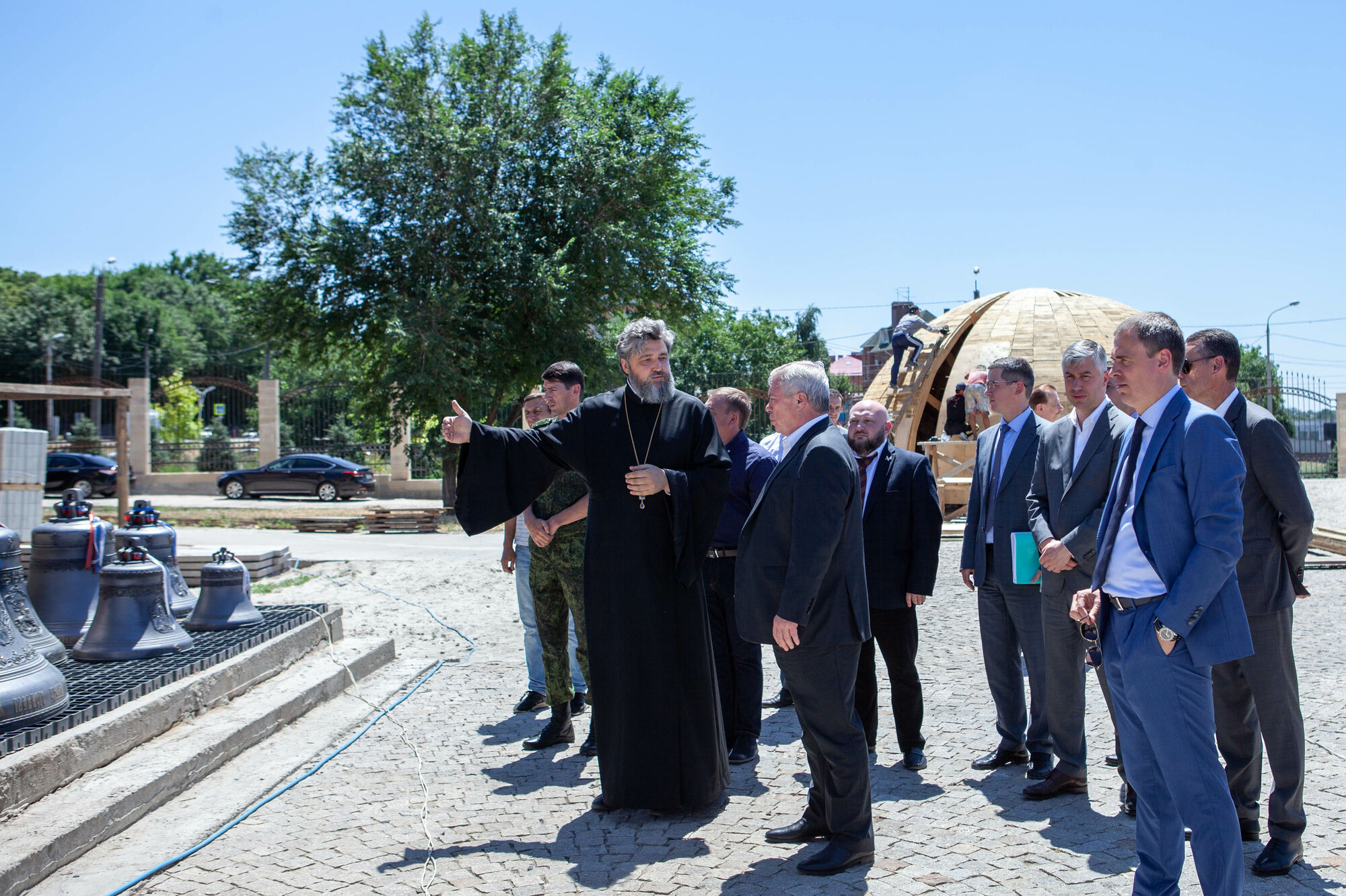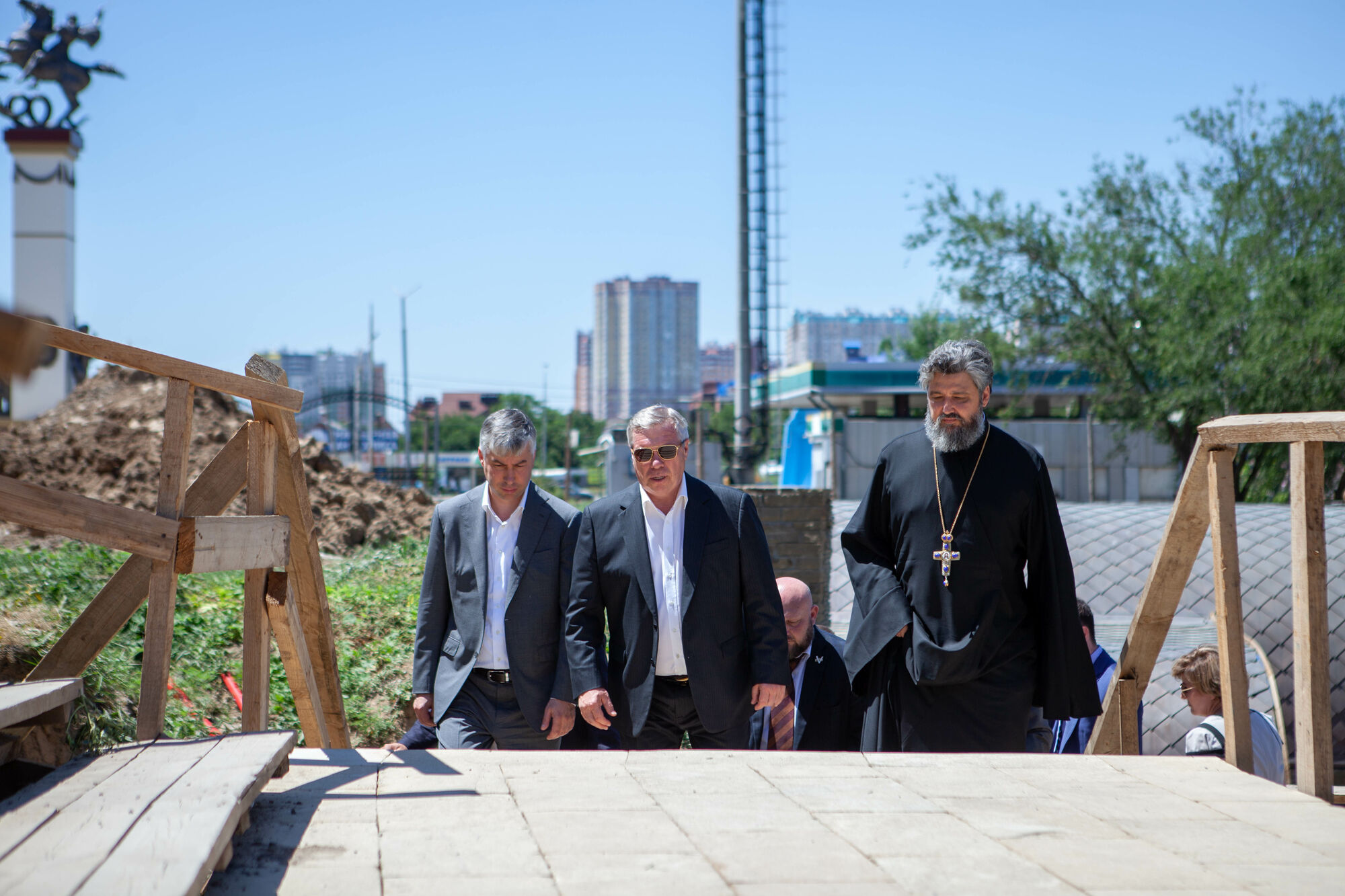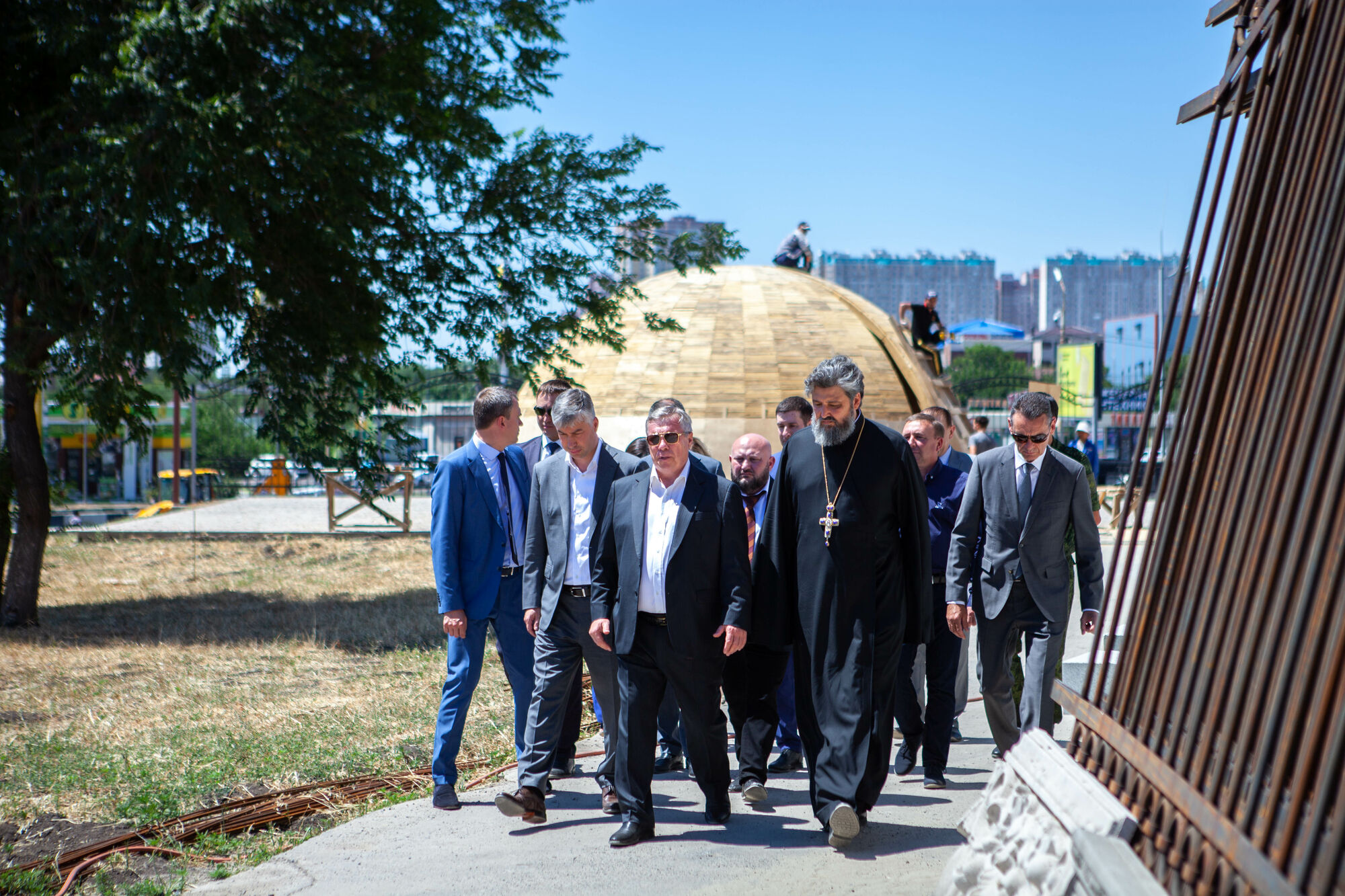 Василий Юрьевич осмотрел текущее состояние строительства храма. Настоятель прихода протоиерей Валерий Волощук представил проект внешнего декора храма и презентовал предложения по концепции интерьеров, показал элементы резного иконостаса. Также гости осмотрели прилегающую территорию, Георгиевский парк, объекты, находящиеся в стадии завершения.