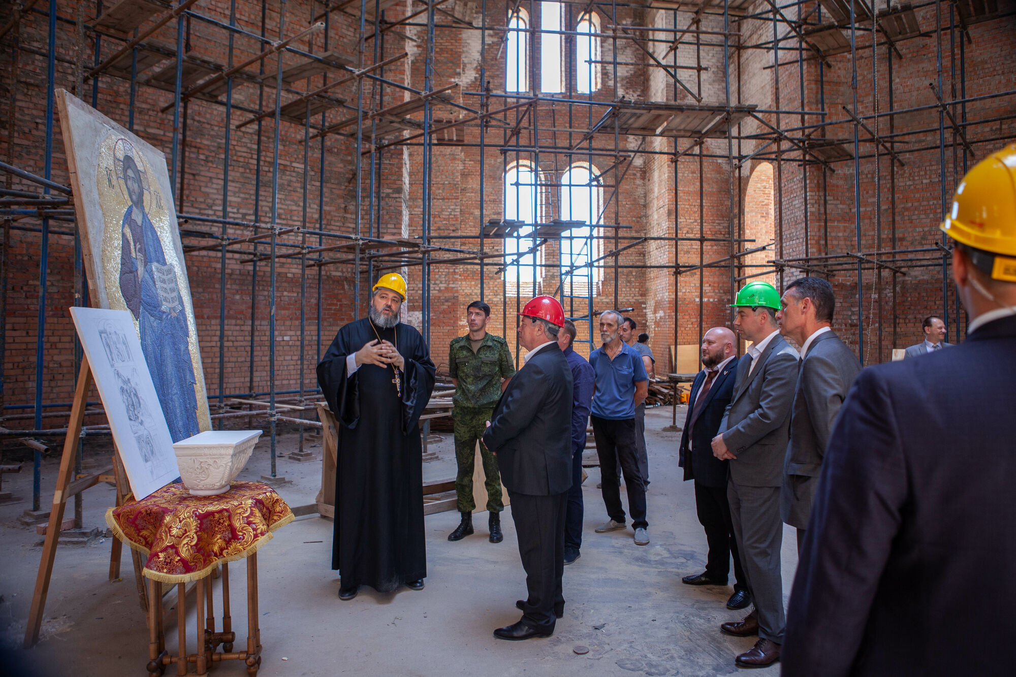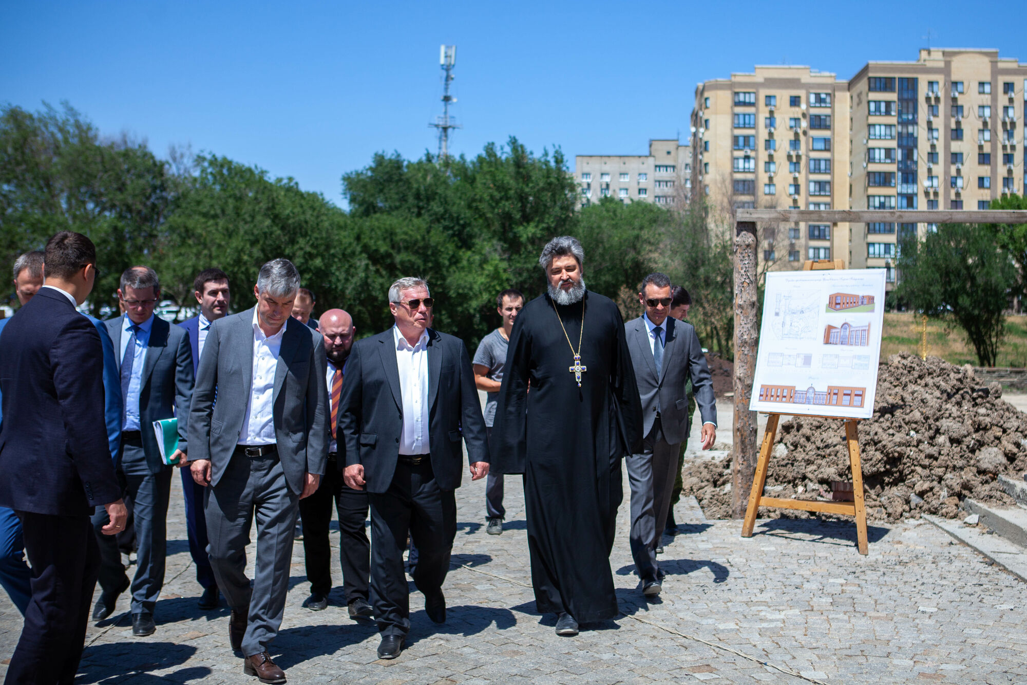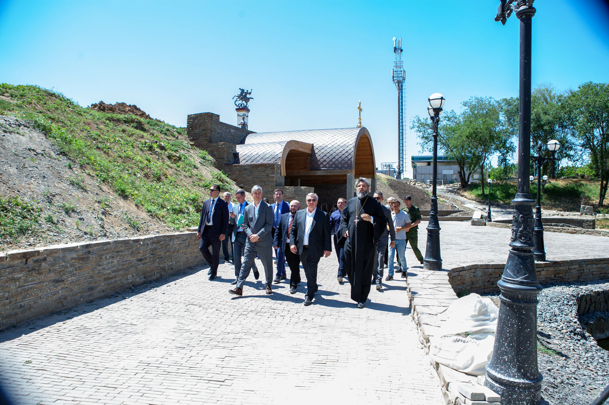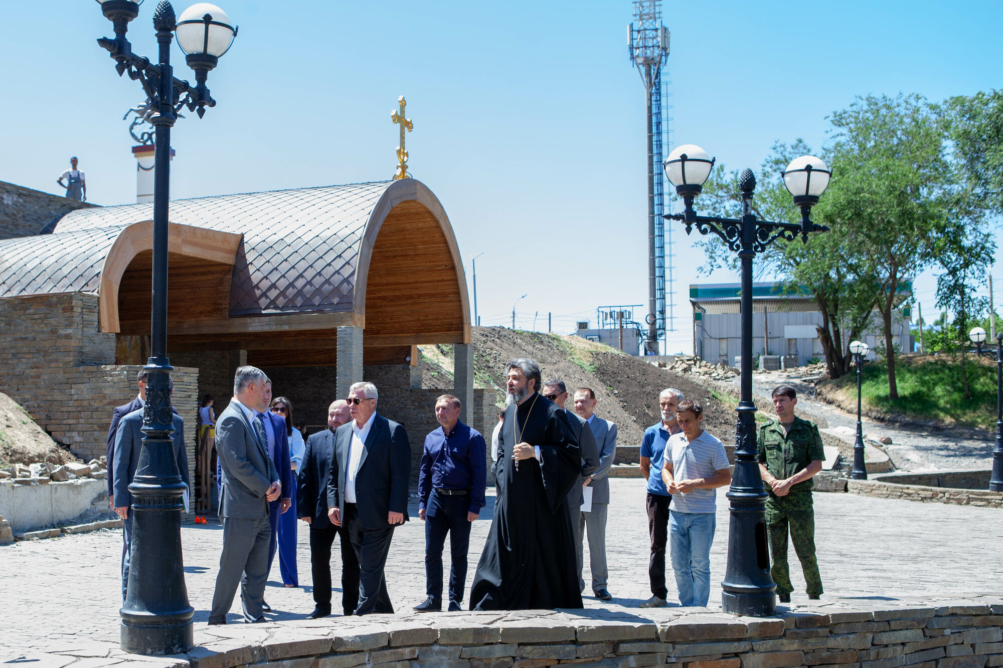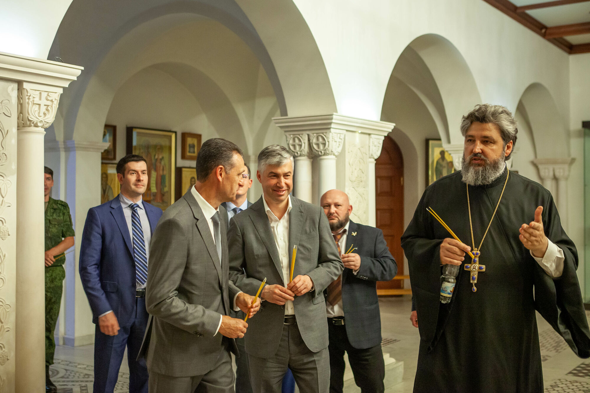 Василий Юрьевич осмотрел текущее состояние строительства храма. Настоятель прихода протоиерей Валерий Волощук представил проект внешнего декора храма и презентовал предложения по концепции интерьеров, показал элементы резного иконостаса. Также гости осмотрели прилегающую территорию, Георгиевский парк, объекты, находящиеся в стадии завершения.