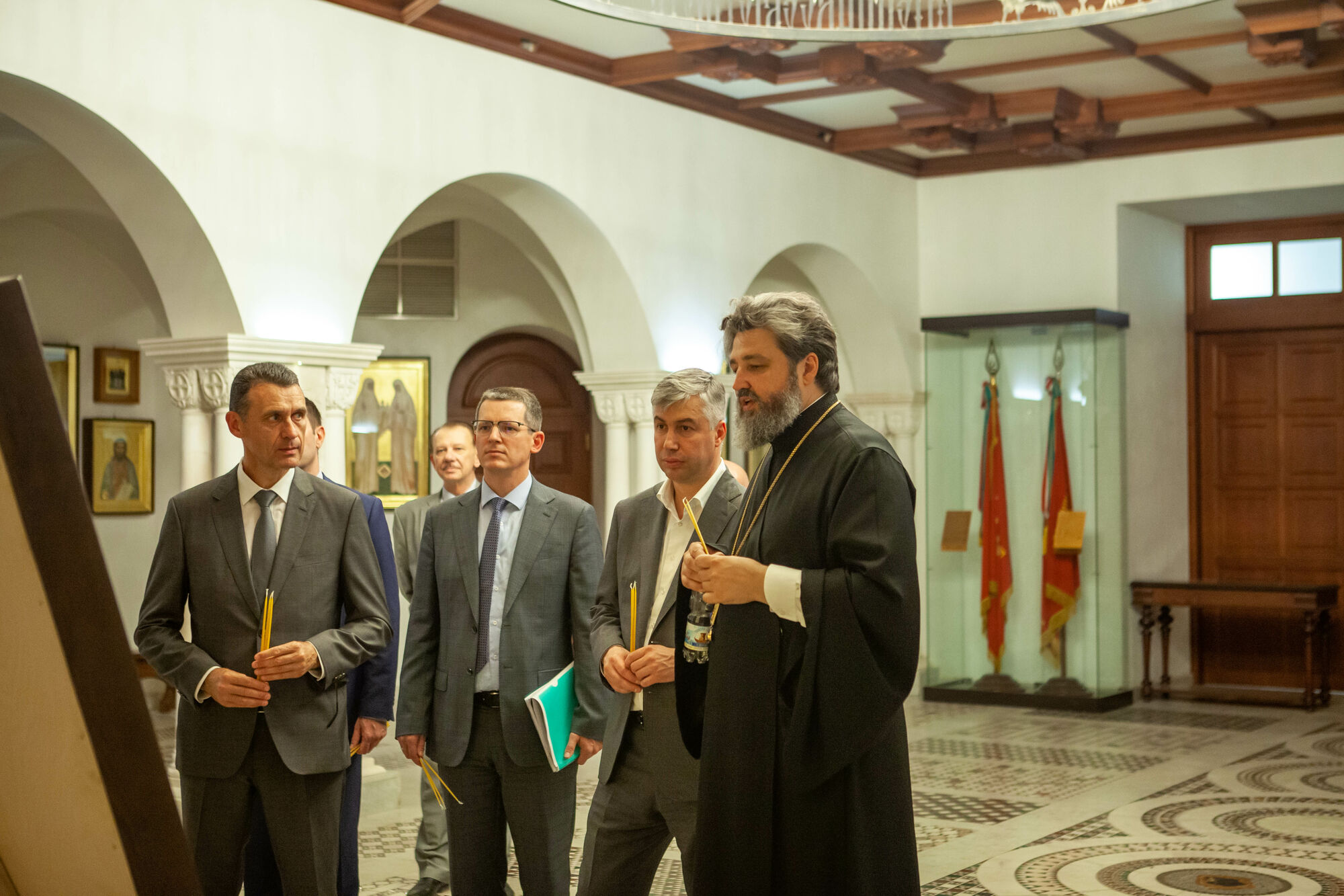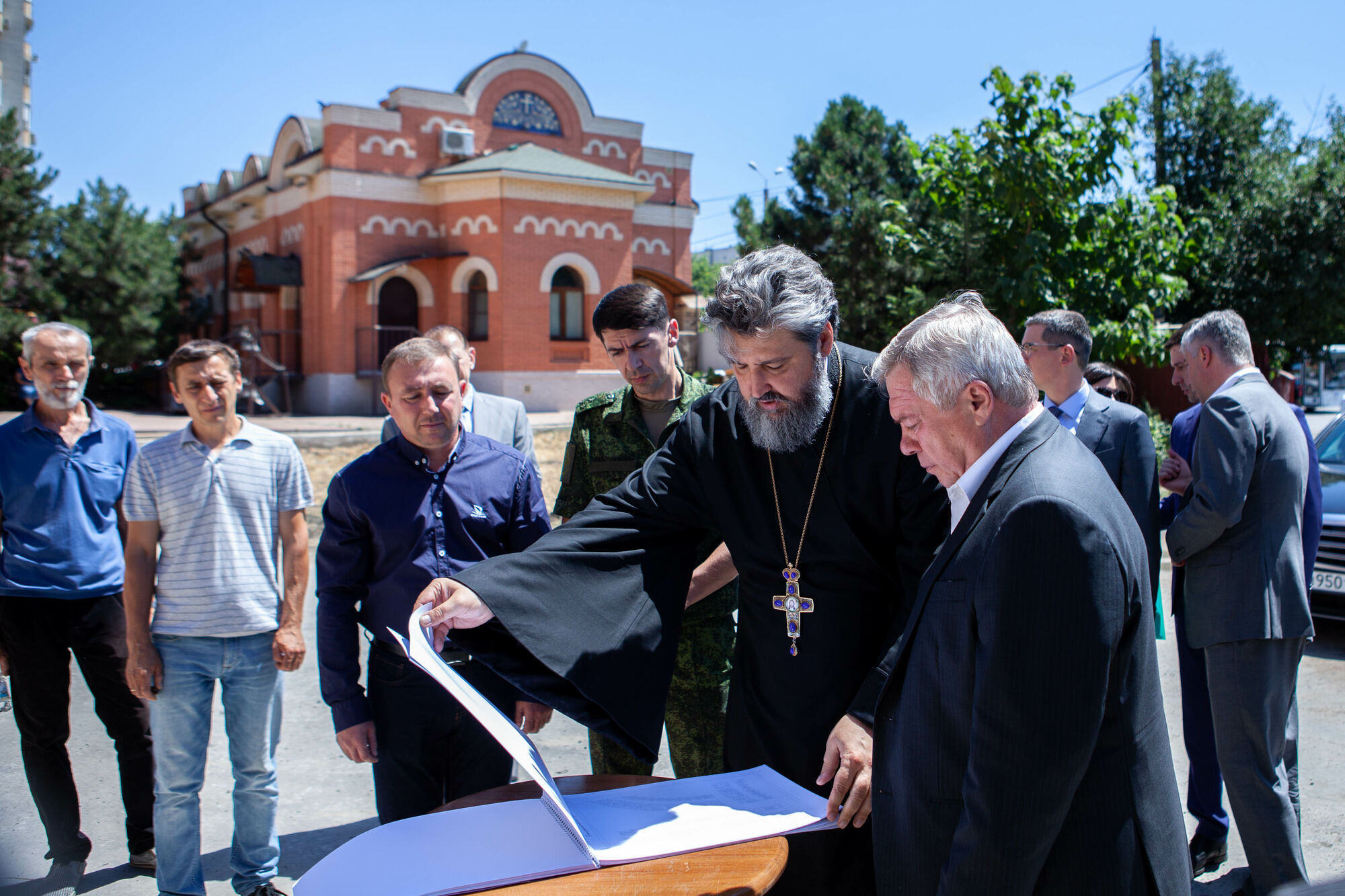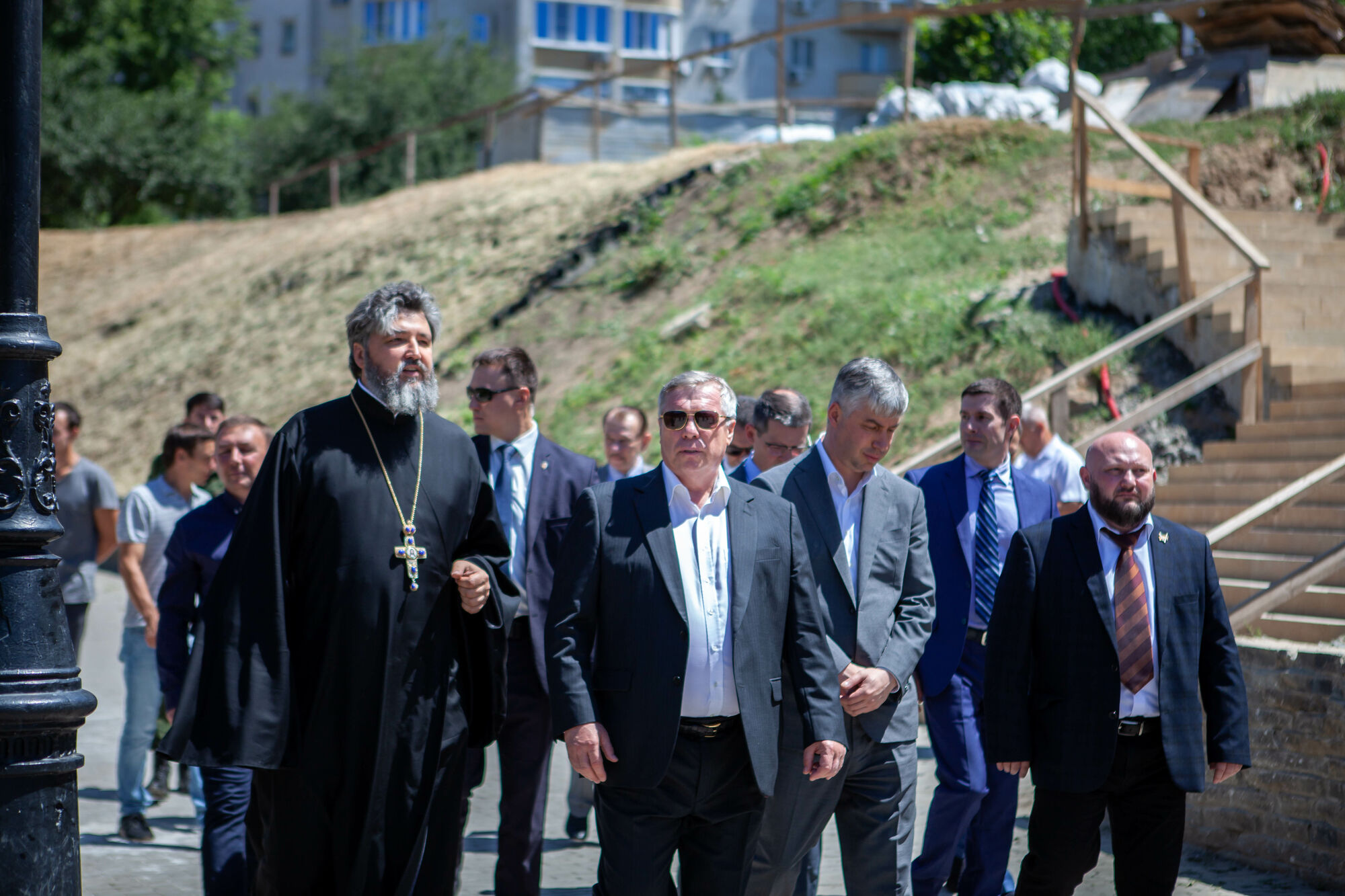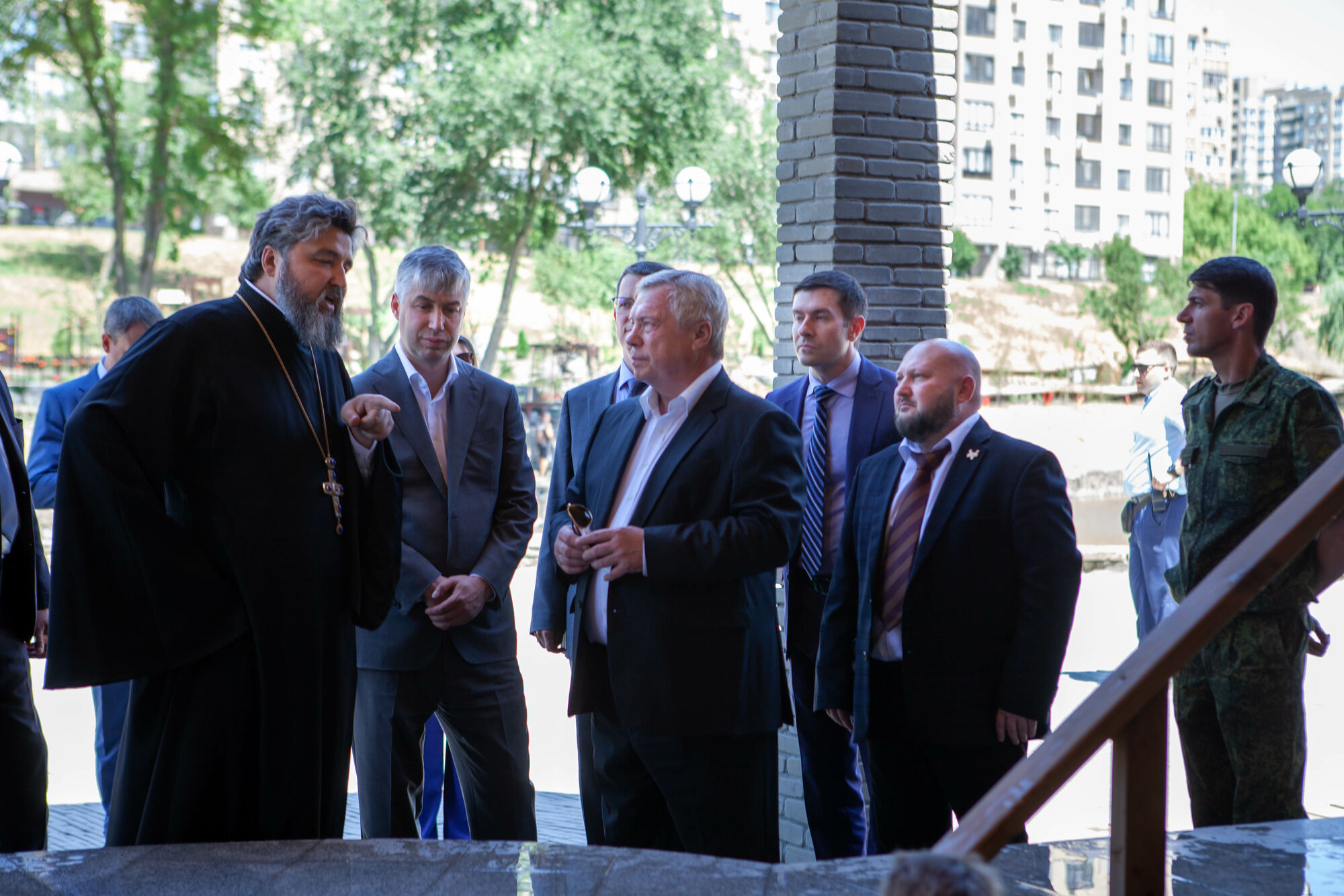 Василий Юрьевич осмотрел текущее состояние строительства храма. Настоятель прихода протоиерей Валерий Волощук представил проект внешнего декора храма и презентовал предложения по концепции интерьеров, показал элементы резного иконостаса. Также гости осмотрели прилегающую территорию, Георгиевский парк, объекты, находящиеся в стадии завершения.