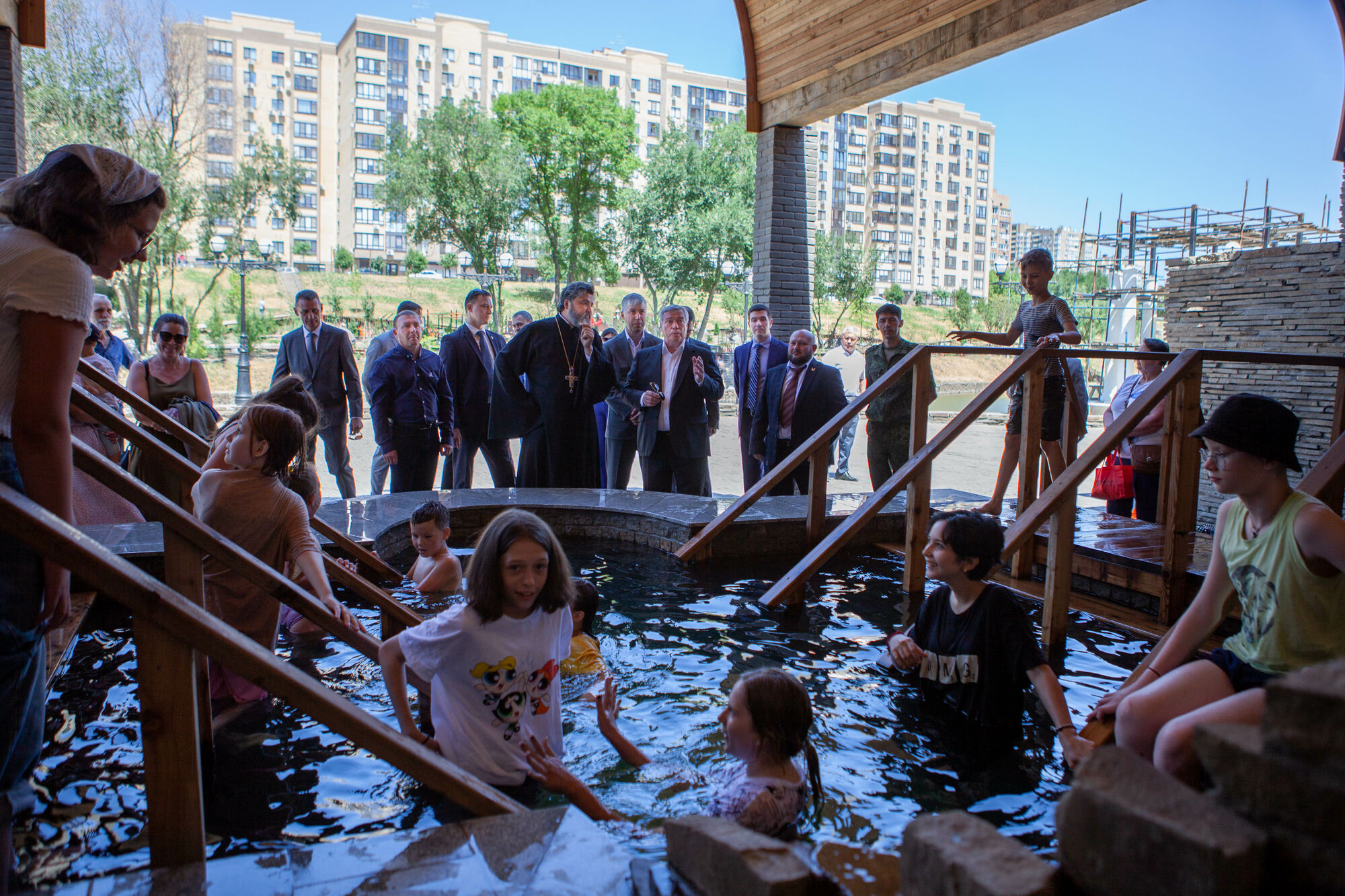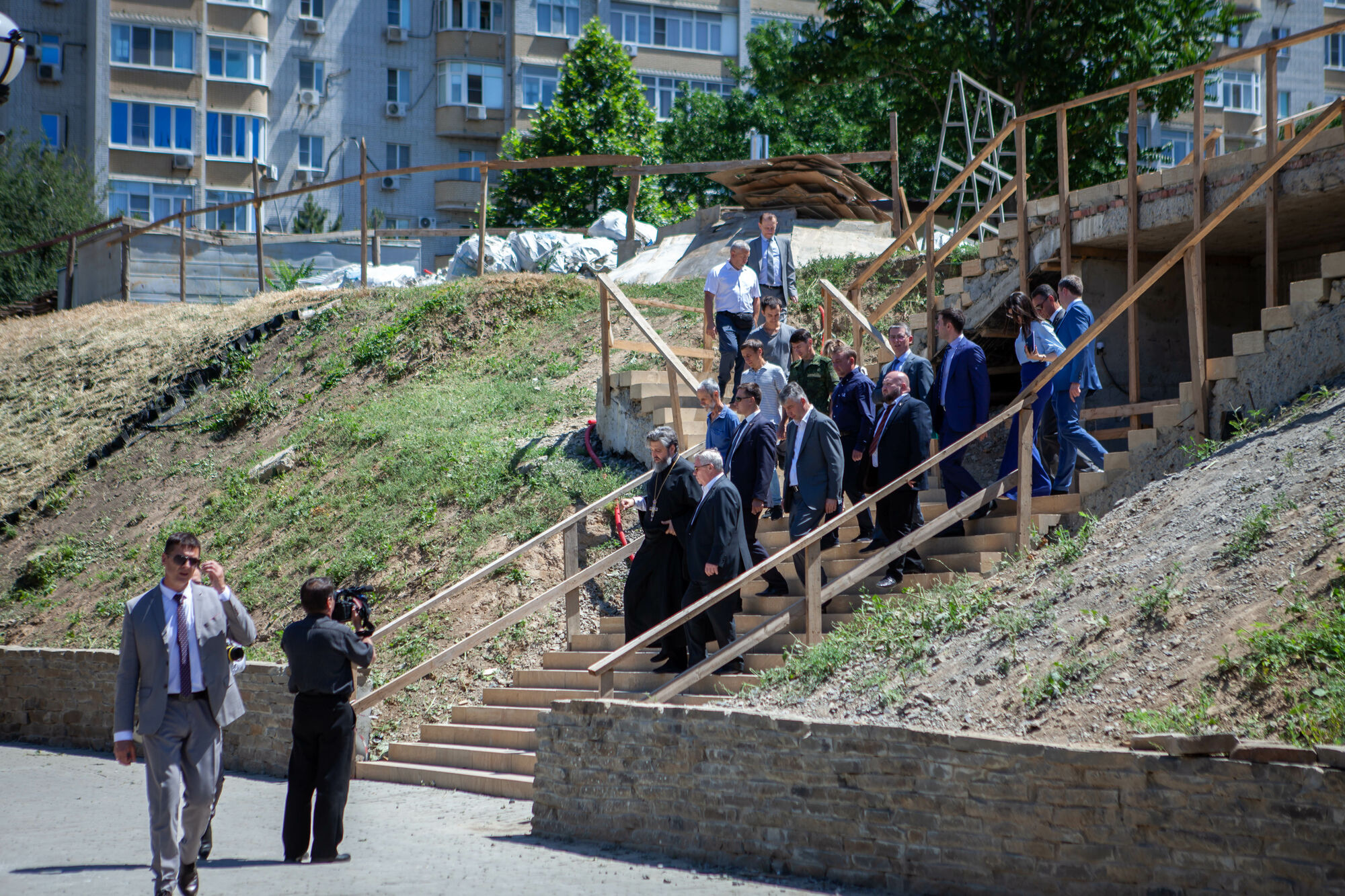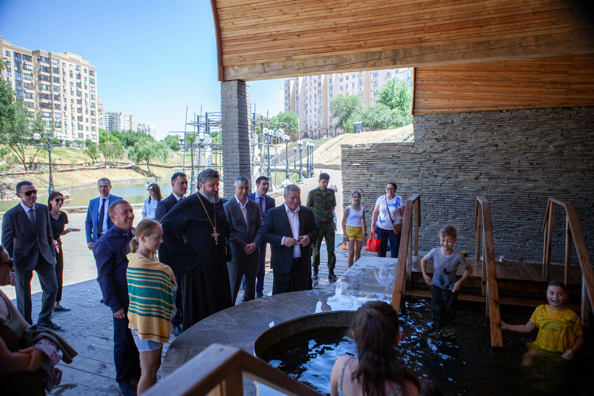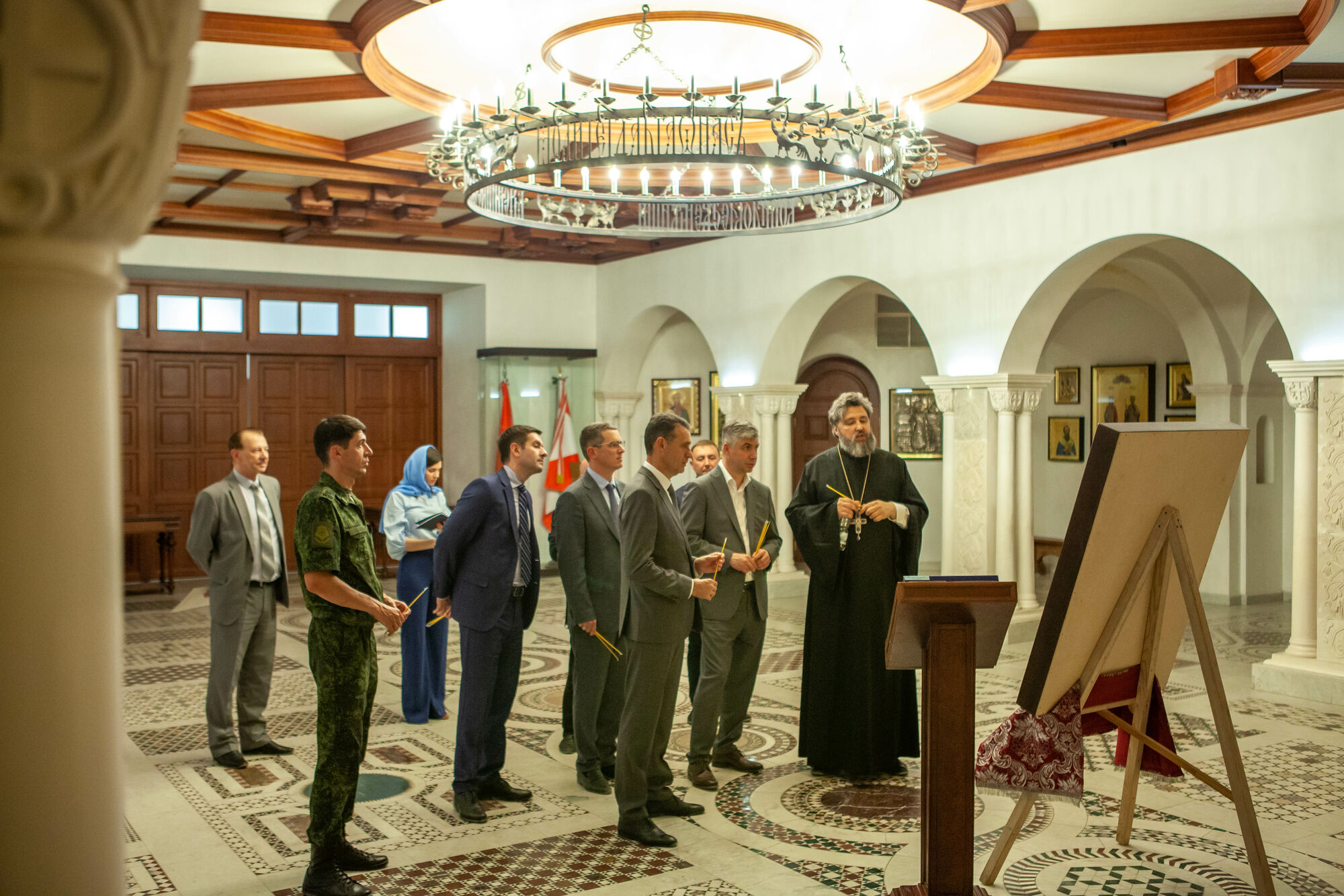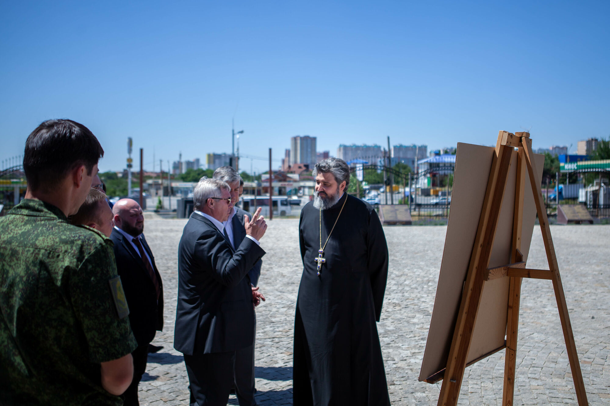 Василий Юрьевич осмотрел текущее состояние строительства храма. Настоятель прихода протоиерей Валерий Волощук представил проект внешнего декора храма и презентовал предложения по концепции интерьеров, показал элементы резного иконостаса. Также гости осмотрели прилегающую территорию, Георгиевский парк, объекты, находящиеся в стадии завершения.