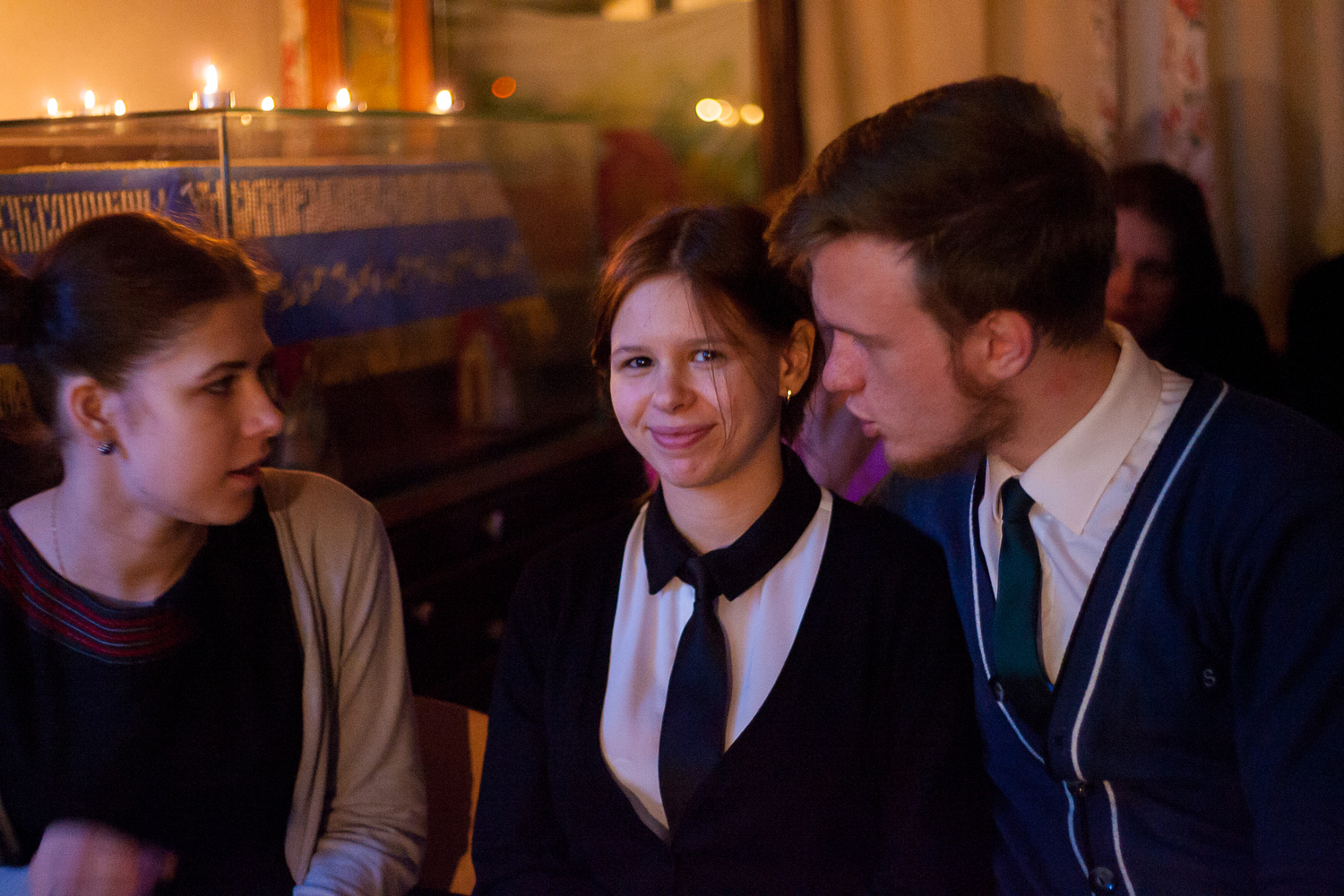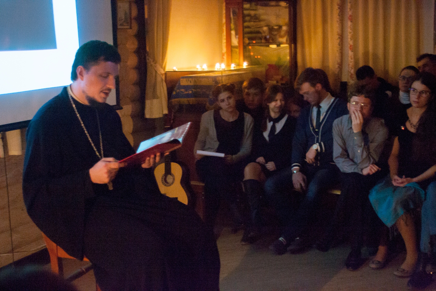 Инициаторами и организаторами мероприятия выступили молодежный клуб "Благо-дать", старший звонарь прихода Ольга Шевчук, алтарник Денис Сакович, активно помогал участник клуба Иван Федосов. В вечере приняли активное участие настоятель протоиерей Валерий Волощук, благочинный Западного округа иерей Александр Литвиненко, священник прихода иерей Александр Орешин, дьякон Сергий Кропивницкий, старшая сестра Ольга Терехова, ребята из молодежного клуба, наши дорогие активные прихожане. На мероприятии также присутствовали директор воскресной школы матушка Ксения Валерьевна Волощук, завуч Татьяна Павловна Федосова и некоторые руководители мастерских. Сам вечер был разделен на 4 блока: Космос, Религия, Любовь и Юность, в рамках которых прозвучали любимые стихотворения, сказки, песни.