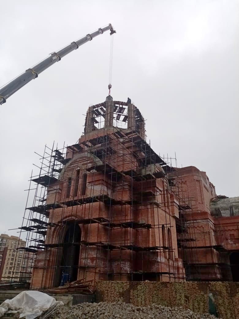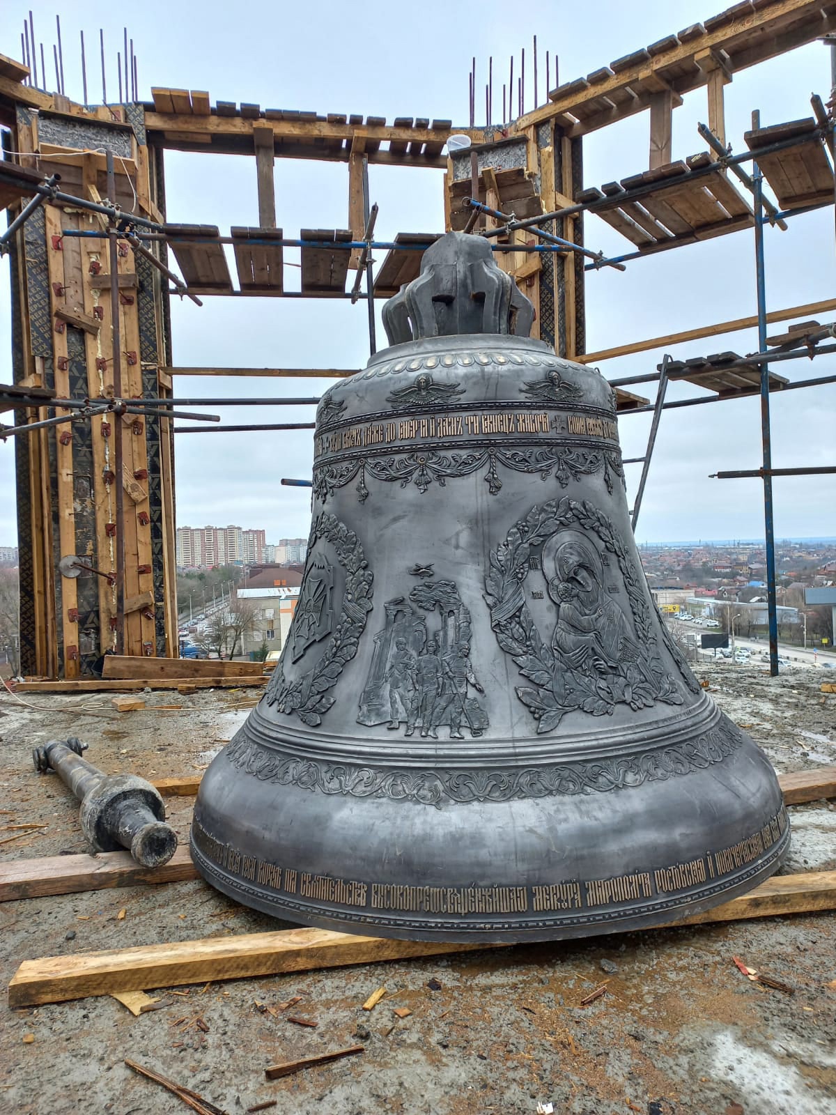 Благовестник готовится занять свое место на колокольне храма святого Георгия Победоносца.