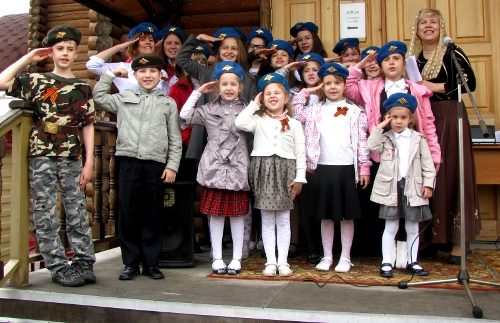 Детский хоровой коллектив приходской воскресной школы под руководством представителя Ростовского Духовно-патриотиического центра святого Георгия Победоносца, Бухтовой Ирины Петровны представил гостям праздника творческую патриотическую программу совместно с курсантами Ростовского Юридического Института МВД РФ Непорядкиной Ириной Владимировной и Белых Викторией Викторовной и председателем Центра Чуцковым Виктором Ивановичем.