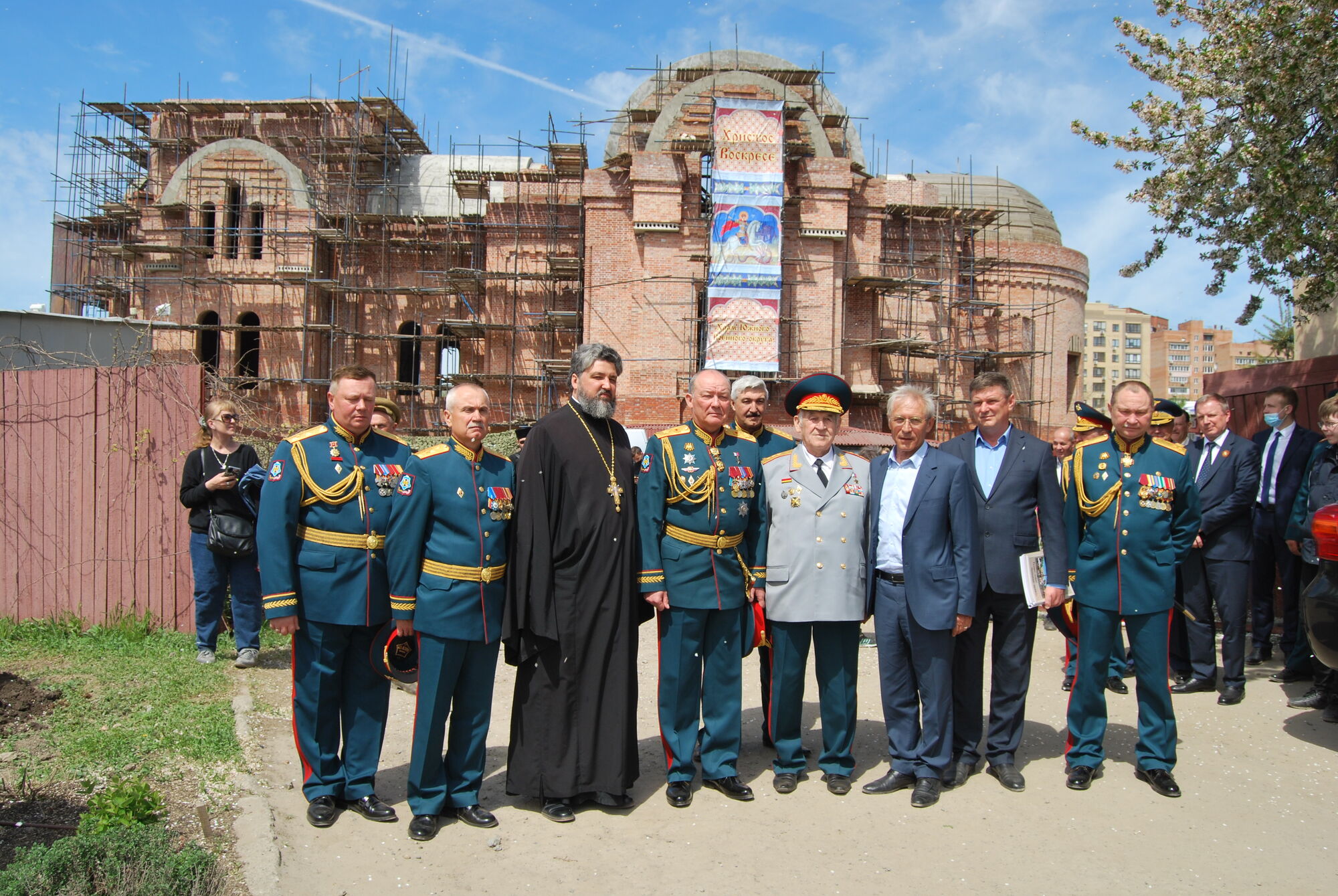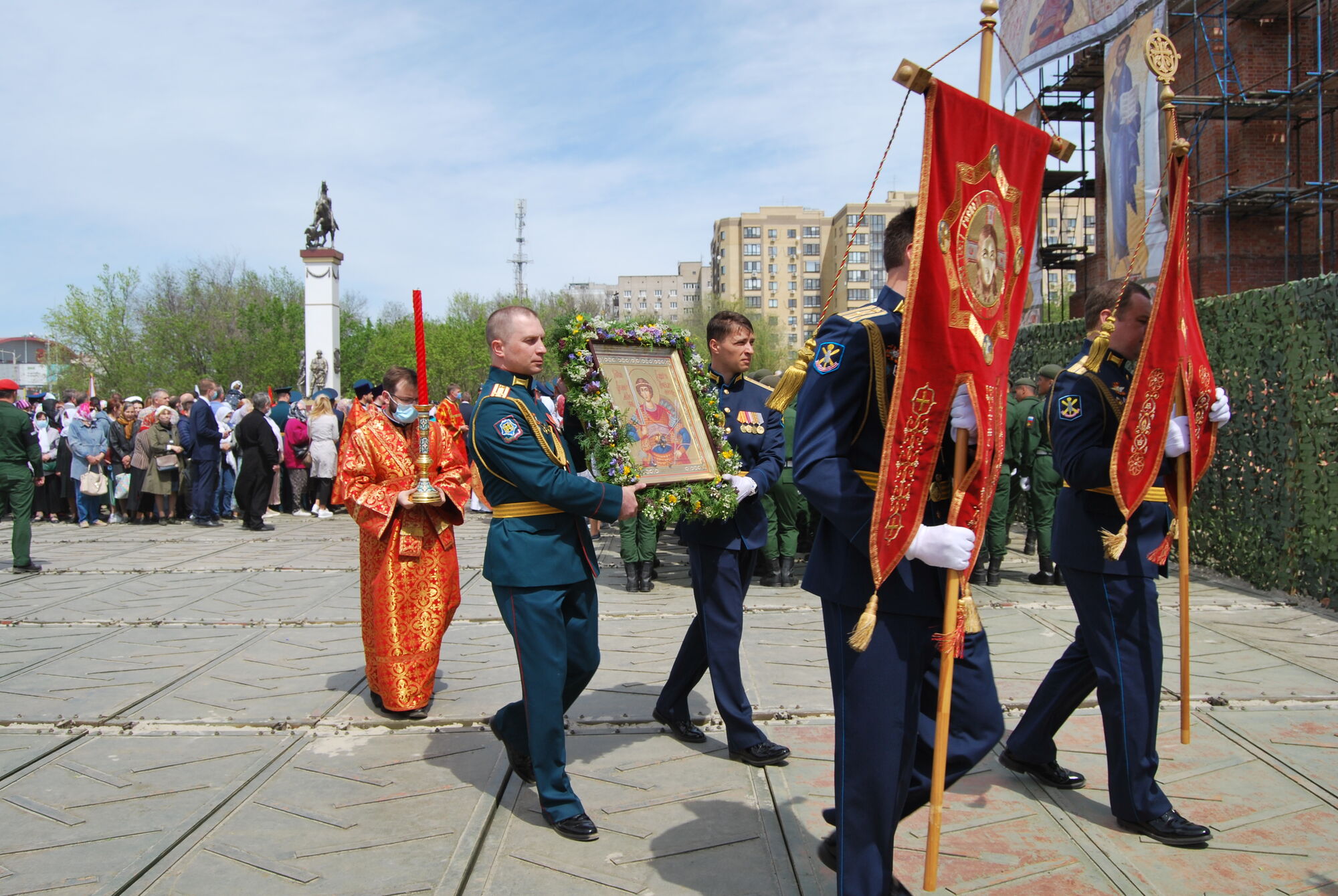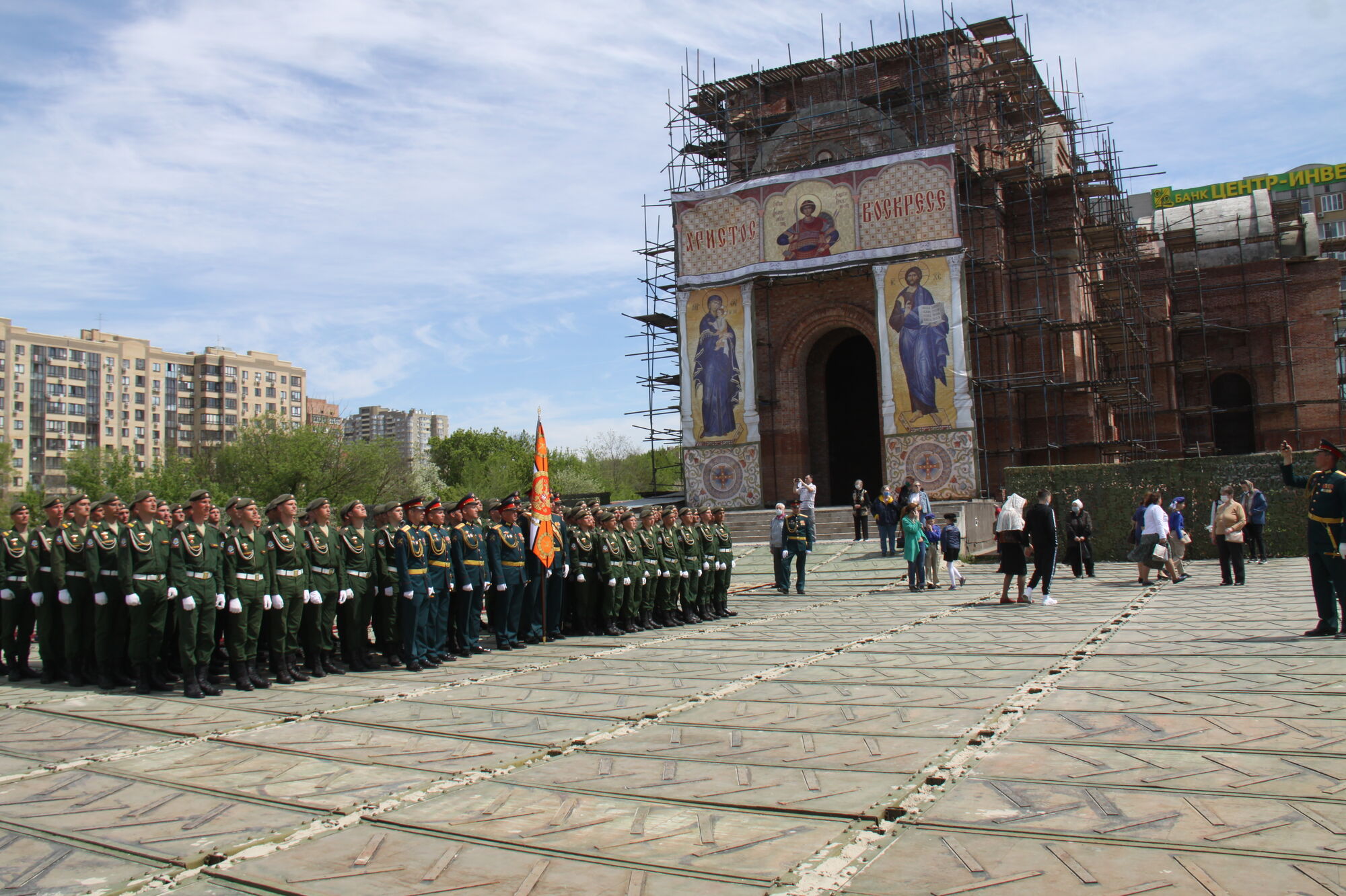 В это день нашему храму был присвоен статус Главного православного воинского храма Южного военного округа! По окончании Литургии состоялся крестный ход, во время которого молящиеся перешли на площадь перед строящимся Георгиевским храмом, где прошло торжественное открытие и освящение скульптурной композиции покровителю всего российского воинства святому Георгию Победоносцу. На площади был установлен почетный караул и построены военнослужащие различных родов войск. Также здесь собрались ветераны Великой Отечественной войны, юнармейцы и жители города.