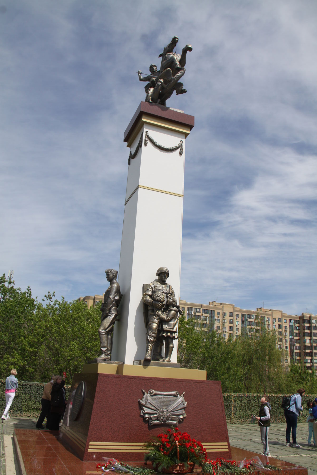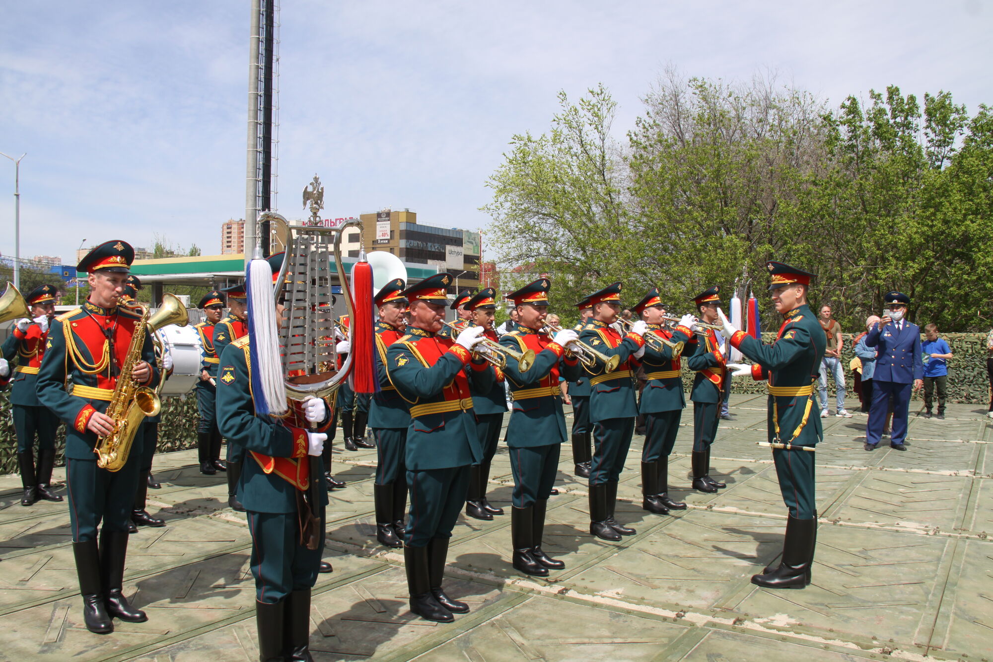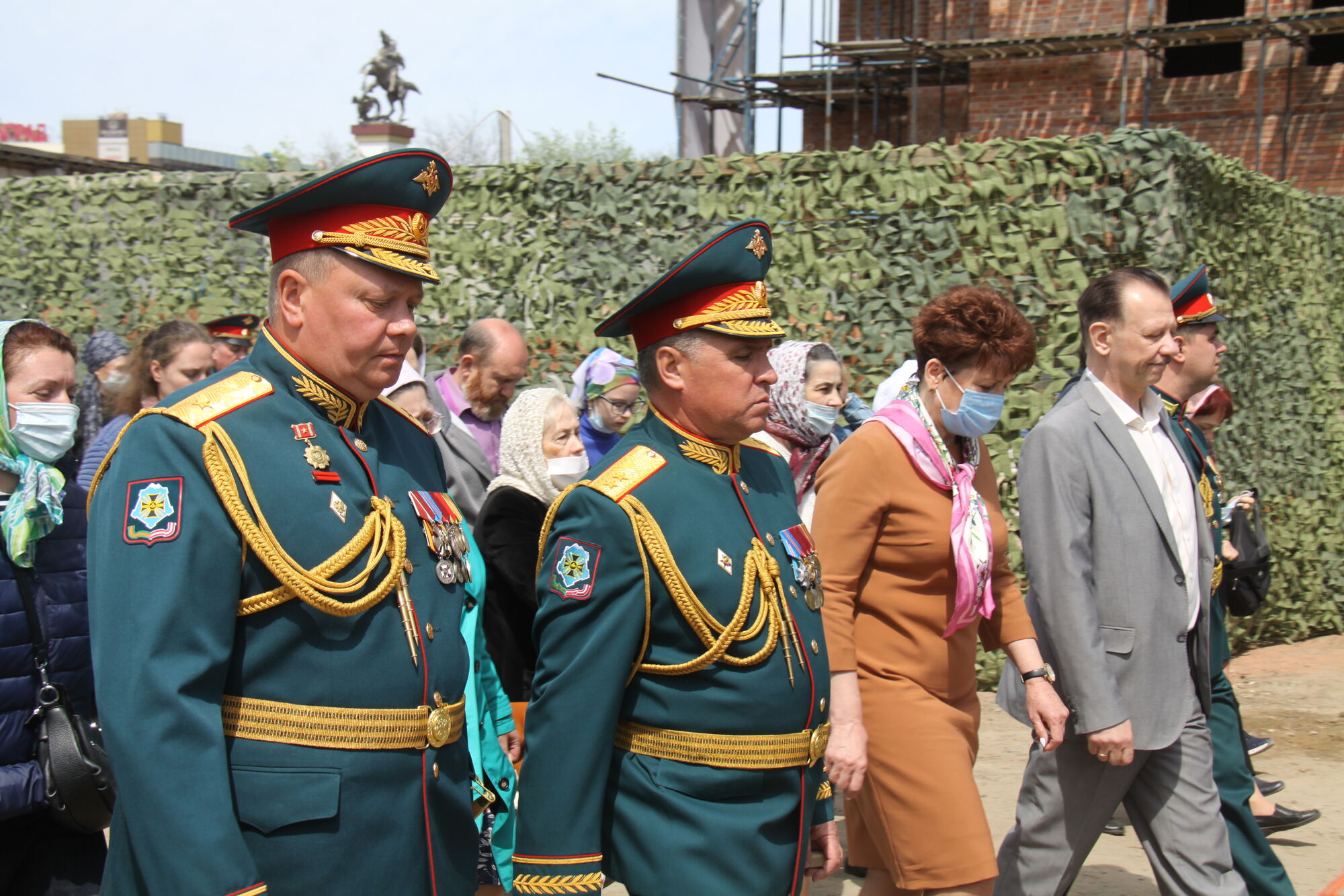 В это день нашему храму был присвоен статус Главного православного воинского храма Южного военного округа! По окончании Литургии состоялся крестный ход, во время которого молящиеся перешли на площадь перед строящимся Георгиевским храмом, где прошло торжественное открытие и освящение скульптурной композиции покровителю всего российского воинства святому Георгию Победоносцу. На площади был установлен почетный караул и построены военнослужащие различных родов войск. Также здесь собрались ветераны Великой Отечественной войны, юнармейцы и жители города.