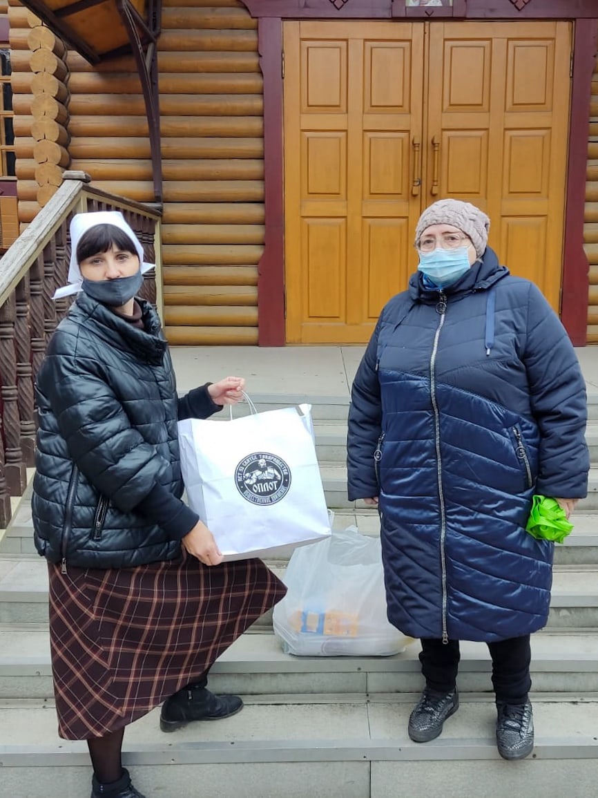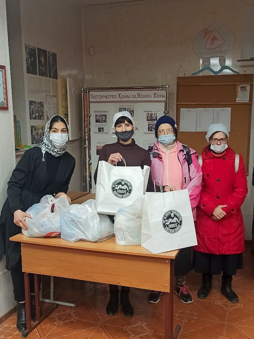 В Димитриевскую родительскую субботу наши сестры милосердия вместе с общественным движением «ОПЛОТ» передали окормляемым семьям продуктовые наборы. В связи с присвоением нашему храму святого Георгия Победоносца статуса главного храма Южного военного округа, по благословению настоятеля протоиерея Валерия Волощука, наш приход совместно с движением «ОПЛОТ» оказывает помощь ветеранам боевых действий, оказавшихся в тяжелом положении, семьям погибших при выполнении служебно-боевых задач в локальных конфликтах, а также окормляемым приходом малоимущим семьям.