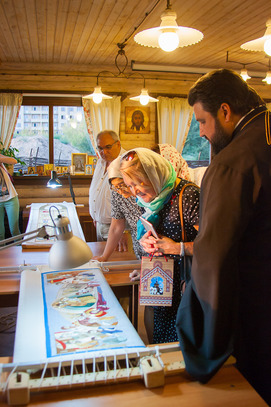 Всем понравилась экскурсия по нашему приходу, а особенное восхищение вызвало посещение ремесленнического центра, где расположились наши мастерские – золотшвейная, иконописная, роспись по батику и мастерская русской тряпичной куклы.