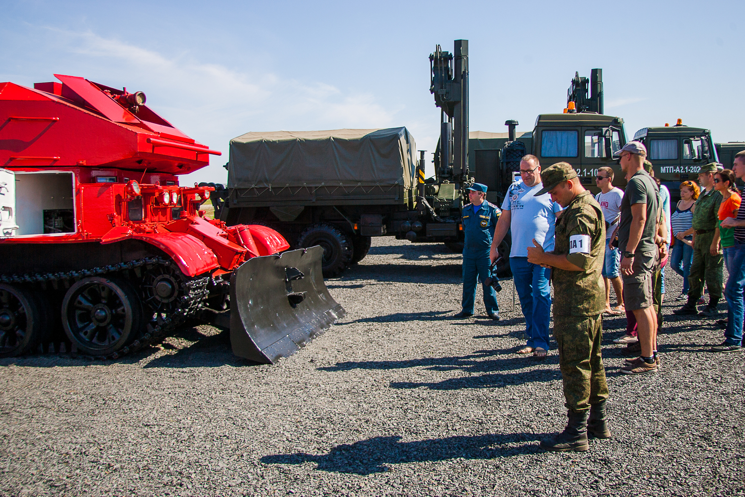 В рамках экспозиции МЧС сильное впечатление произвели современные роботизированные системы борьбы с огнем, а также уникальный пожарный танк, несший дежурство на Байконуре, и впоследствии восстановленный бойцами МЧС. В экспозиции ВКС гости смогли увидеть и наглядно изучить такие машины, как Ми-28, Ка-52, Ми-35, Ми-26. Была представлена обширнейшая выставка ручного вооружения и спецсредств, находящихся в распоряжении ЮВО.