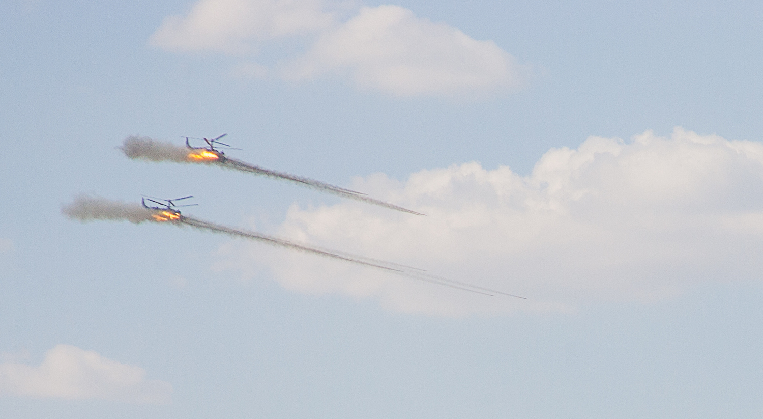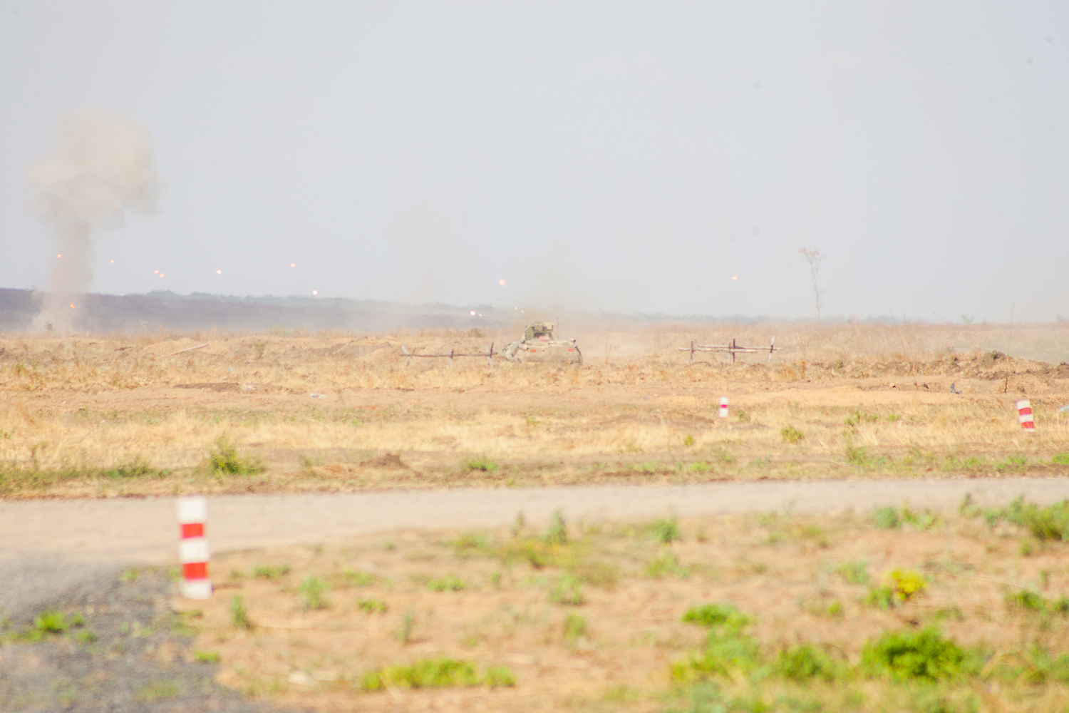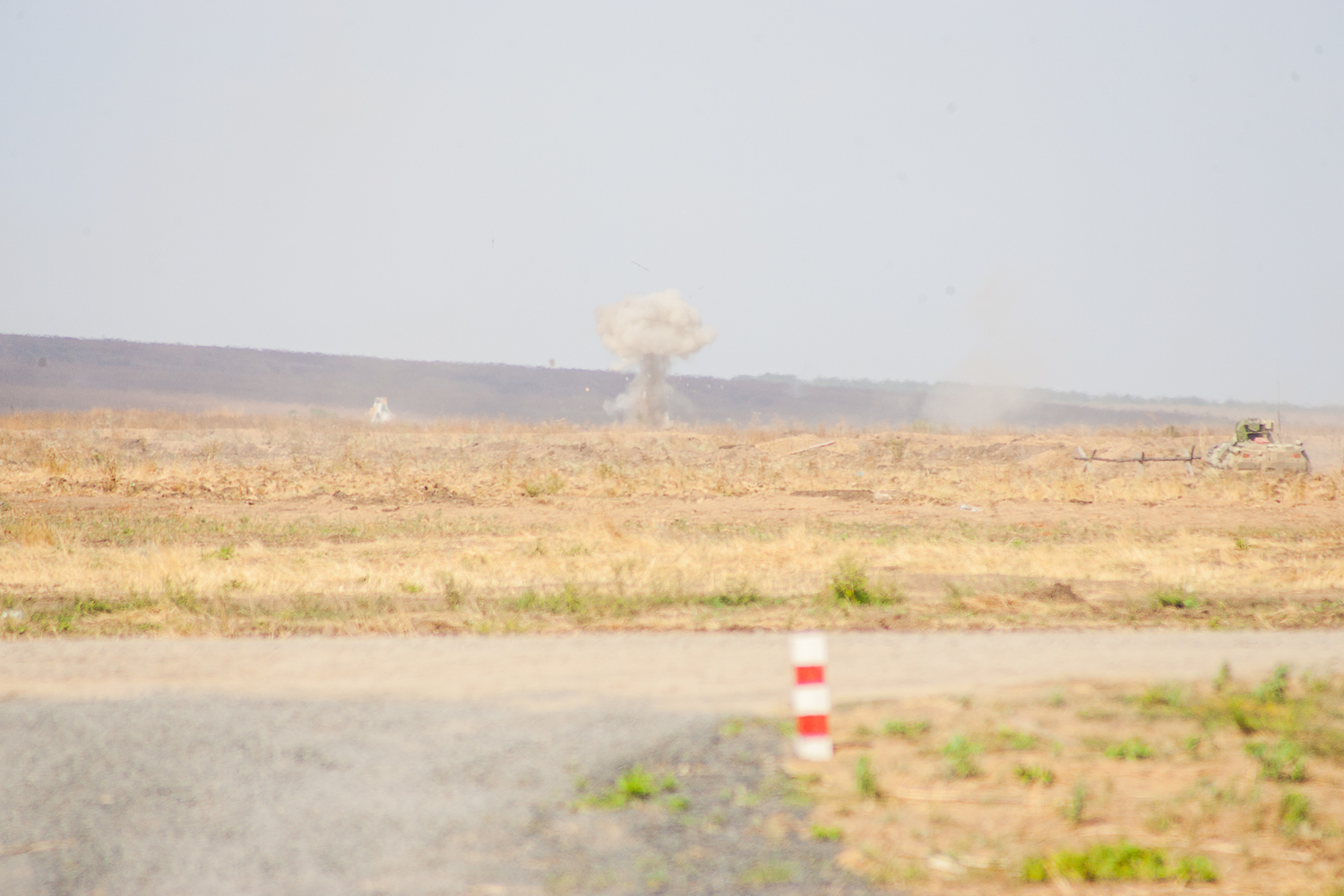 Знакомство с техникой плавно перетекло в динамическую часть, в которой после показательных выступлений частей ВДВ перед зрителями была разыграна сцена боевой антитеррористической операции с использованием инженерных средств, бронетехники, артиллерии, сил ПВО и фронтовой авиации, которая произвела сильное впечатление.