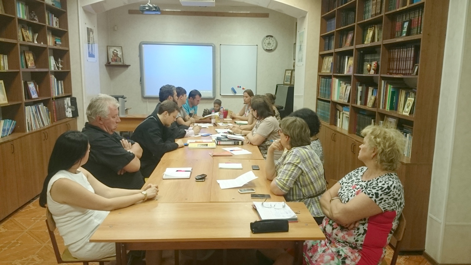 Во время пед.совета учителя и директор воскресной школы Волощук К.В. подвели итоги прошедшему учебному году и наметили планы на новый учебный год. Также преподаватели назначили дату приёма для вновь поступающих детей.