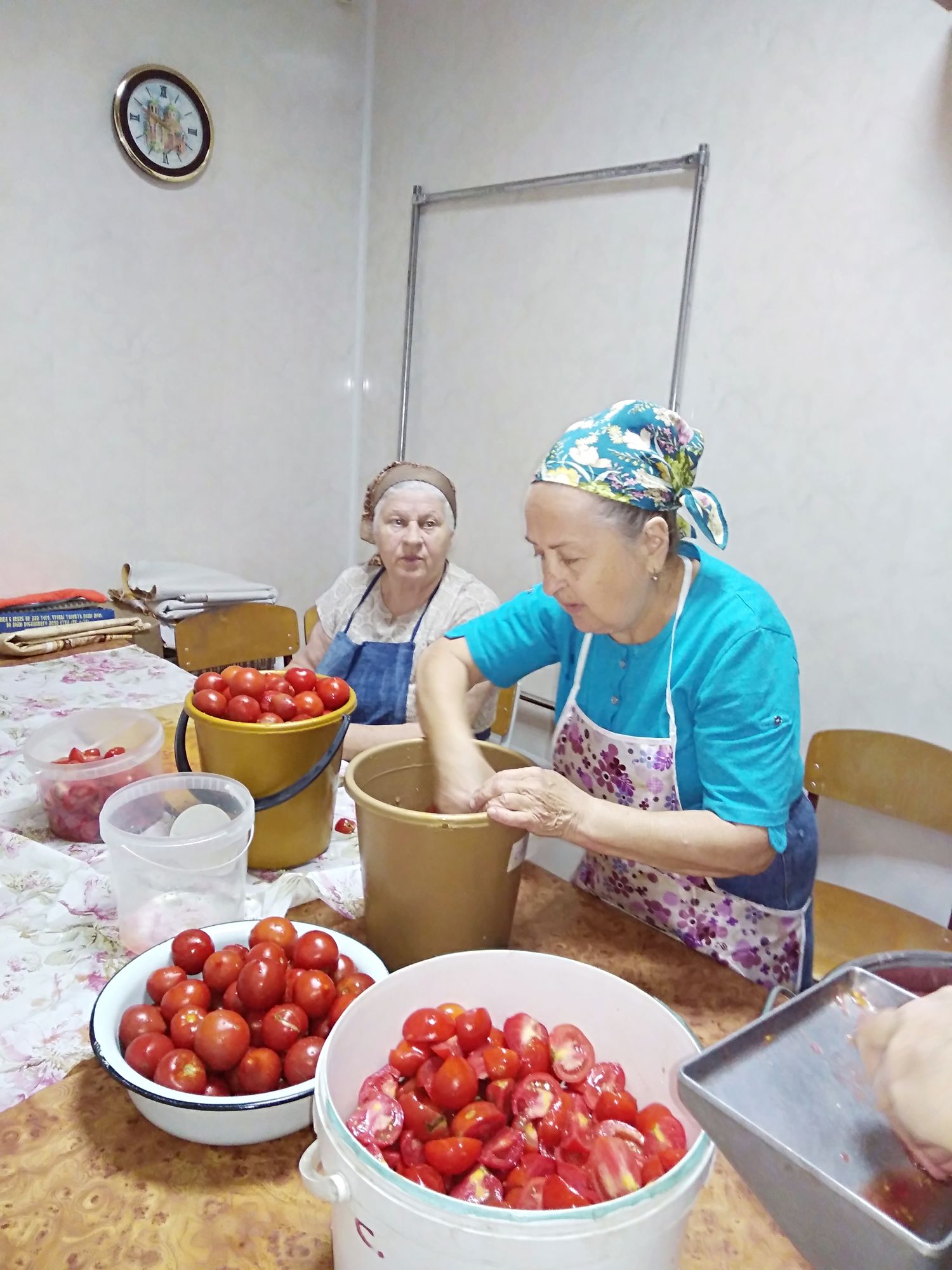 6 сентября 2018 года сестры собрались для консервации помидор и томата. Дружным коллективом в этом году мы закрыли 92 банки огурчиков и 80 банок помидор и томата! Теперь нашему Приходу не страшна лютая зима.