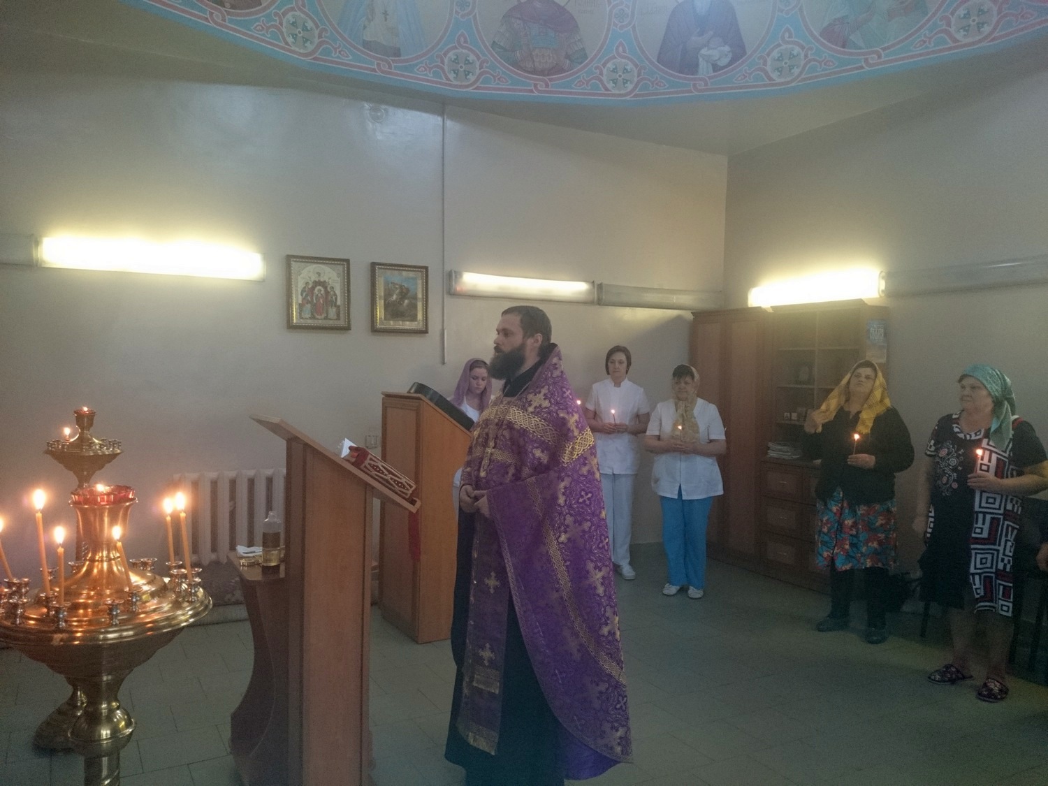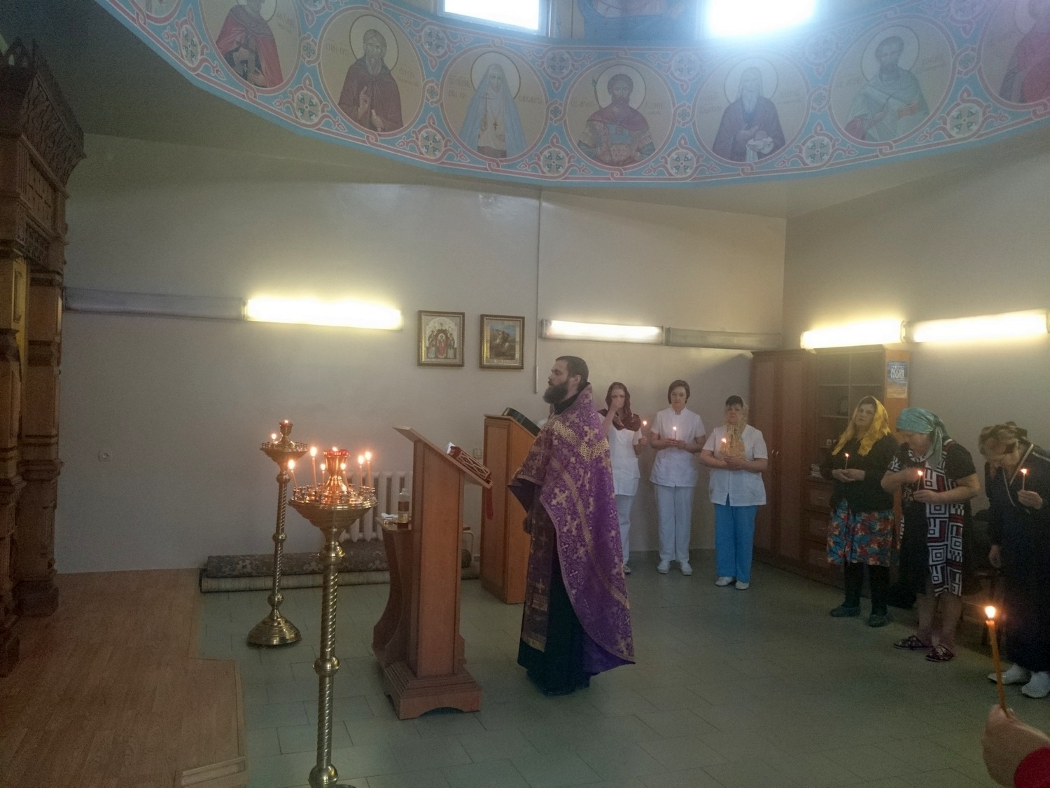 Накануне, 5 апреля, на территории отделения в часовне св. Иоакима и Анны ребята из молодежного клуба прихода Святого Георгия Победоносца раздавали листовки и беседовали с пациентами о том, что такое Таинство Соборования, как правильно исповедоваться, кто может участвовать в Таинстве.