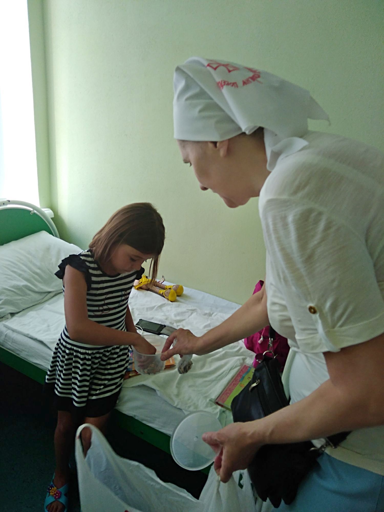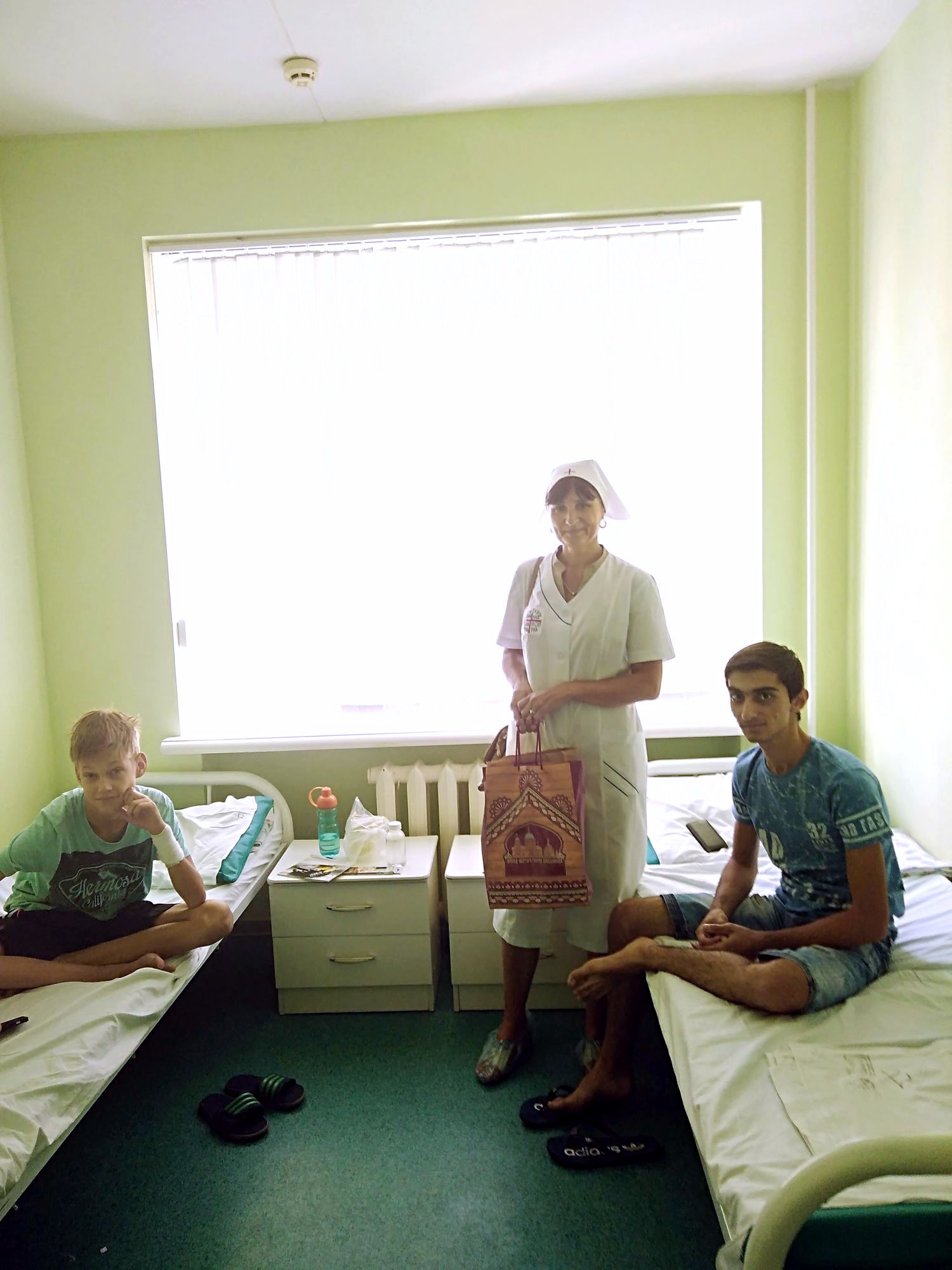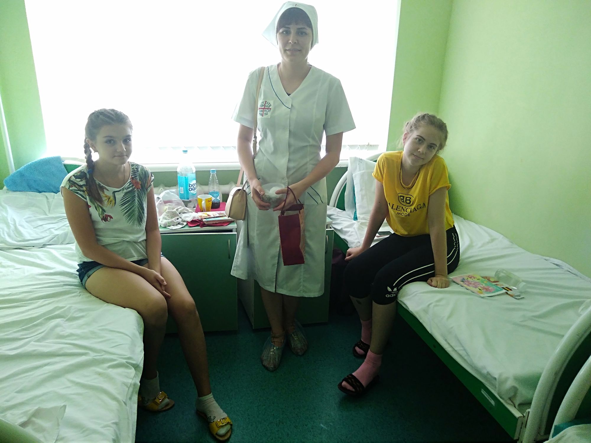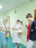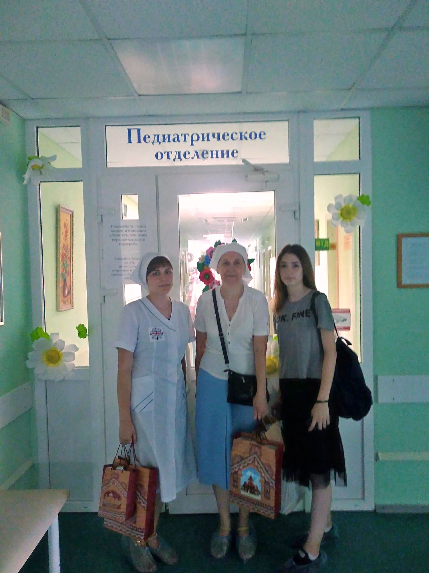 В этот раз наше посещение совпало с проведением на приходе акции «Соберем ребенка в школу». Поэтому каждому ребенку были подарены цветные карандаши, раскраски, детские книжки. Всем маленьким пациентам мы пожелали скорейшего выздоровления, а их родителей пригласили на престольный праздник нашего Прихода, который состоится 12 августа!