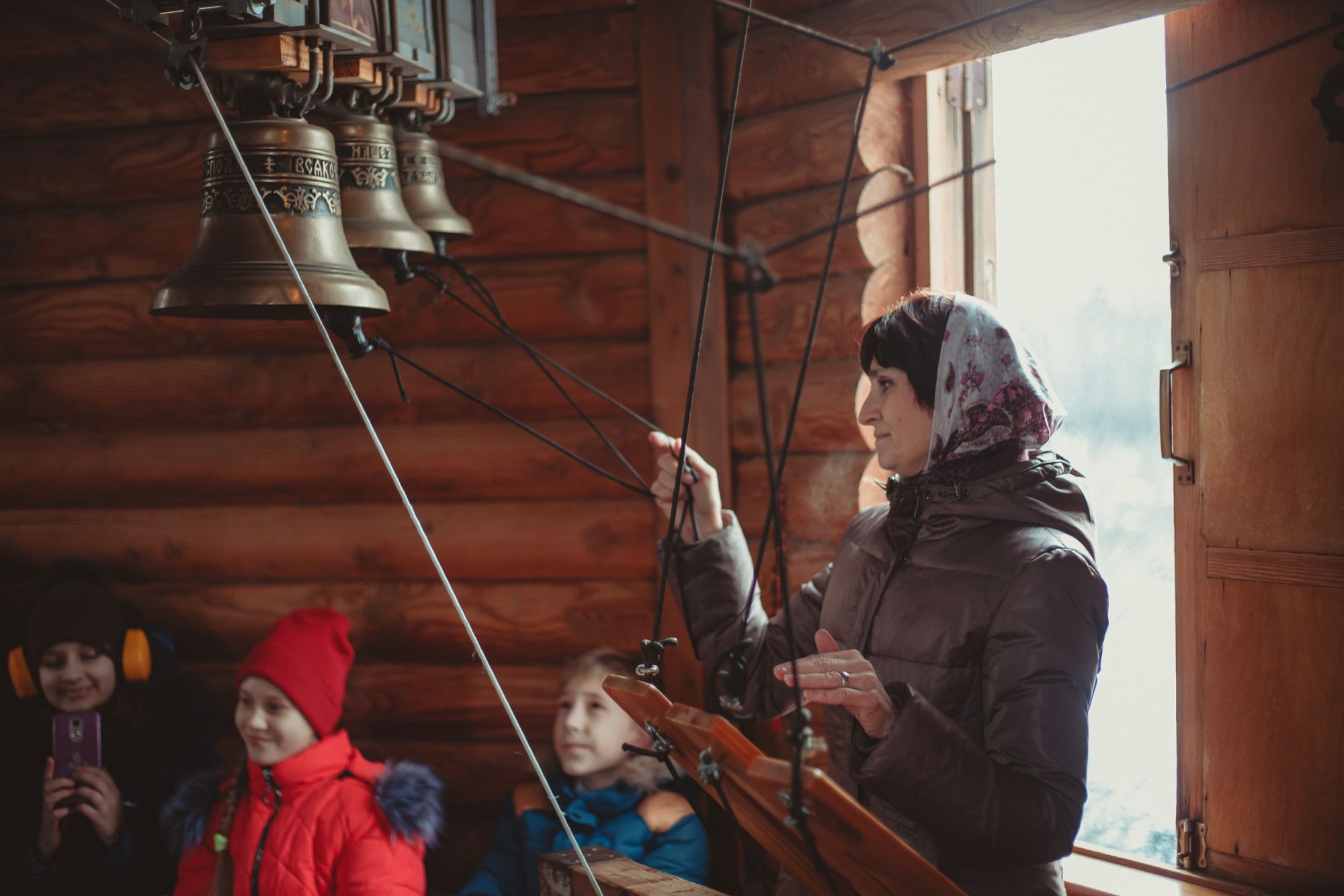 Старшая сестра и звонарь Ольга Терехова рассказала ребятам о колокольном звоне и провела небольшой мастер-класс на колокольне храма Иоанна Воина, во время которого каждый мог попробовать себя в роли звонаря.