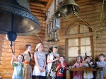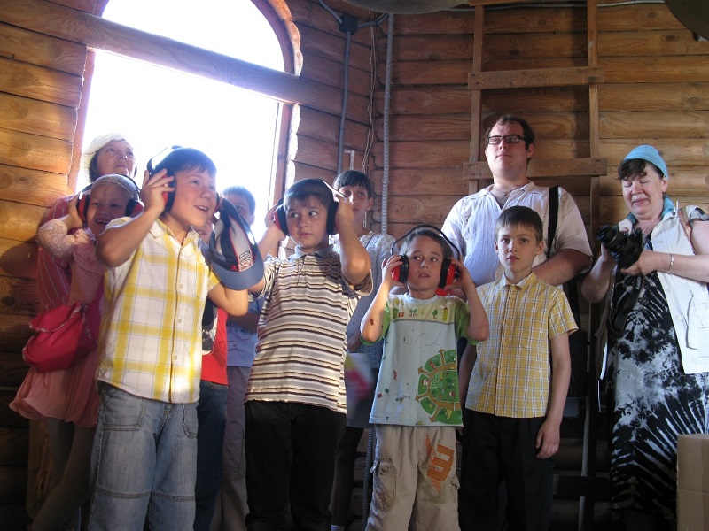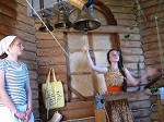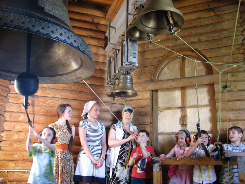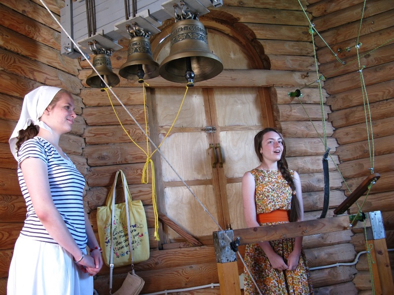 Гостей встретили священник Роман Зимин и представители приходского молодёжного клуба "Благо-Дать" Арина Федосова и София Кобзева. Ребята познакомились с историей прихода святого Георгия Победоносца, малого деревянного храма в честь святого Иоанна Воина. София Кобзева продемонстрировала мастер-класс по колокольному звону, предложив и гостям познакомиться с храмовой звонницей.