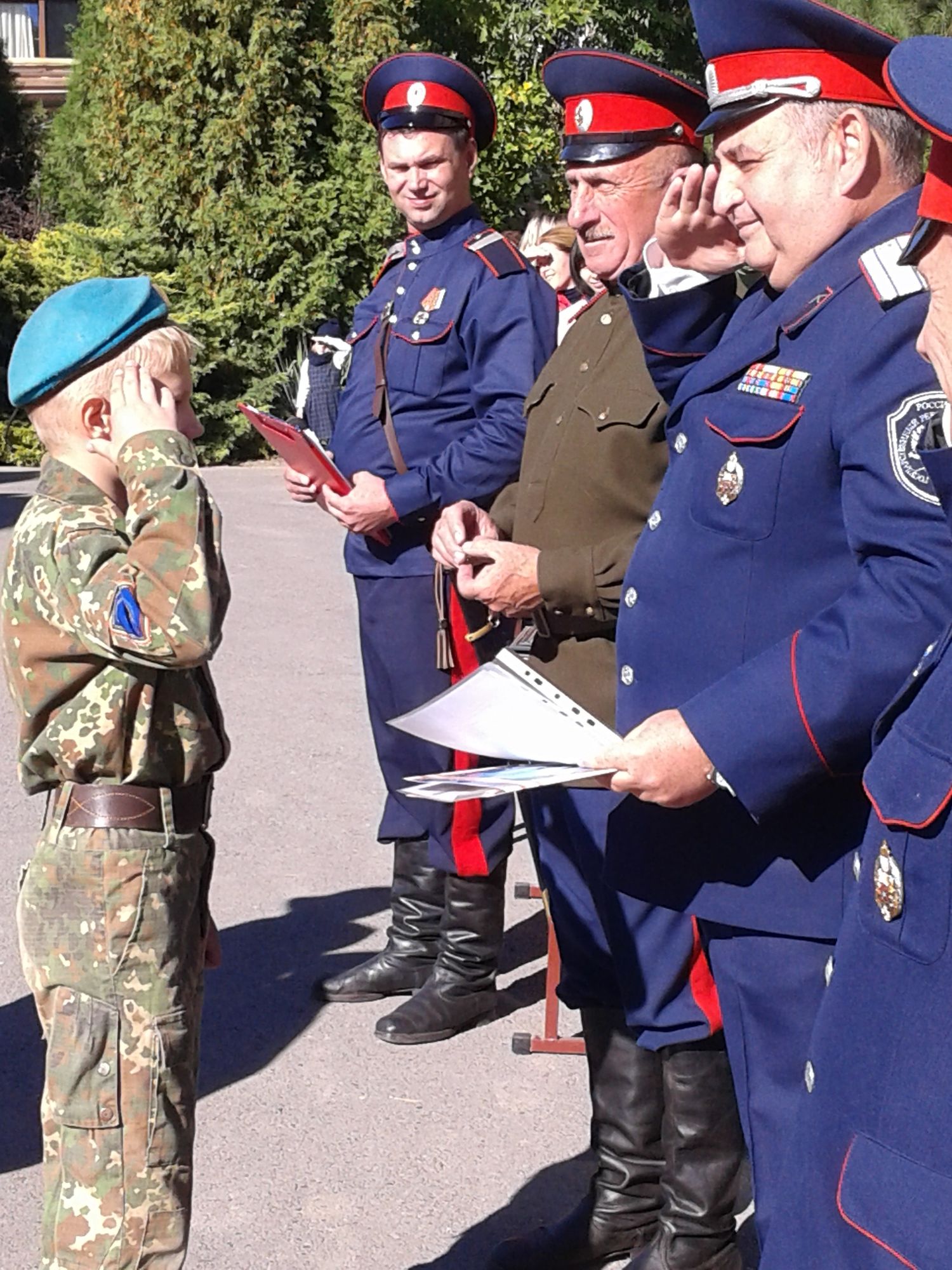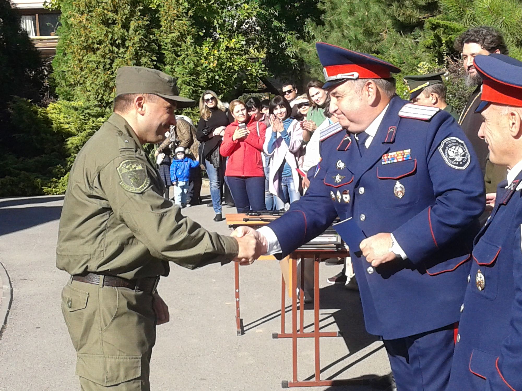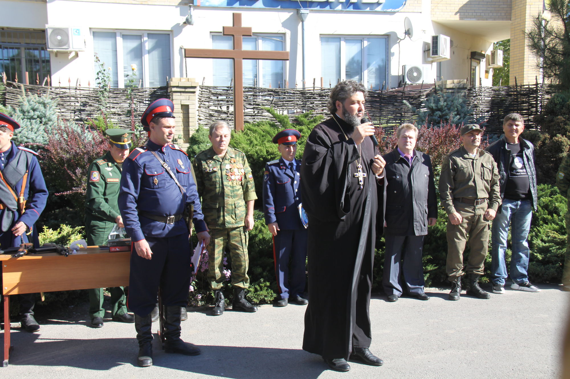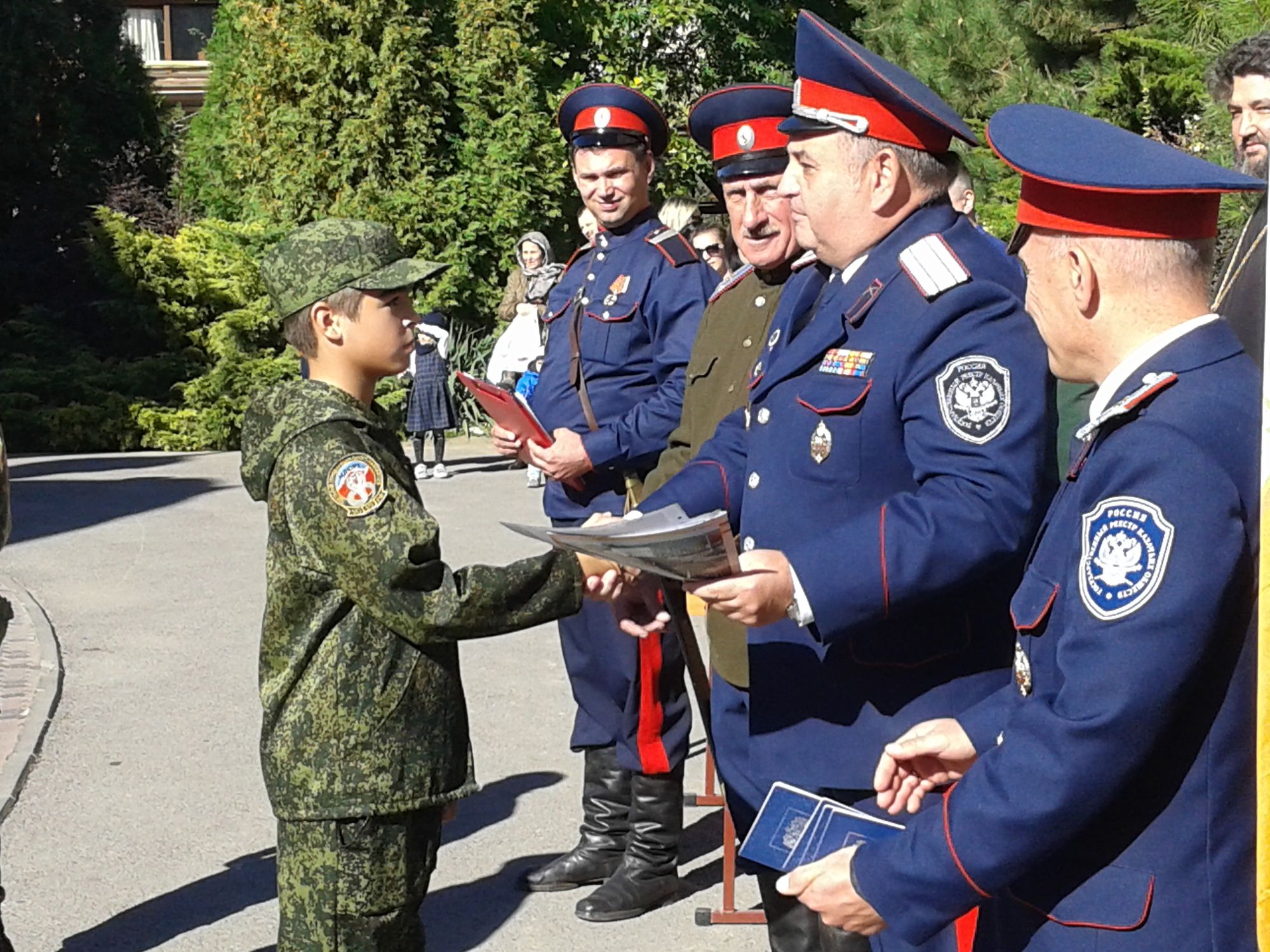 Ко всем собравшимся с напутствующим пасторским словом обратился настоятель прихода протоиерей Валерий Волощук. Первый заместитель (товарищ) атамана Ростовского округа Г.В. Момот довёл приказ атамана округа о присвоении казачьих чинов «вице-приказный» воспитанникам детско-юношеской казачьей сотни Вячеславу Баталову, Глебу Погодину и Никите Хохлачеву. Председатель Ростовского духовно-патриотического центра сотник Чуцков В.И. вручил казачатам выписки из приказа и установленные знаки отличия на погоны.