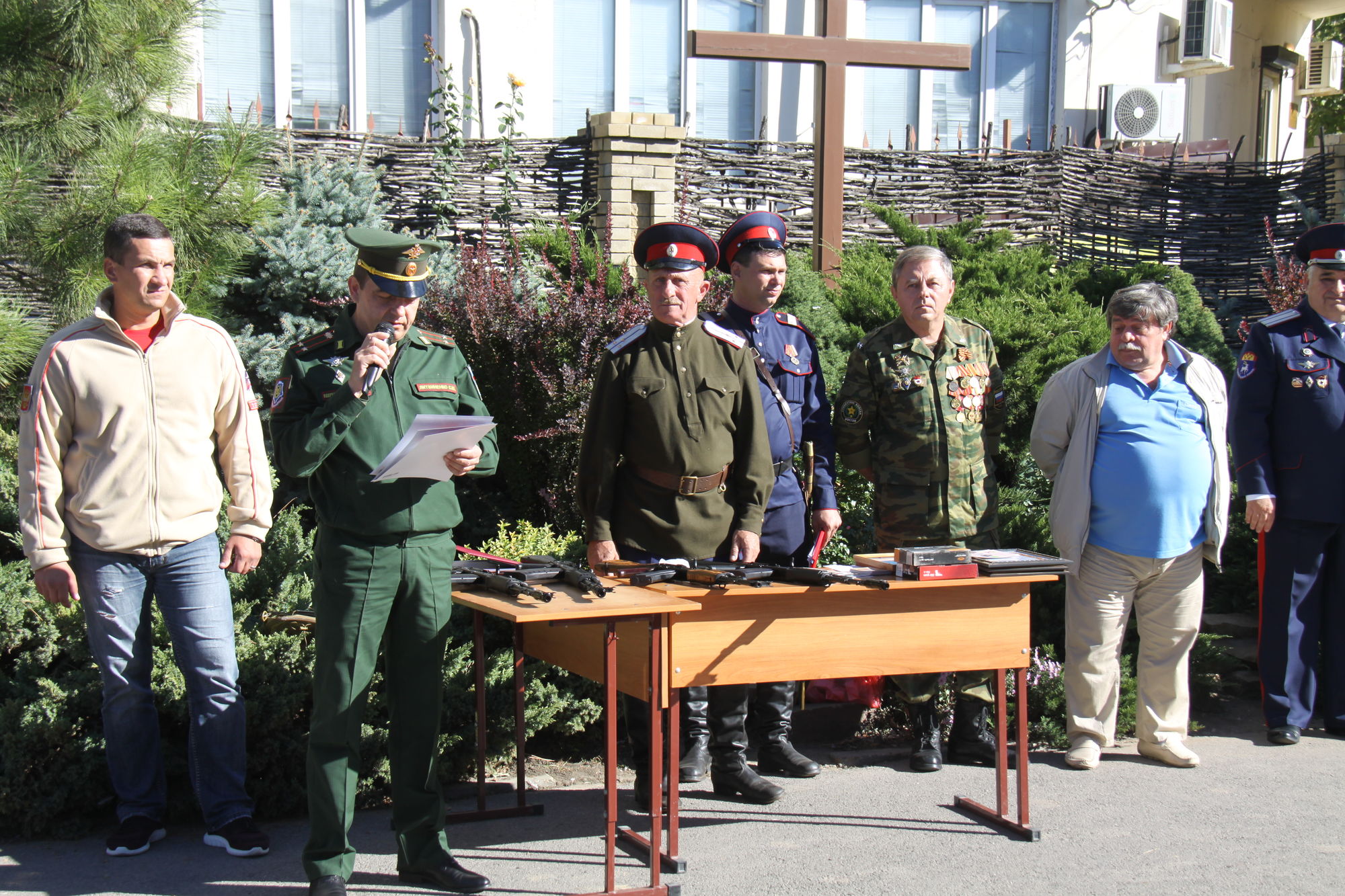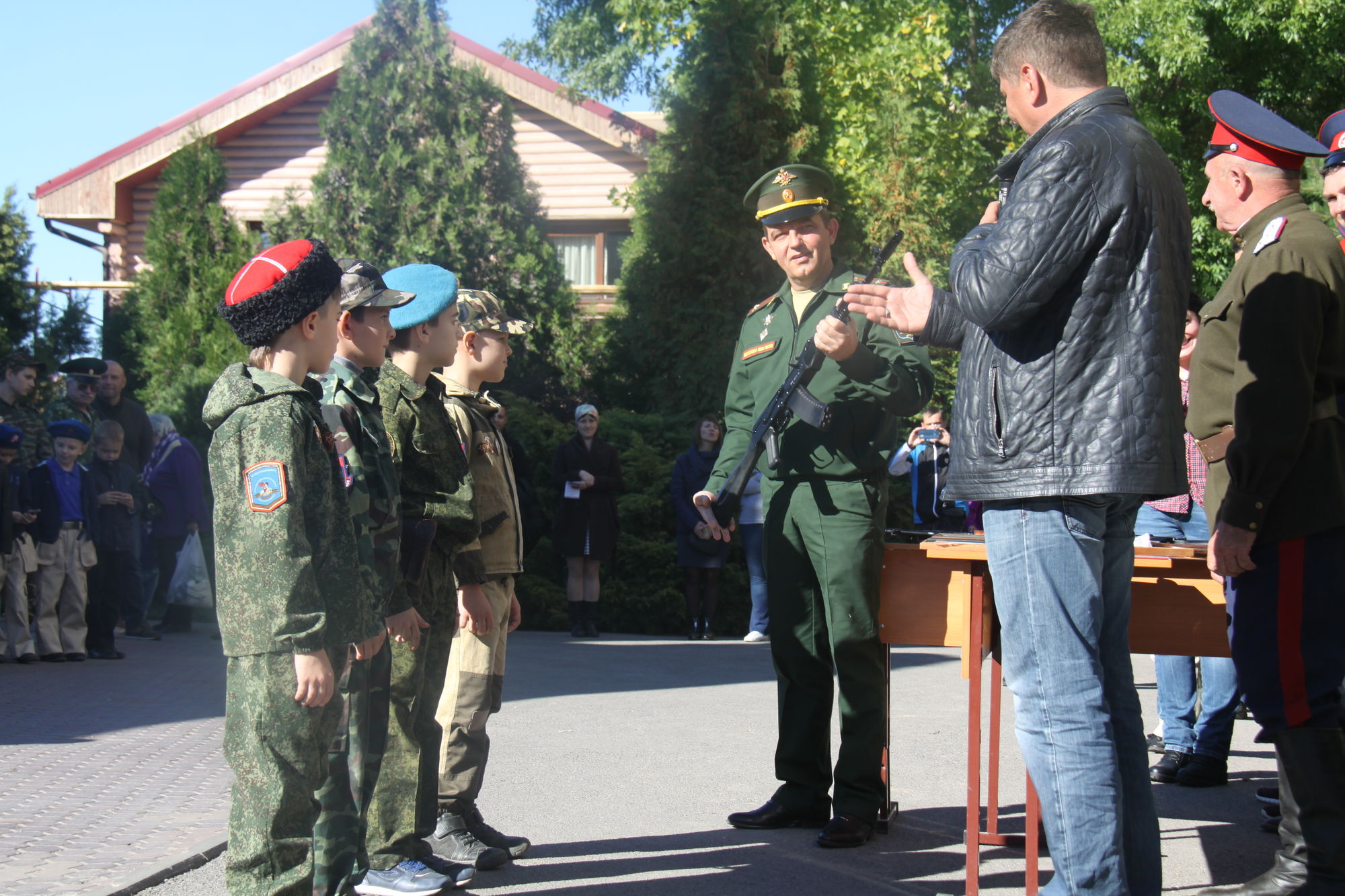 Ветеранами вооруженных сил, членами попечительского совета Алимовым Александром Николаевичем и Шашлюк Юрием Алексеевичем для занятий по начальной военной подготовке были переданы юнармейцам четыре макета автомата Калашникова и два макета пистолета Макарова.