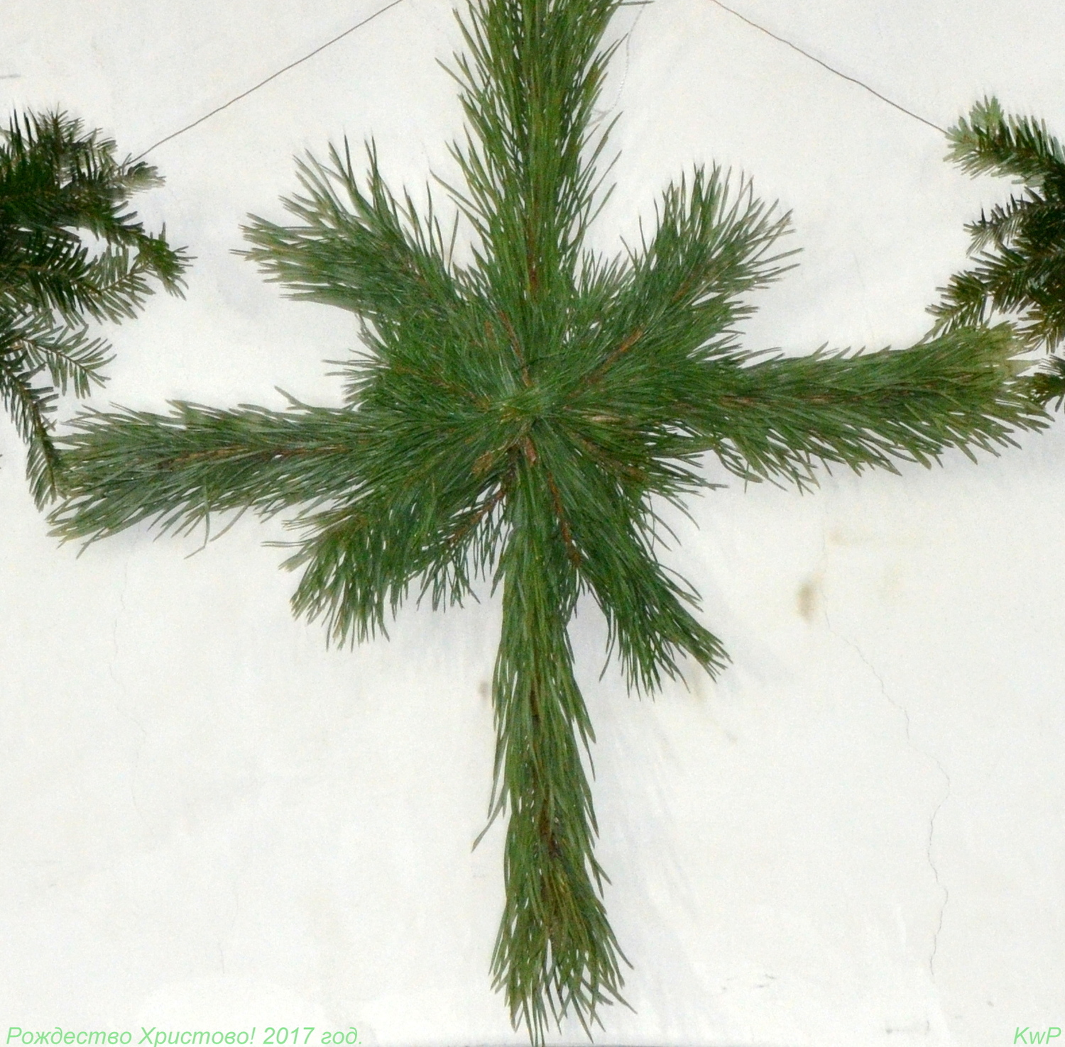 Идея оформления принадлежит руководителю мастерской и школы флористики — Букиной Валерии. В оформлении использованы: живая хвоя пихты и сосны, шишки, мох, лоза виноградная, дубовые листья, сосновые иголки, искусственный мех. Весь природный материал собран руками прихожан и жертвователей.