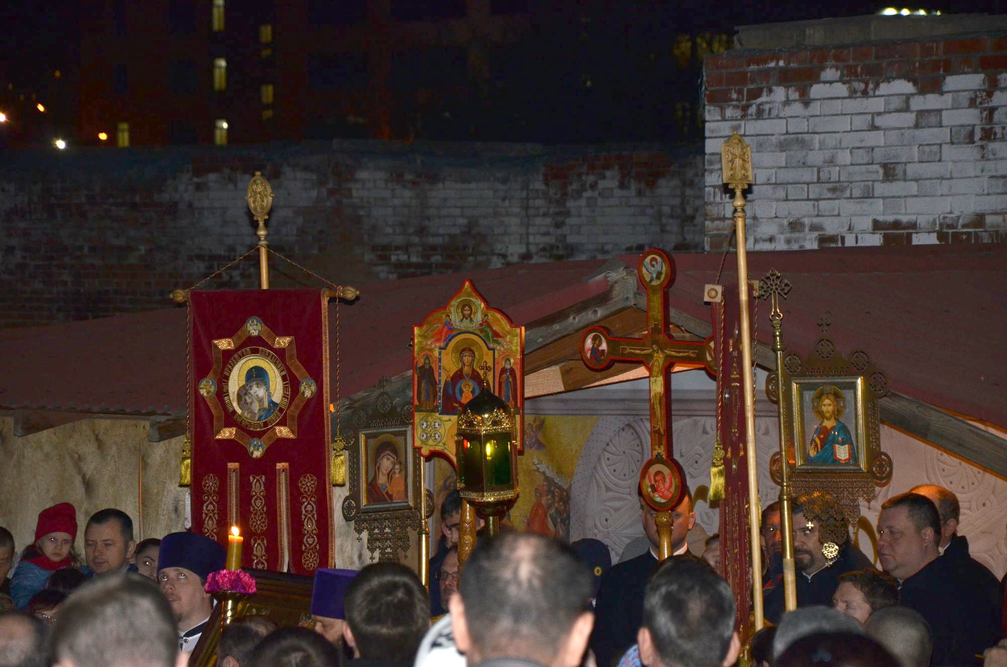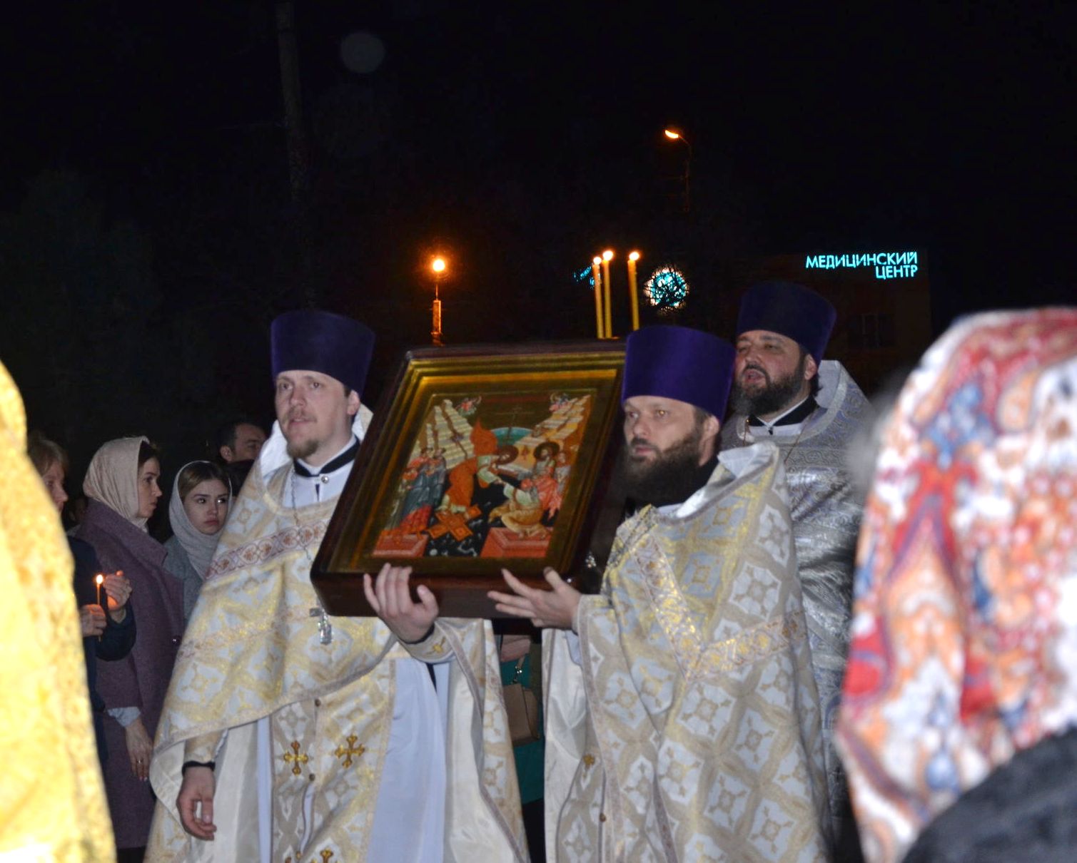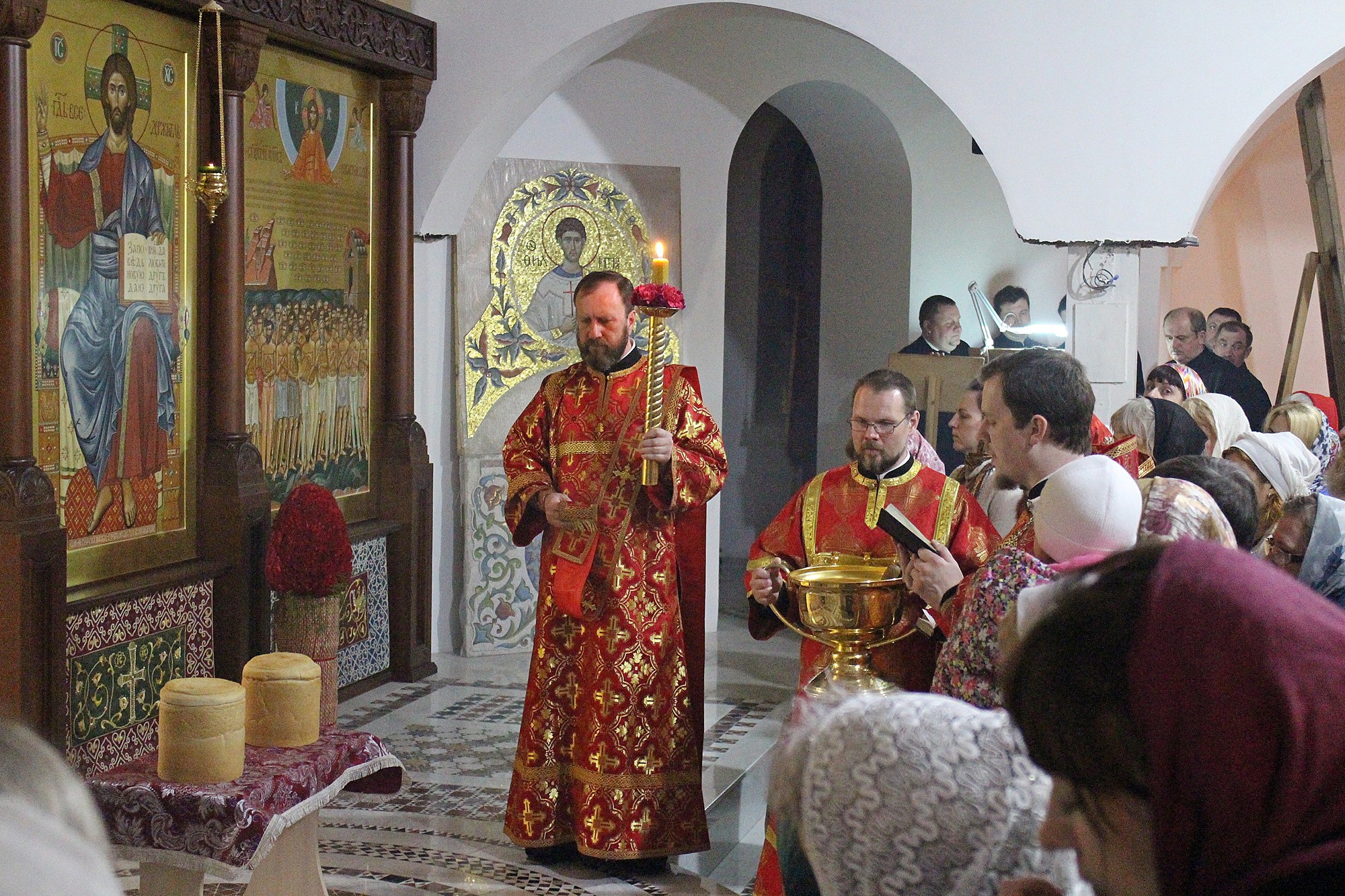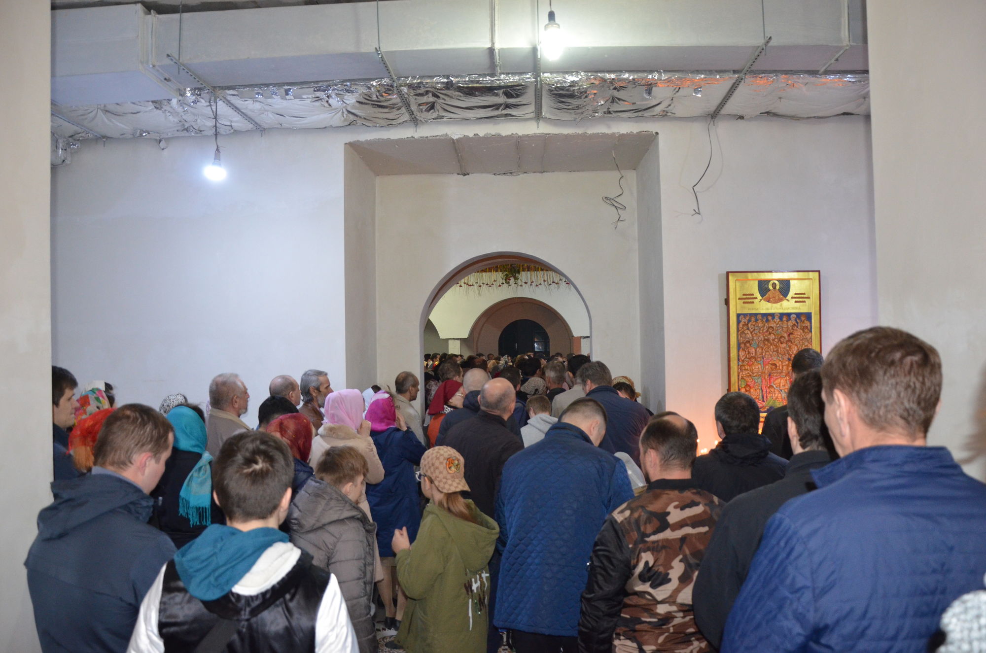 На литургии все причастились Святых Христовых Тайн. Настоятель храма протоиерей Валерий Волощук в своей проповеди поздравил всех с праздником, подчеркнул, что Воскресение Христово - это праздник для всех: постившихся и непостившихся, трудившихся и ленивых, богатых и убогих. В этом и есть глубина нашей Веры. Все во Христе едины. В настоящее время мы очень часто является свидетелями разного рода разделений, разобщений, ссор. Некоторые либеральные воззрения говорят, что Вера устарела, что устарели принципы, которыми веками создавалась Русь. Нужно найти что-то новенькое, необычное, чтобы нас соединить. Это безумие. Христос говорит в Священном Писании, что Он всегда тот же. В нынешнее время много информации, но многовековой опыт народа, государства имеет бо́льшую силу, чем просто информация. Будем идти путем проторенным, который явил нам множество святых людей: и прославленных, и тех, которых мы не до конца знаем по именам, но их было много не только в апостольские времена, но и во времена совсем близкие к нам. Мы сегодня слышали замечательные слова нашего Митрополита о новомучениках и исповедниках, о Святых Царственных Страстотерпцах — семье, которая несла на себе особую миссию — хранить Веру, сохранять Отечество и вести народ ко Христу. Они очень близки к нашему времени. Очень часто мы забываем свою историю. Если каждый возьмет свою фамилию и посмотрит в сонме тех новомучеников и тысяч людей, которые были замучены за Веру в нашем отечестве за последние 100 лет, то наверняка найдет однофамильцев или даже близких людей своего рода, которые прославились во святых. Так глубока и свята наша Церковь, что мы святость можем увидеть и дотянуться до нее протянутой рукой.