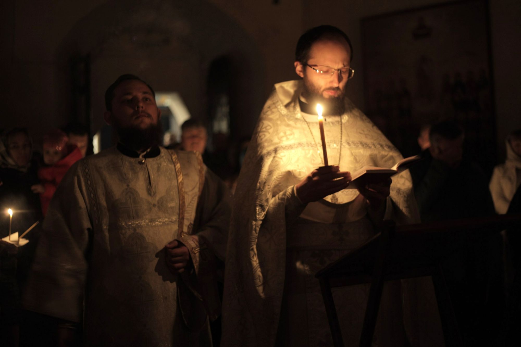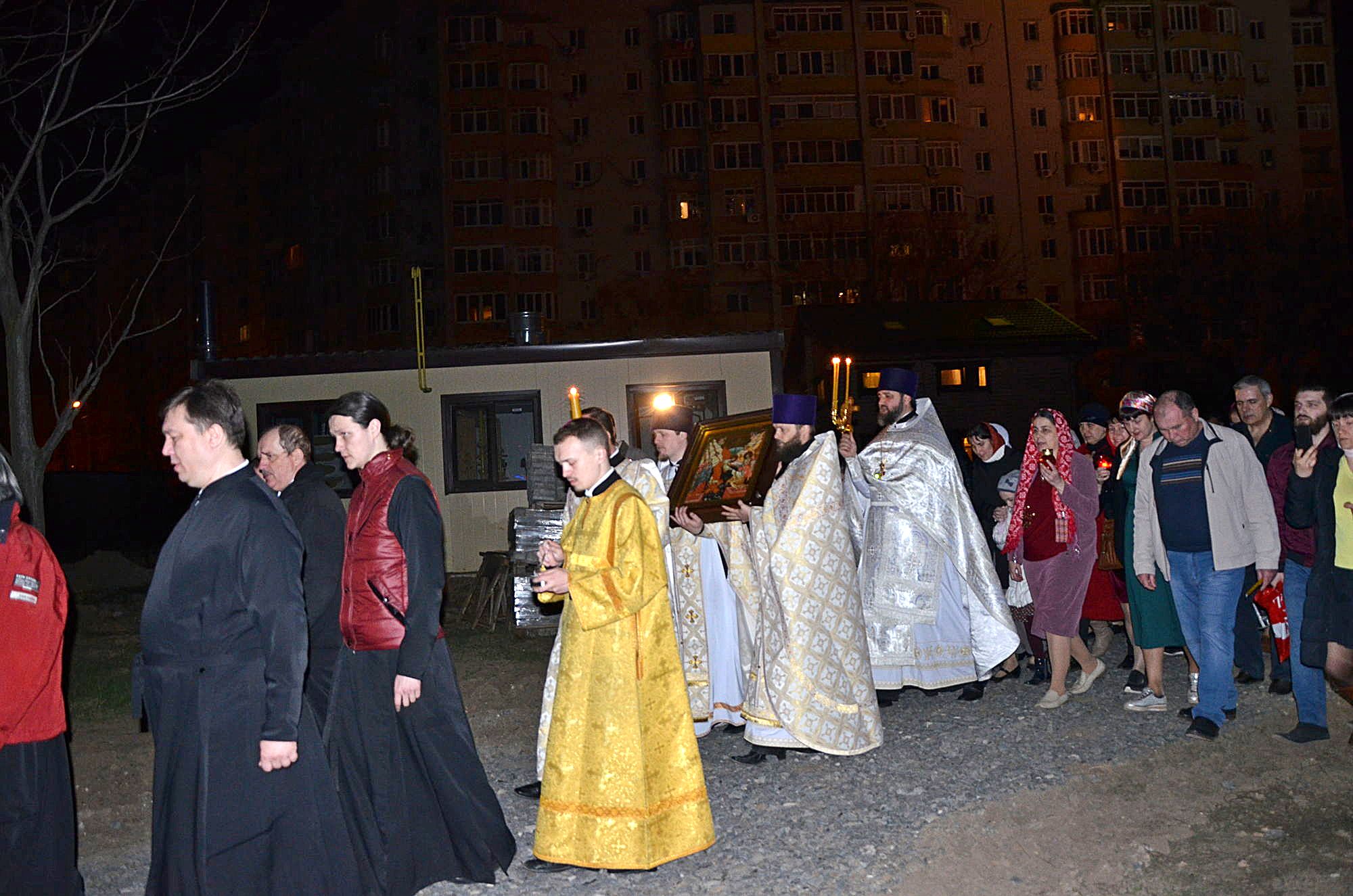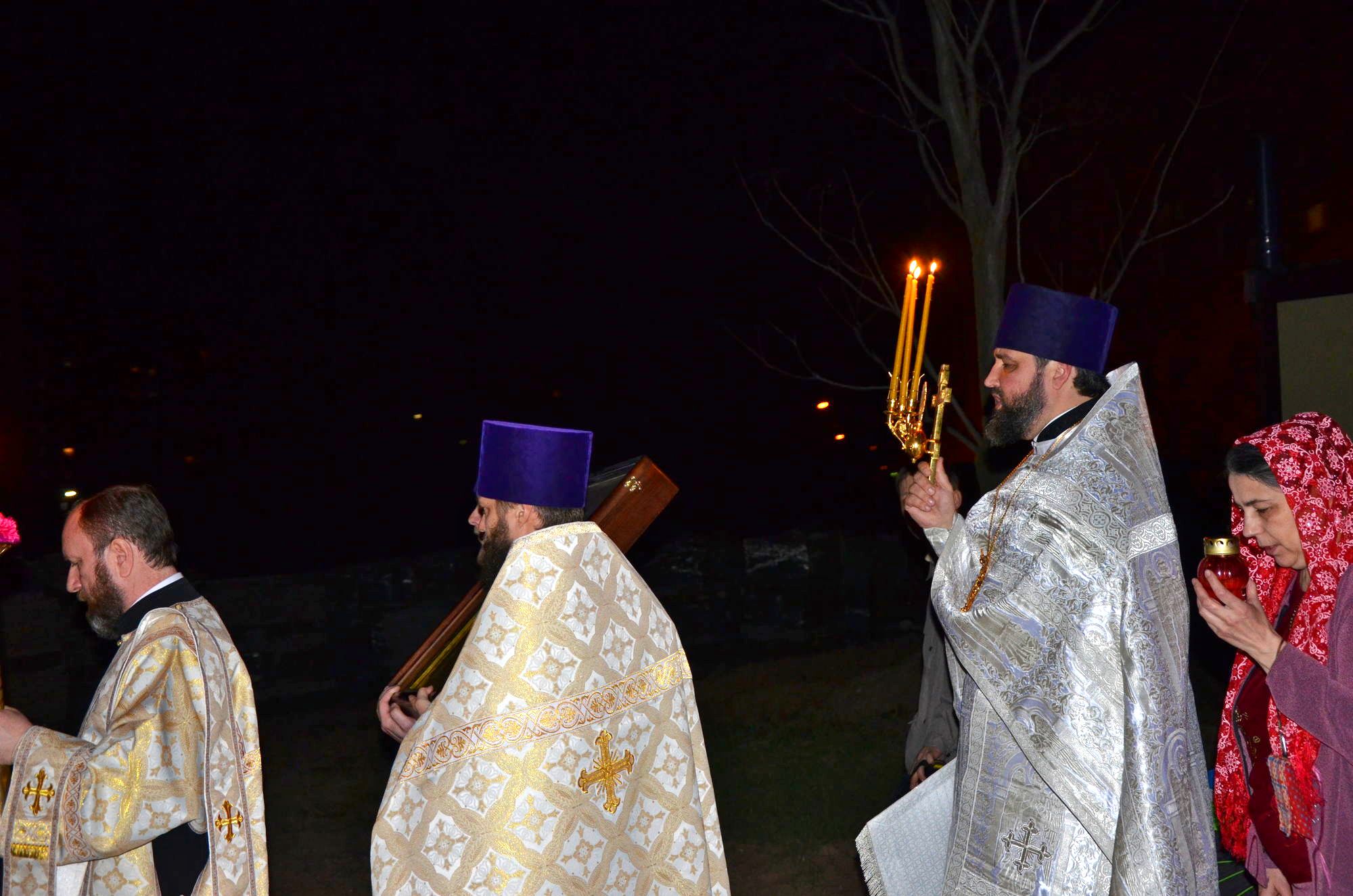 Приход Святого Георгия Победоносца встретил долгожданный праздник — Воскресение Господа и Спаса нашего Иисуса Христа! Собравшиеся в храме 40 Севастийских мучеников прихожане были восхищены цветочным убранством храма, мозаичными полами в стиле косматеско XII века и кесонными потолками из деревянного массива. С 16 часов в храме Иоанна Воина читали Деяния святых апостолов, а за пол часа до полуночи началась Пасхальная полунощница, на которой в алтарь занесли Плащаницу. И наш хор сначала тихо, а потом все громче и громче стал петь стихиру "Воскресение Твое Христе Спасе, Ангели поют на небесех, и нас на земли сподоби, чистым сердцем, Тебе славити." Под радостное пение духовенство и прихожане вышли из храма на Крестный ход. "Христос Воскресе" — возглашали батюшки, "Воистину Воскресе" — стройным хором отвечали все прихожане.