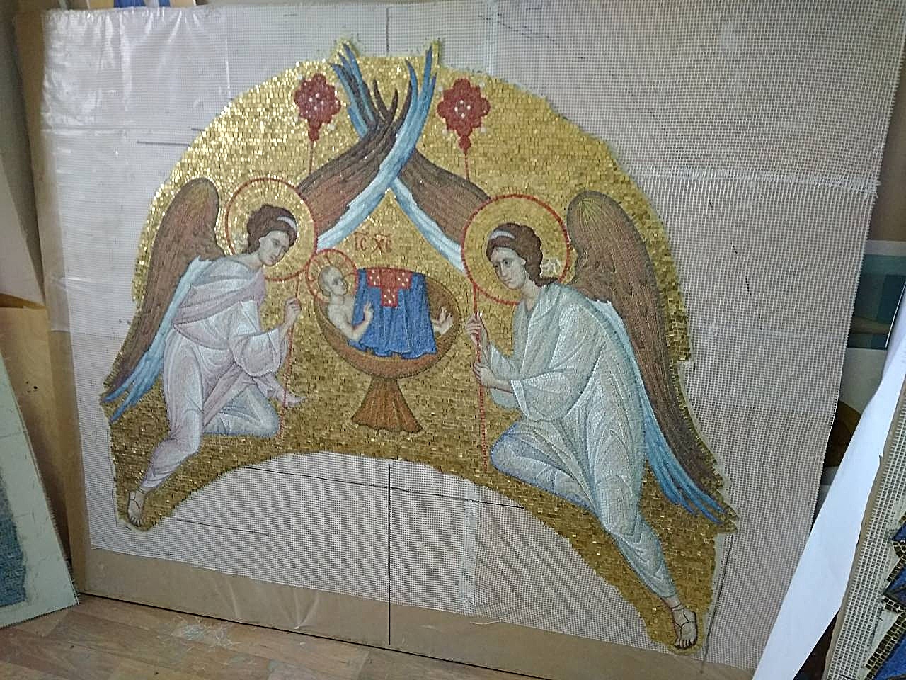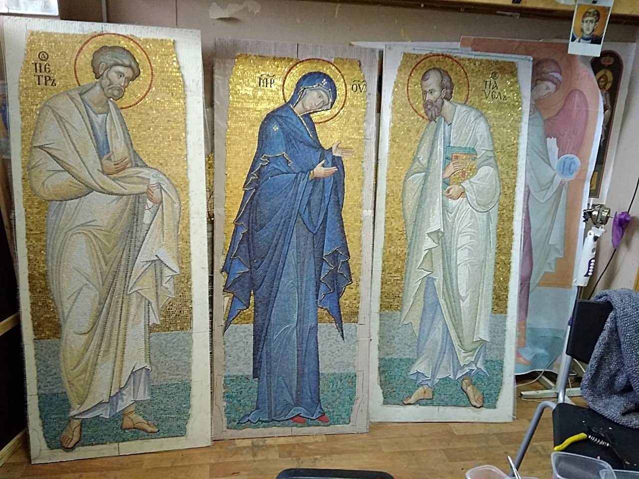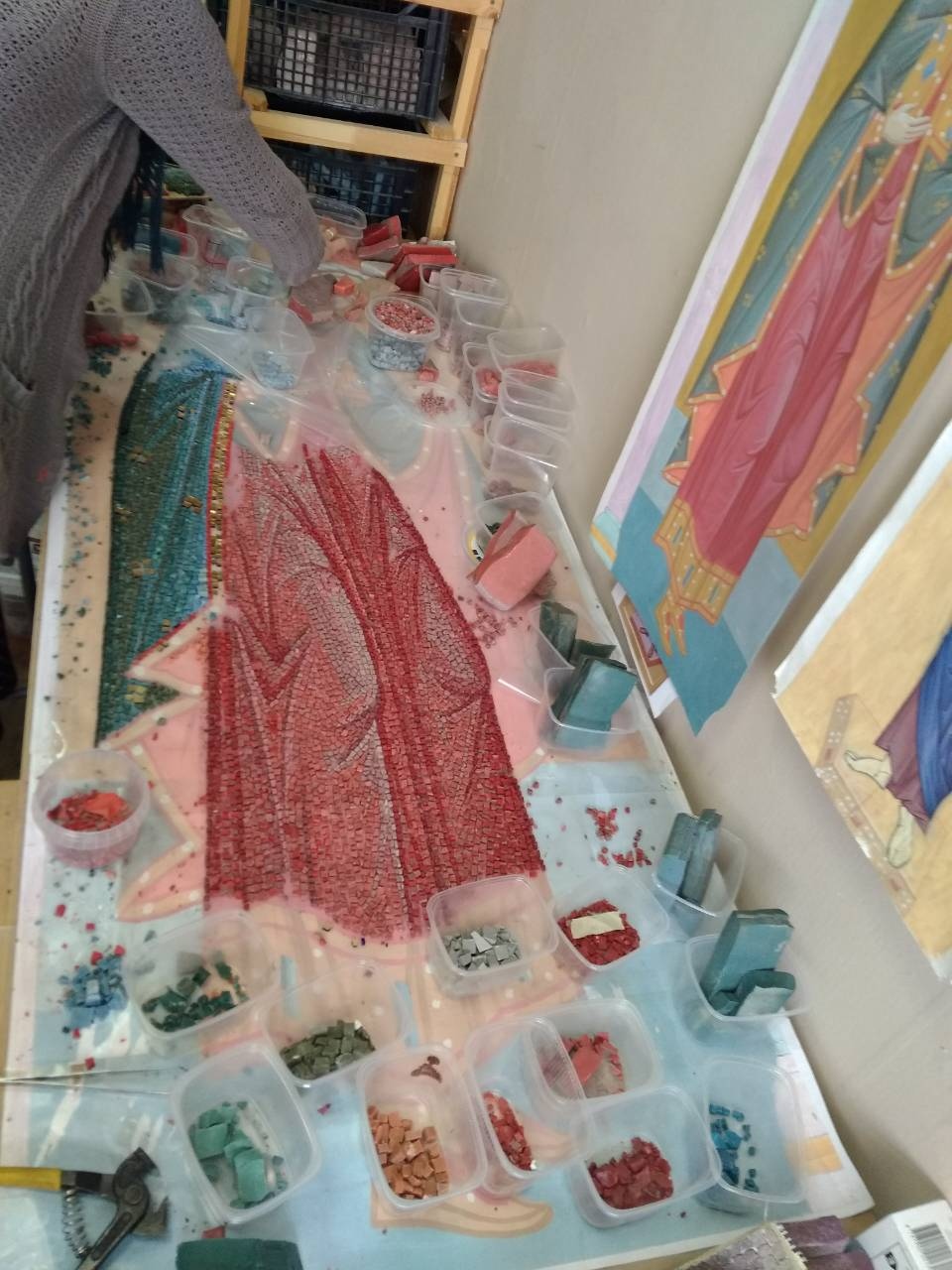 Продолжается работа над мозаичным иконостасом для строящегося храма Георгия Победоносца. Просим молитв