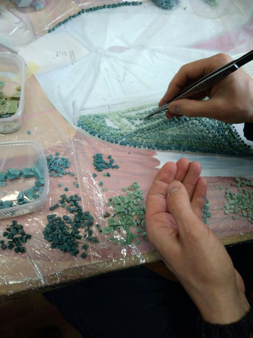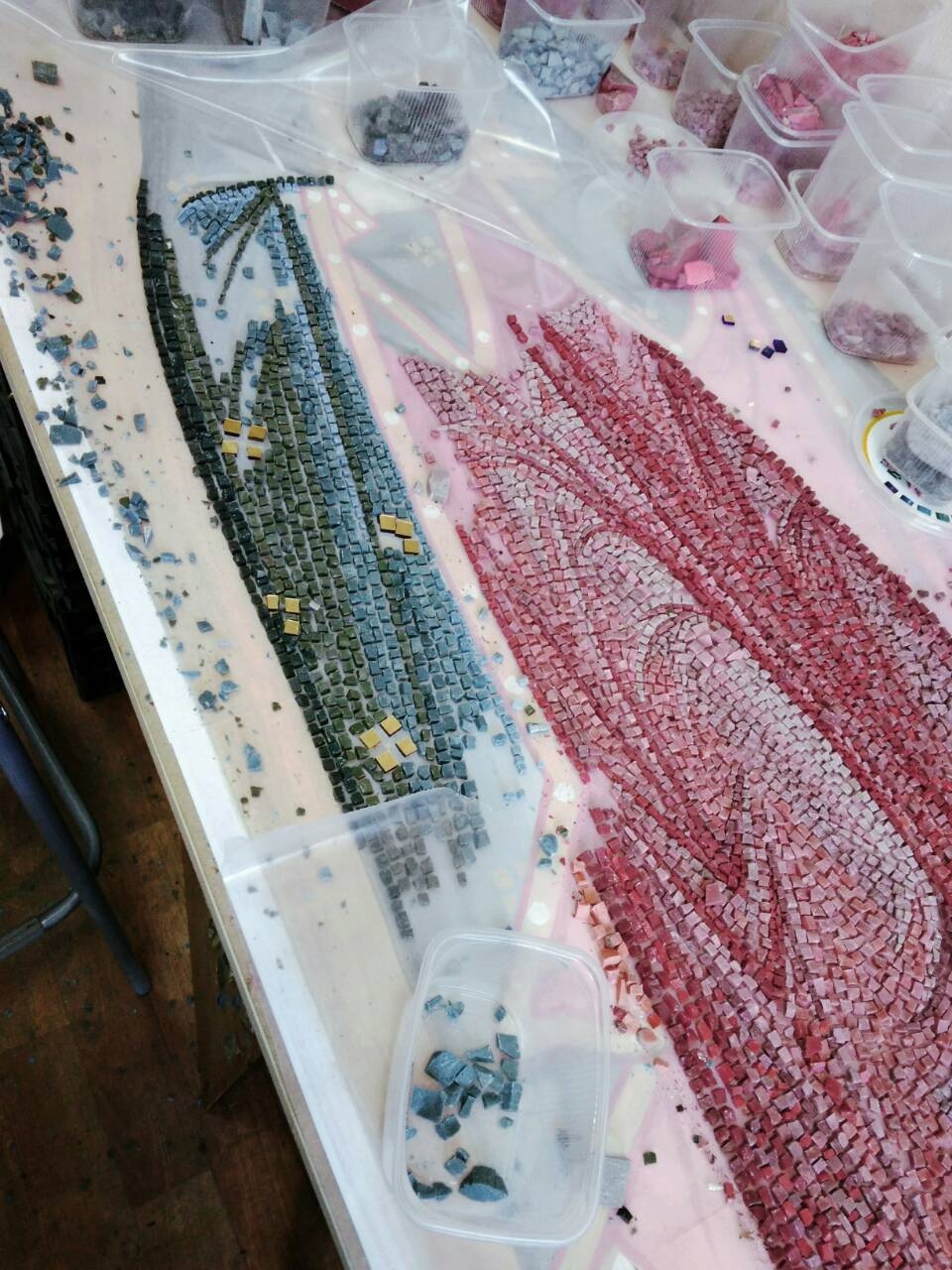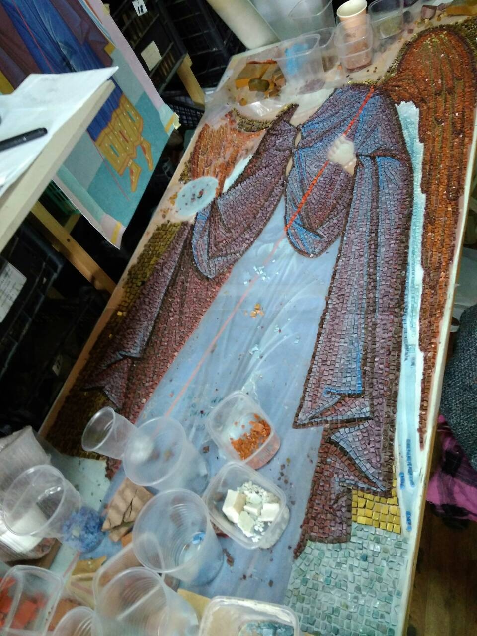Продолжается работа над мозаичным иконостасом для строящегося храма Георгия Победоносца. Просим молитв