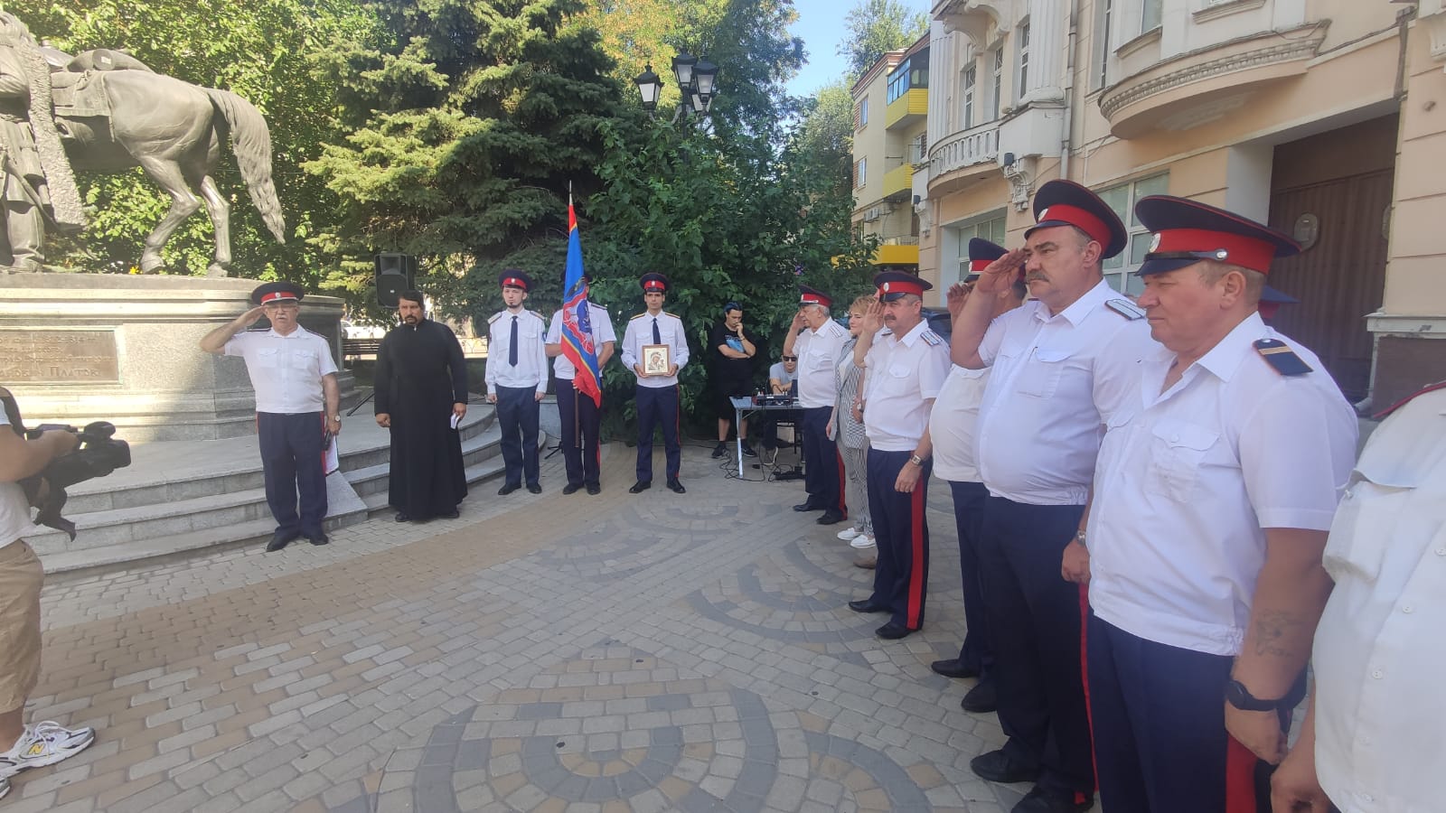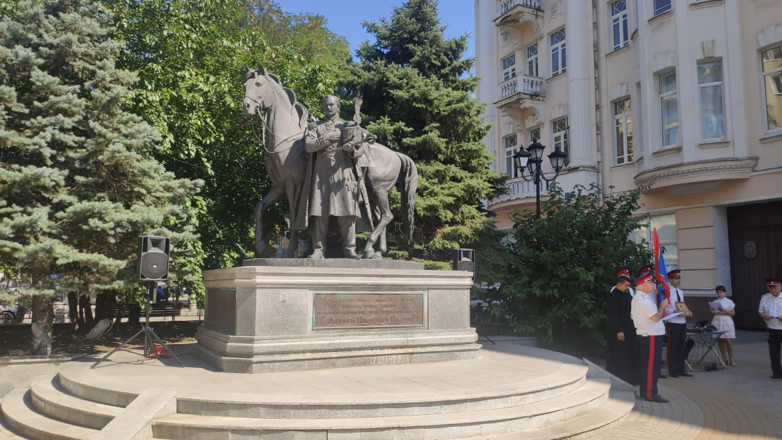 8 августа 2023 года, в день рождения великого Атамана Платова, представители Ростовского духовно-патриотического центра Святого Георгия Победоносца совместно с Городским казачьим обществом "РОСТОВСКОЕ" приняли участие в возложении цветов к памятнику Атамана Платова на ул. Большая Садовая.