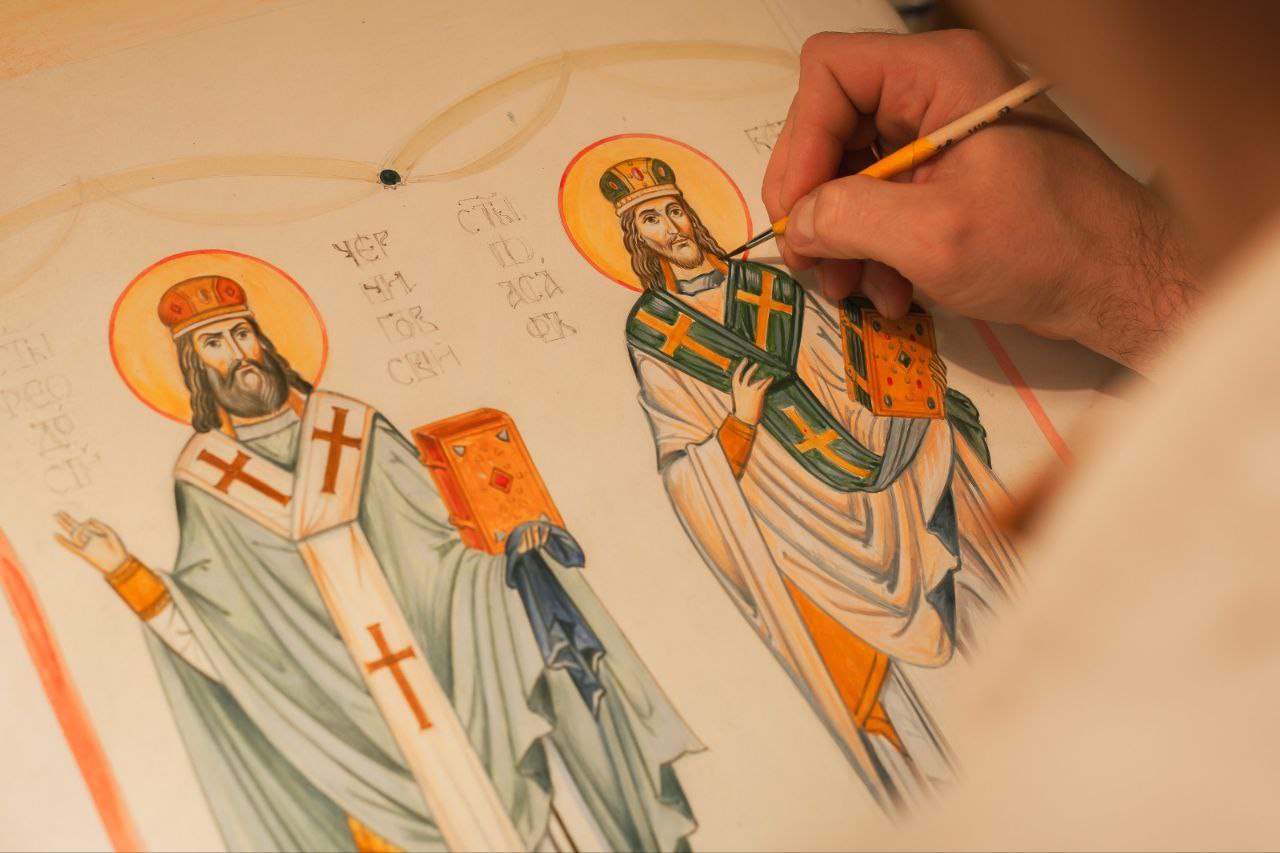 Наши иконописцы трудятся над эскизами и росписью алтаря храма Сорока мучеников Севастийских.