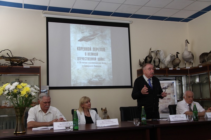 6–7 июня 2013 года представители Ростовского духовно-патриотического центра святого Георгия Победоносца приняли участие в Международной научной конференции "Коренной перелом в Великой Отечественной войне". Конференция была организована Южным научным центром РАН и стала одним из самых представительных научных форумов, приуроченных к 70-летию освобождения Дона и Северного Кавказа от фашистских захватчиков. Мероприятие собрало военных историков с Юга России, из Москвы и других городов нашей страны, а также зарубежных гостей из Украины и Израиля. Почетными гостями конференции стали ветераны Великой Отечественной войны. На конференции с докладами выступили представители Духовно-патриотического центра нашего прихода: председатель центра Виктор Иванович Чуцков, директор Донского военно-исторического музея Иван Юрьевич Стреляев, руководитель поискового объединения "Миус-фронт" Андрей Юрьевич Кудряков, известный военный историк, научный сотрудник ЮНЦ РАН Владимир Иванович Афанасенко. Виктор Чуцков, являющийся также представителем РОСВОЕНЦЕНТРа в Ростовской области, в своем выступлении рассказал собравшимся о работе общественных патриотических организаций по увековечиванию памяти воинов, погибших в годы Великой Отечественной войны.