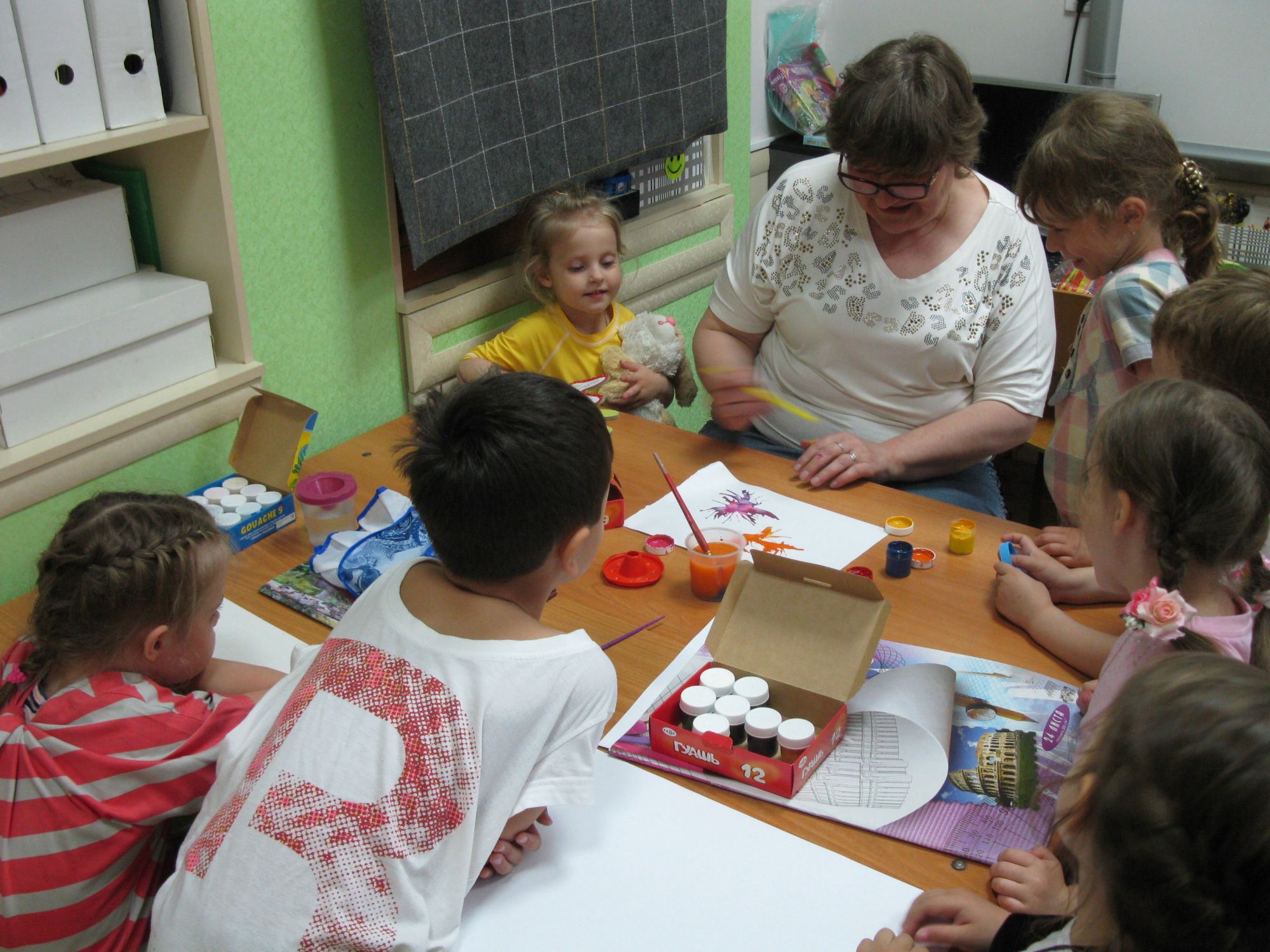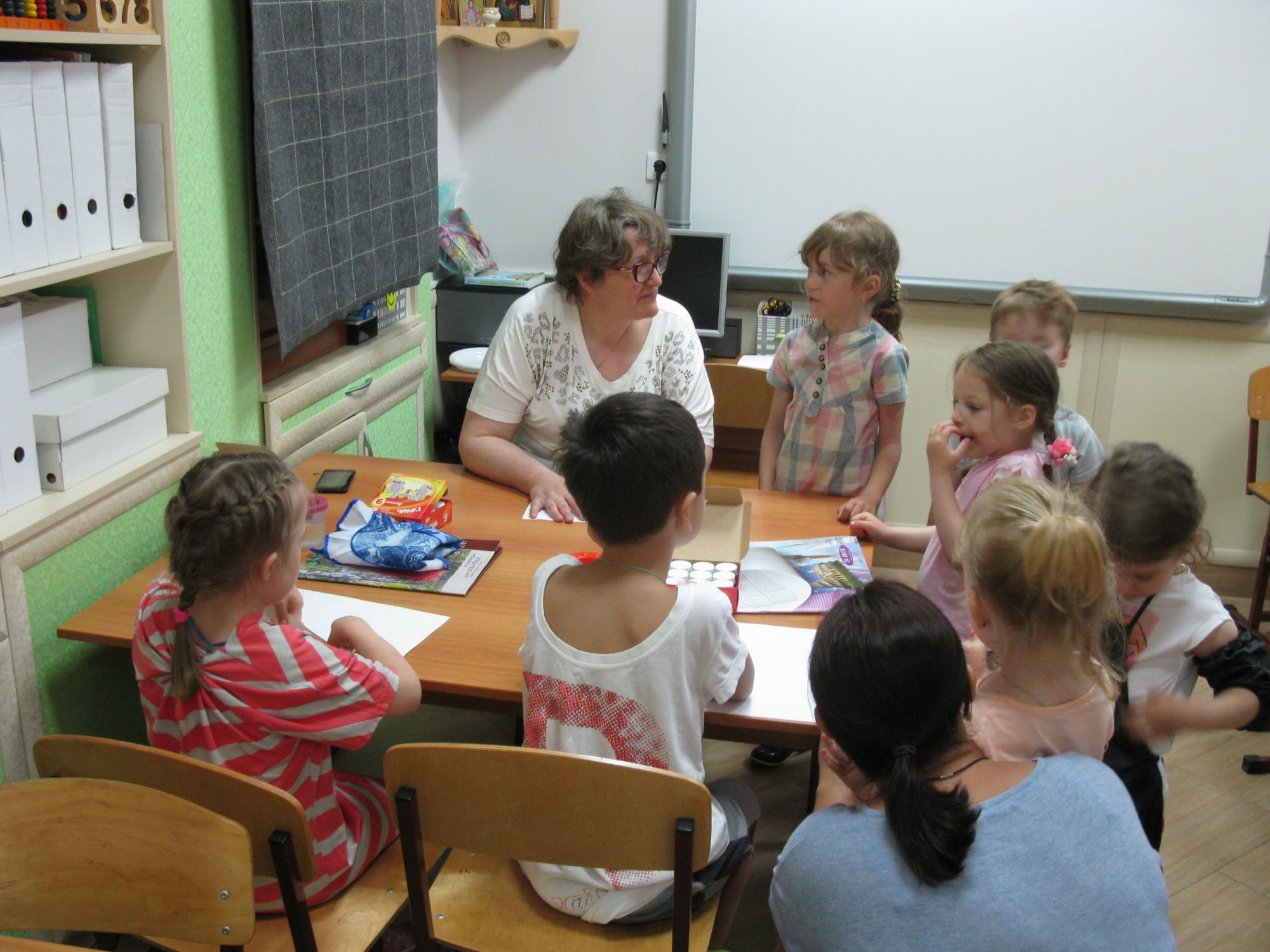 Прошли первые дни летней площадки для дошкольников. Здесь вместе собрались ребята разных возрастов, от трёх до восьми лет, они очень сдружились за это время, ведь кроме занятий их сплочали совместные игры, прогулки и трапезы.