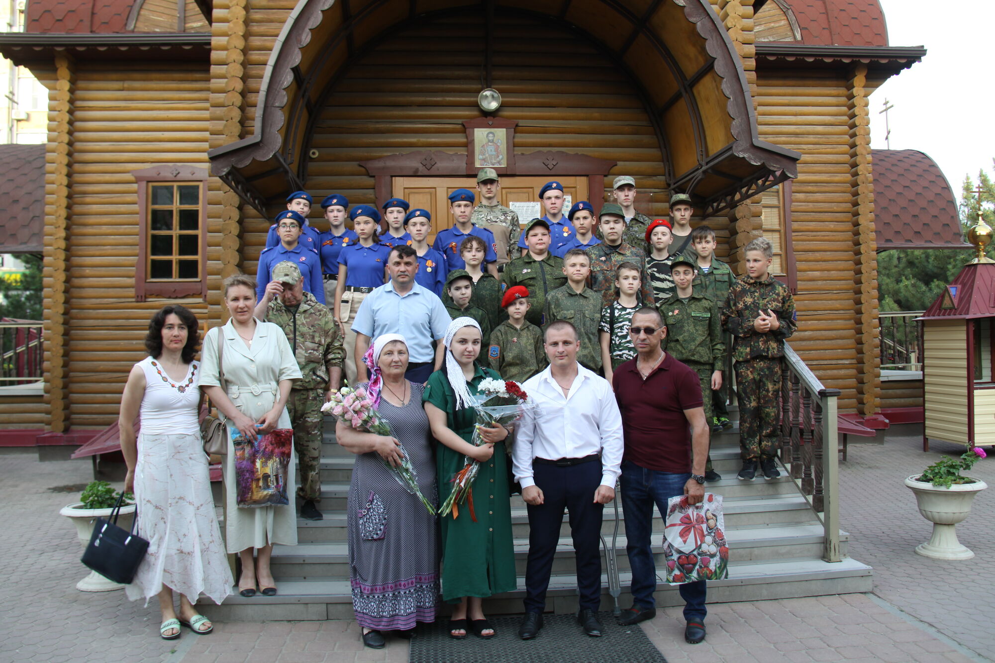 8 июня 2022 года на территории нашего прихода состоялась встреча с нашим бывшим воспитанником Николаем Цыганковым, проходящим воинскую службу по контракту в Вооружённых силах Российской Федерации. За мужество и героизм наш однополчанин Коля Цыганков награжден медалями, нагрудными знаками и орденом Мужества. На встречу пришли воспитанники приходской воскресной школы, занимающихся по программе «Уроки мужества» (Начальная военная подготовка к службе в Российской армии), их родители и инструкторы-наставники, члены семьи Николая, а также духовный наставник юнармейцев протоиерей Валерий Волощук.