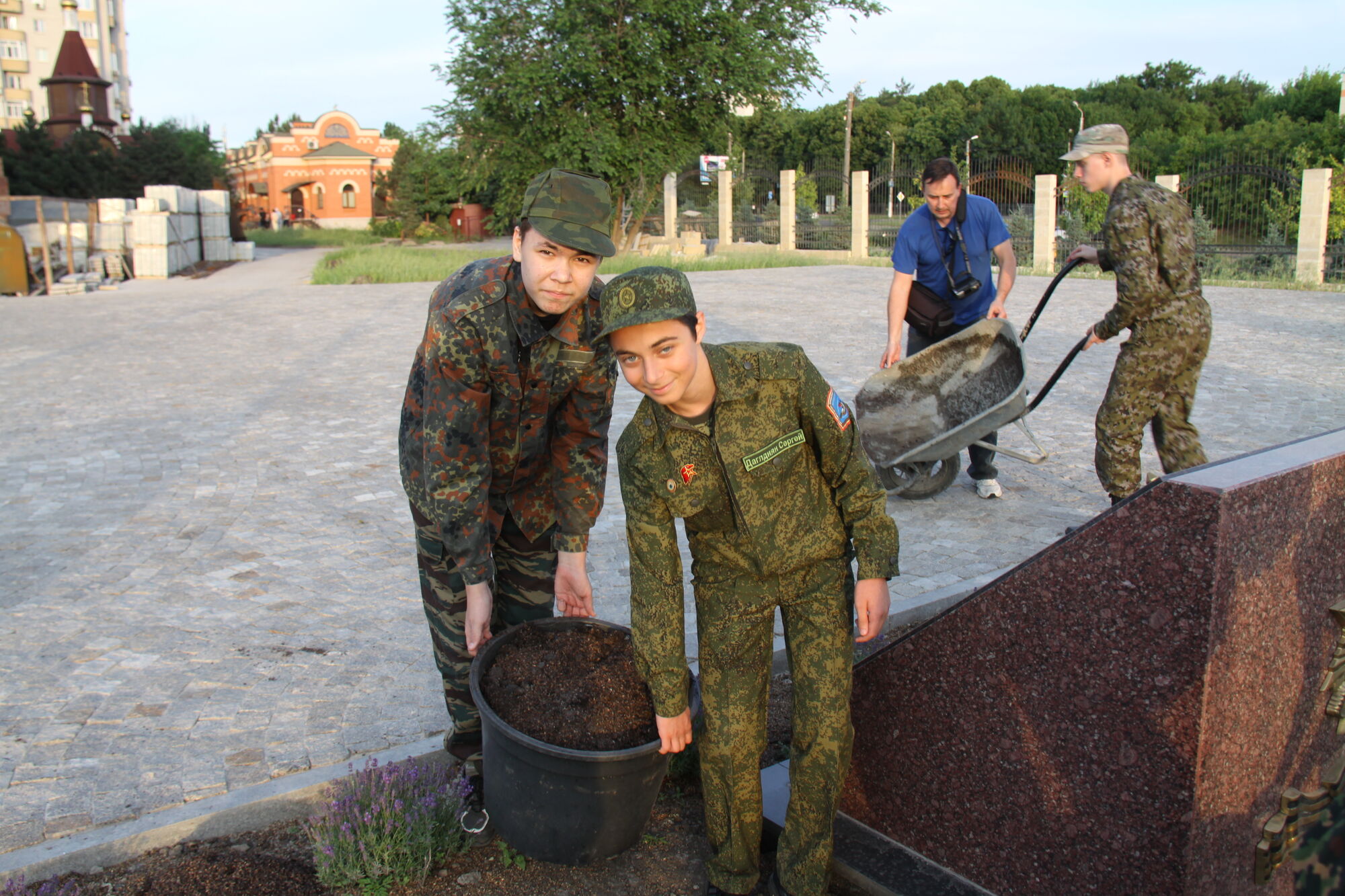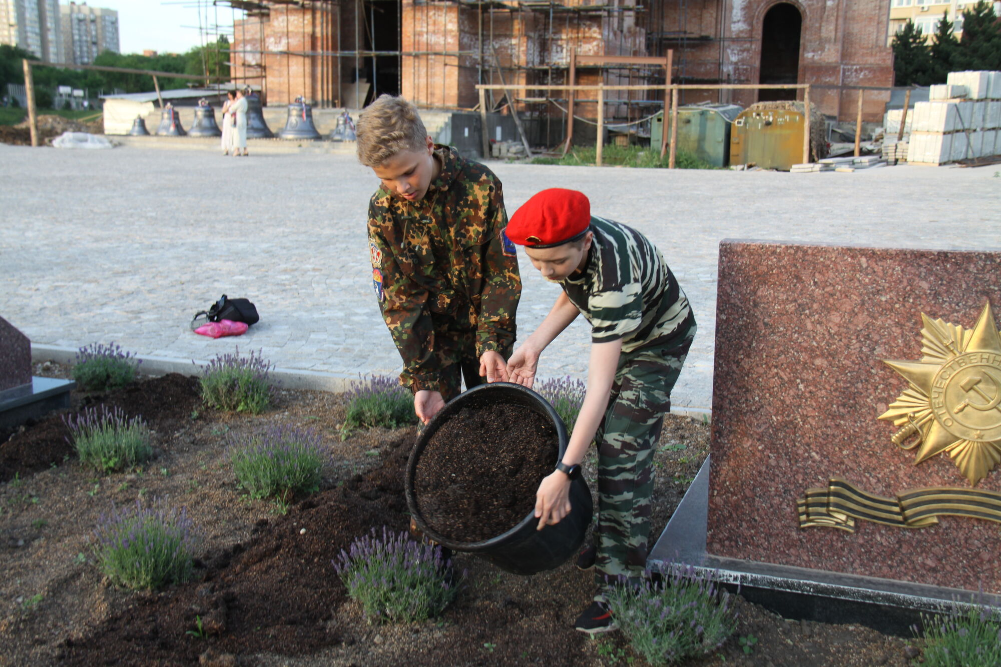 В этот же день юные защитники Отечества приняли участие в работах по озеленению храмовой территории.