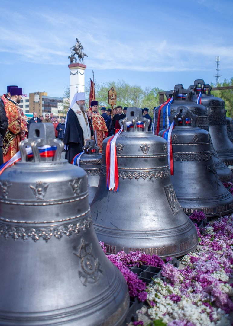 Как я обещал командующему округа, мы сегодня, в канун 77-летия Великой Победы, освятили эти колокола. Но они будут молчать до тех пор, пока наши ребята не вернутся к нам с победой. Мы будем об этом молиться, а колокола пусть будут нам напоминанием о необходимости нашей усердной молитвы. И, думаю, что этот день станет великой Пасхой, когда они зазвучат".