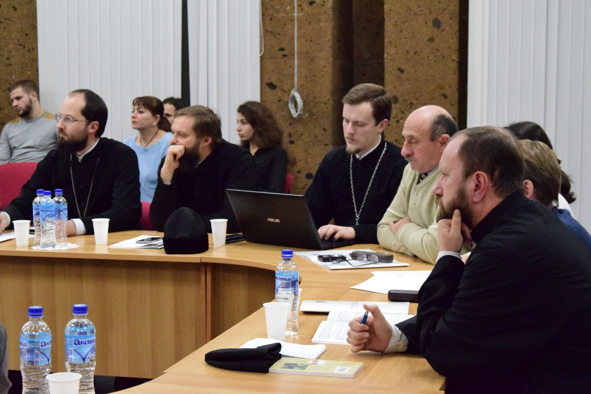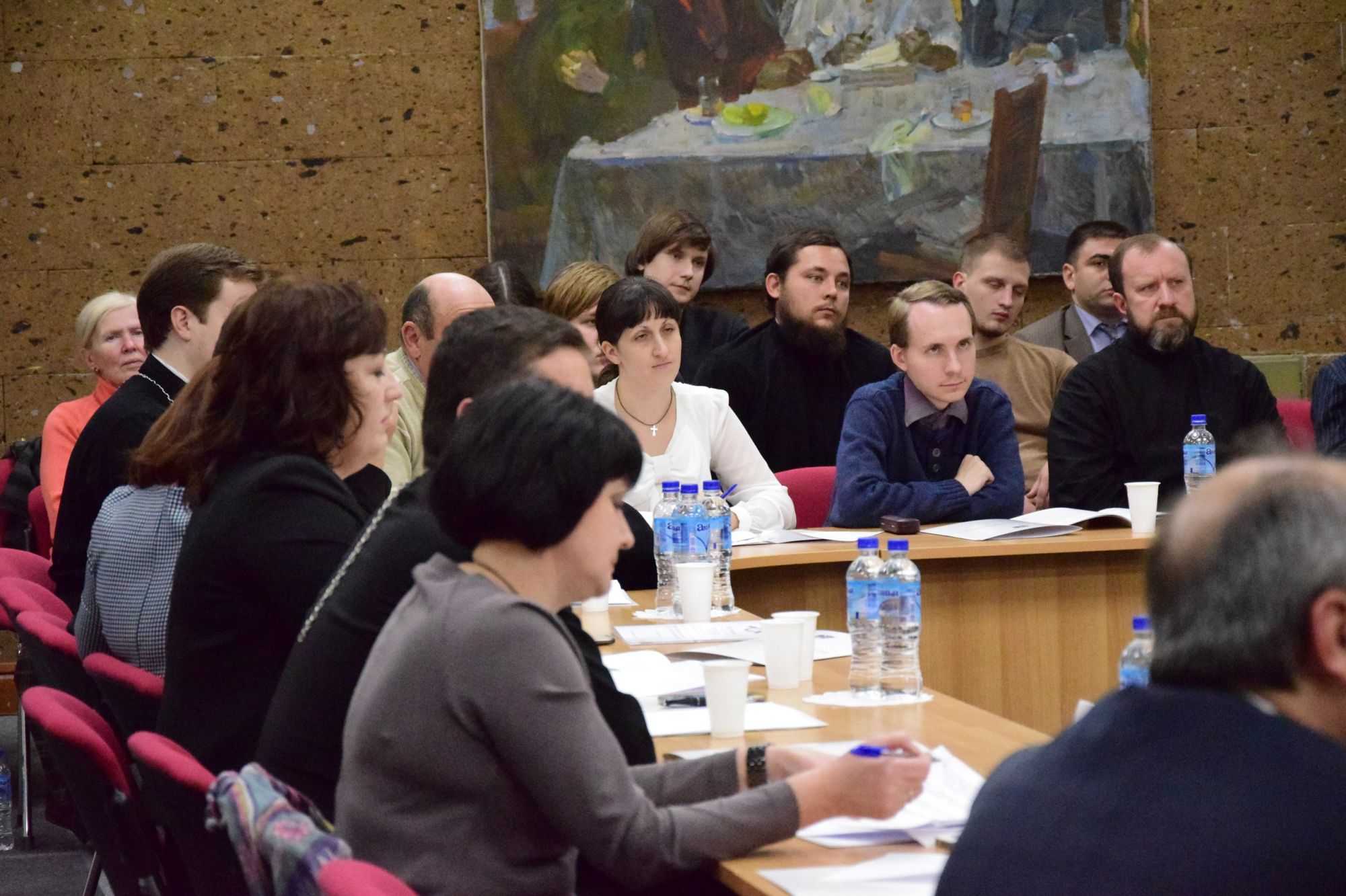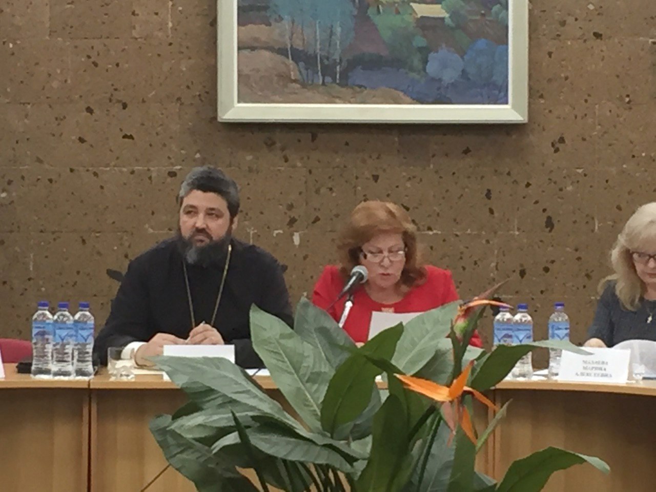 Открыли заседание Маринова Валентина Лаврентьевна – председатель комитета Законодательного Собрания Ростовской области по образованию, науке, культуре, информационной политике и связям с общественными объединениями и протоиерей Валерий Волощук, руководитель отдела по взаимоотношениям Церкви и общества Ростовской-на-Дону епархии.