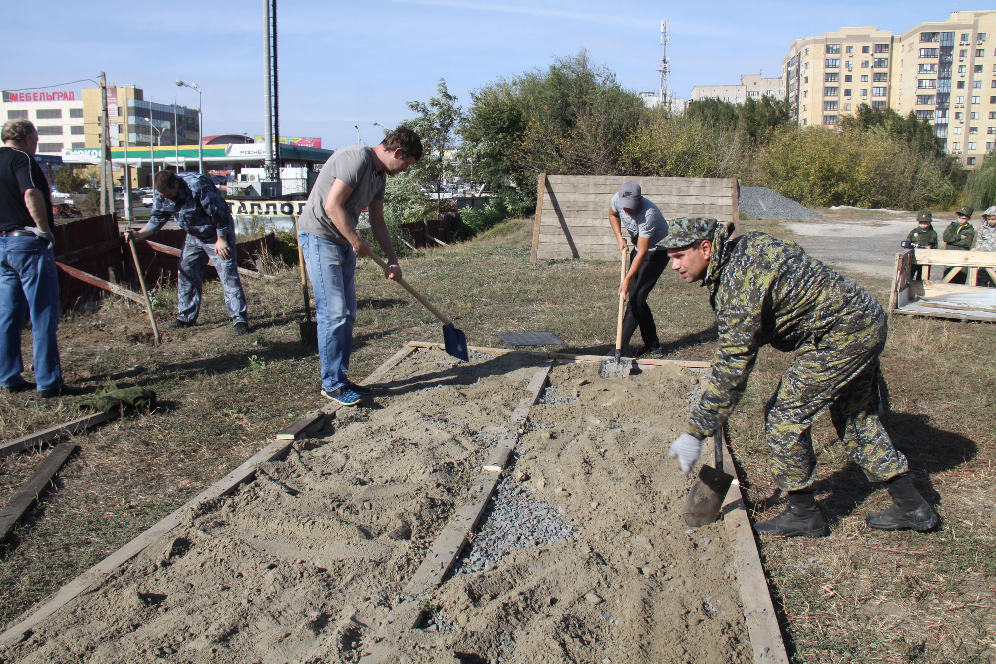 8 октября 2017 года на территории Ростовского духовно-патриотического комплекса Святого Георгия Победоносца на базе приходской воскресной школы прошли занятия по начальной военной подготовке к службе в Российской армии. В этот день инструкторами-наставниками и родителями учащихся по благословению настоятеля прихода протоиерея Валерия Волощука были начаты работы по строительству учебной полосы препятствий.