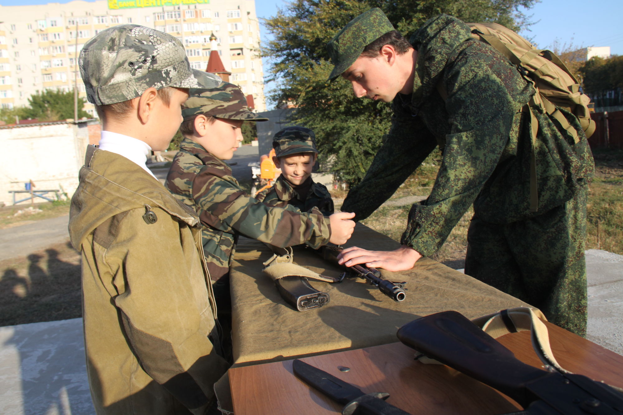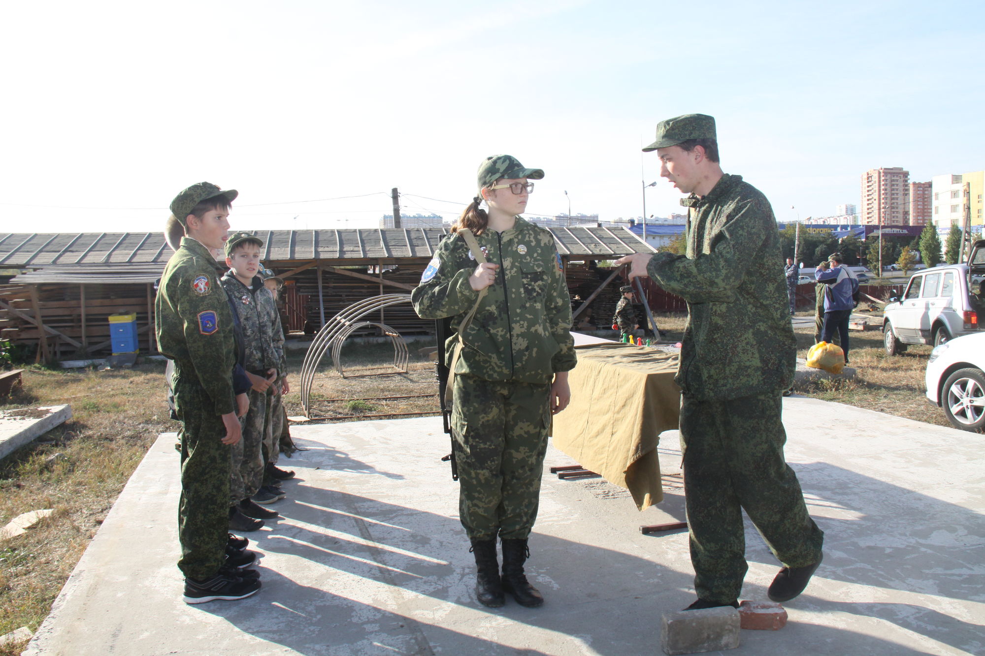 Военнослужащими Российской армии, находящимися в запасе, были проведены занятия по изучению стрелкового оружия и техники безопасности обращения с ним. Дети, их наставники и родители участвовали в занятиях по организации военно-полевого лагеря с установкой палаток, приготовлением чая на костре. Воспитанники изучали способы применения средств личной химзащиты, учились пришивать пуговицы, пользоваться иголкой и ниткой, участвовали в соревнованиях на выбивание мячом.