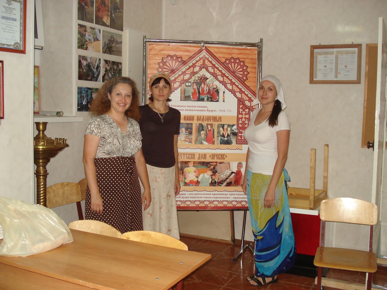 8 сентября 2015 года на нашем Приходе состоялась встреча старшей сестры Милосердия Храма Иоанна Воина Тереховой Ольги c представителем отдела по церковной благотворительности и социальному служению, координатором проекта «Друзья друзей» Ларисой Товстолуцкой, а также с заместителем настоятеля по социальной работе Храма Сергия Радонежского - Кабановой Галиной.