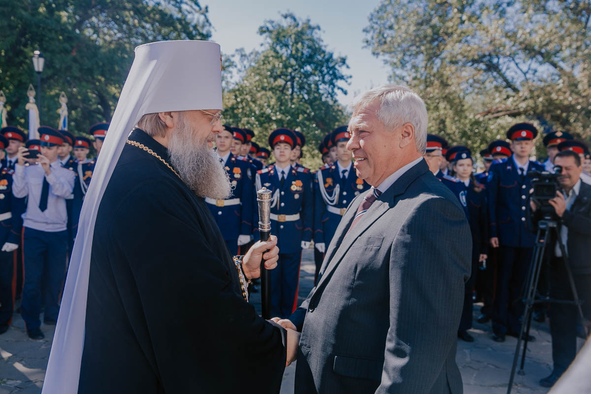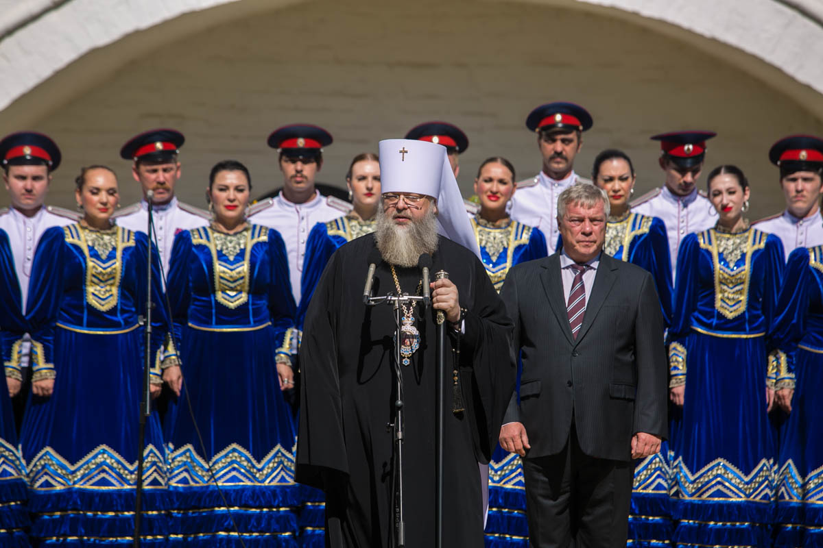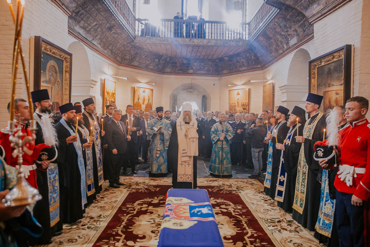 В своем выступлении владыка митрополит отметил: «В конце каждой заупокойной молитвы возглашаются удивительные слова: «И сотвори им вечную память». Но Бог и так помнит всех усопших, ведь их святые имена записаны у Господа в книге жизни. Поэтому «вечная память» — в наших сердцах, именно она важна нам, и именно об этой памяти напоминает нам Церковь. Потому что не должна страница человеческой истории быть перевернута и попросту забыта. В книге жизни нет страниц, но есть сплошная летопись, в которой наши имена и дела соседствуют с именами и делами наших прославленных предков, о которых мы сегодня будем особенно усердно молиться, после чего они по праву найдут свое упокоение в крипте казачьего собора… Пусть мы будем достойны подвигов своих великих предков: и ратных, и государственных, и духовных».